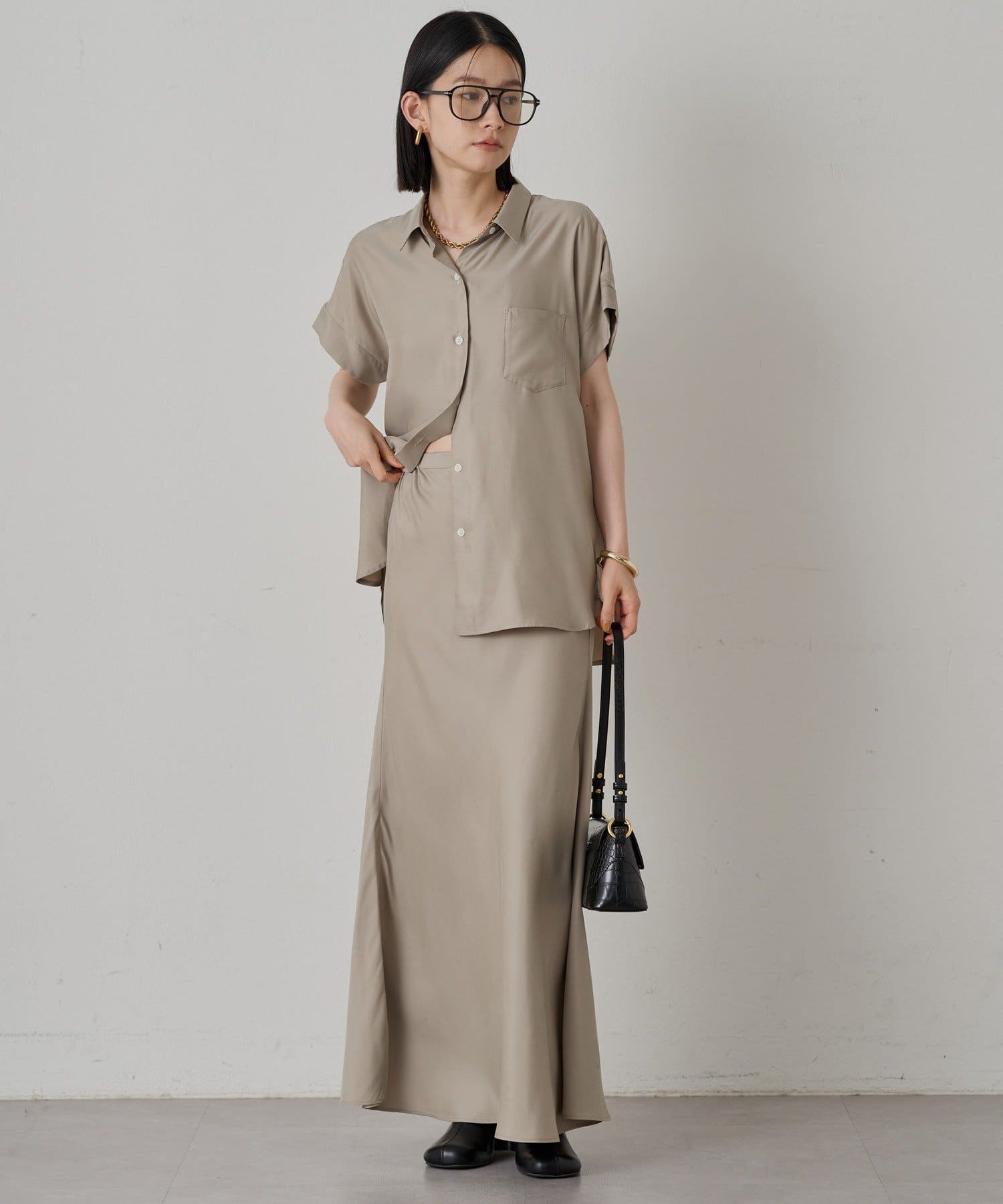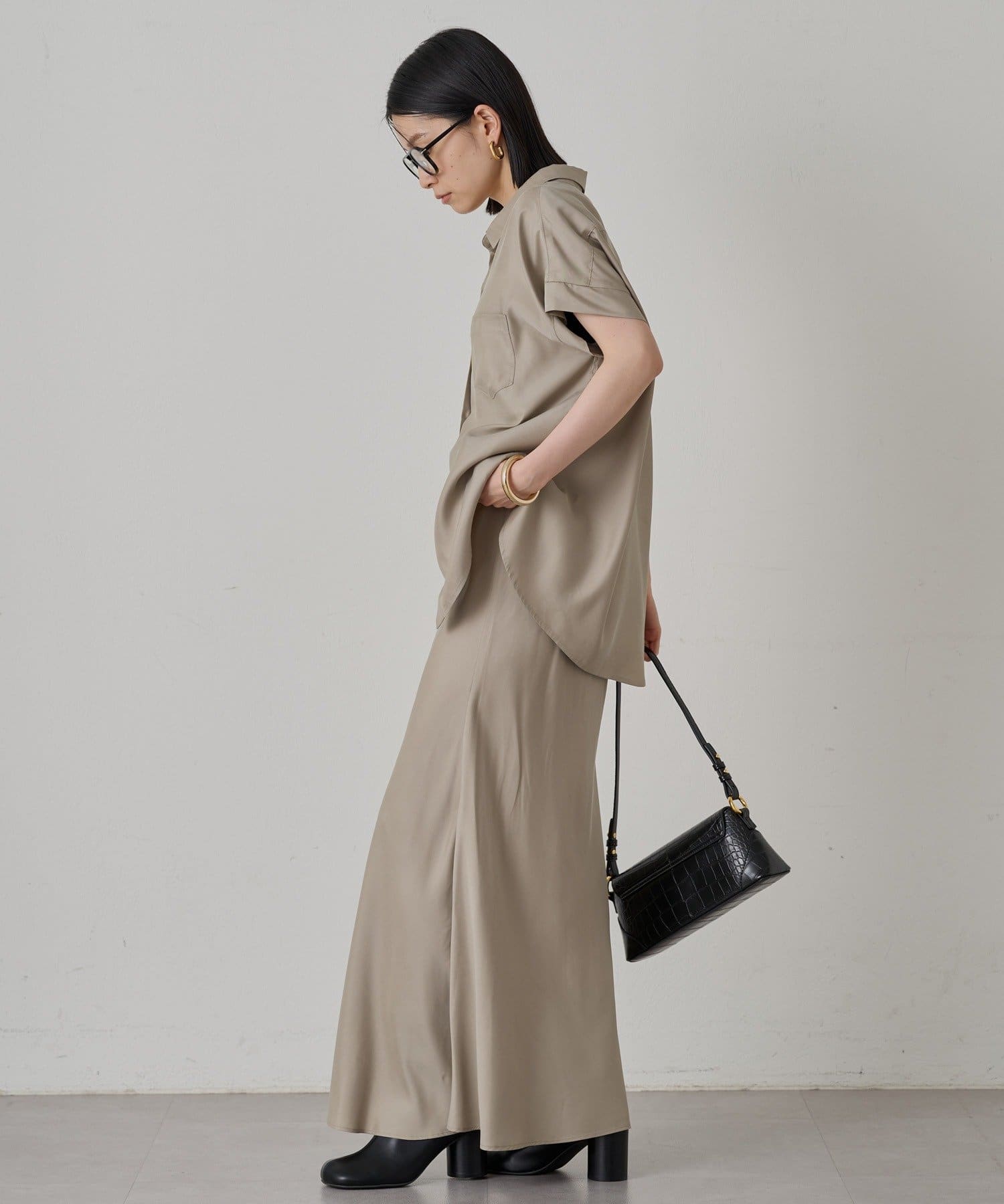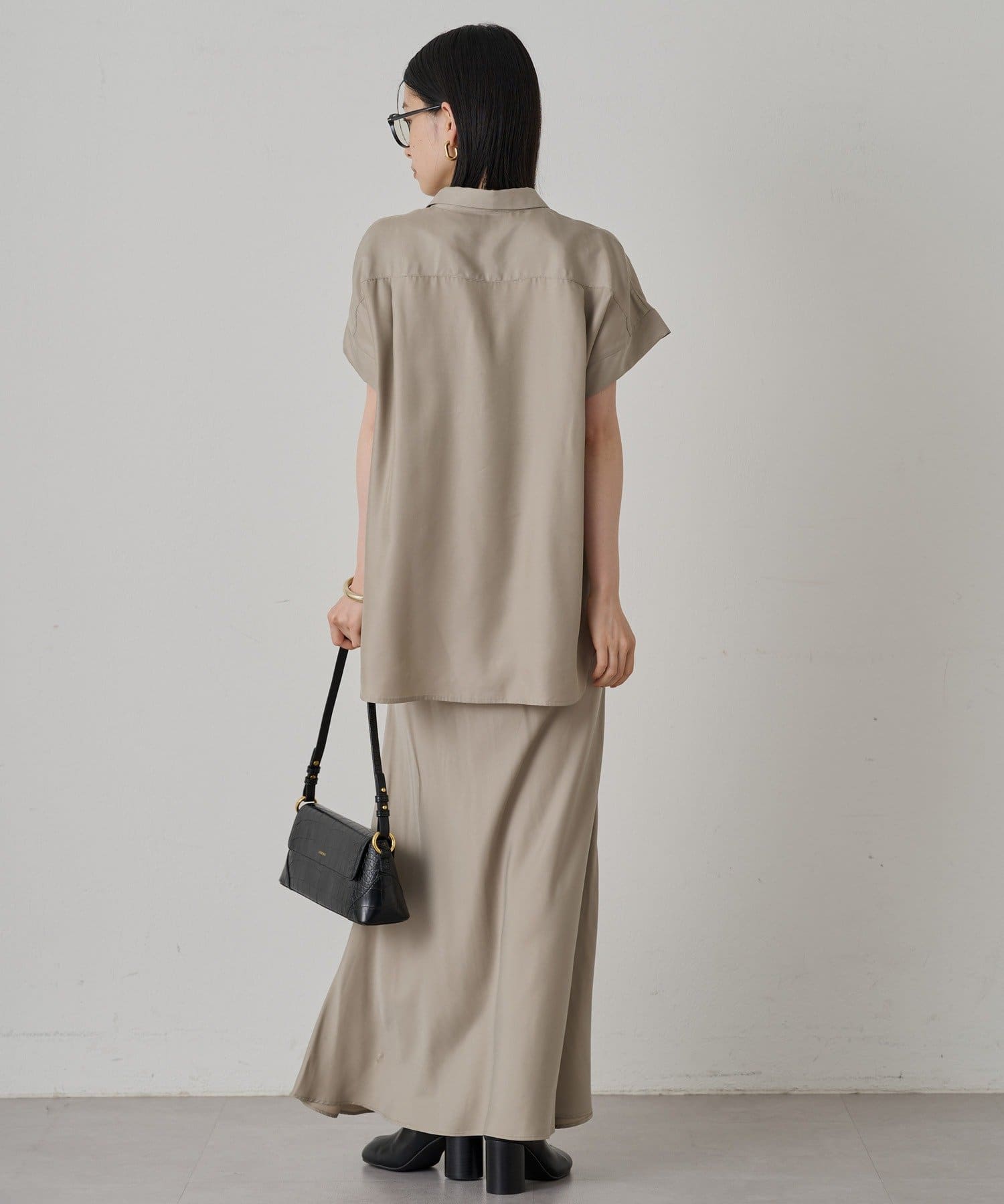 身体のラインを拾いすぎない、程よいゆとりのあるシルエット。リラックスした着心地ながらも、女性らしい印象を与えます。