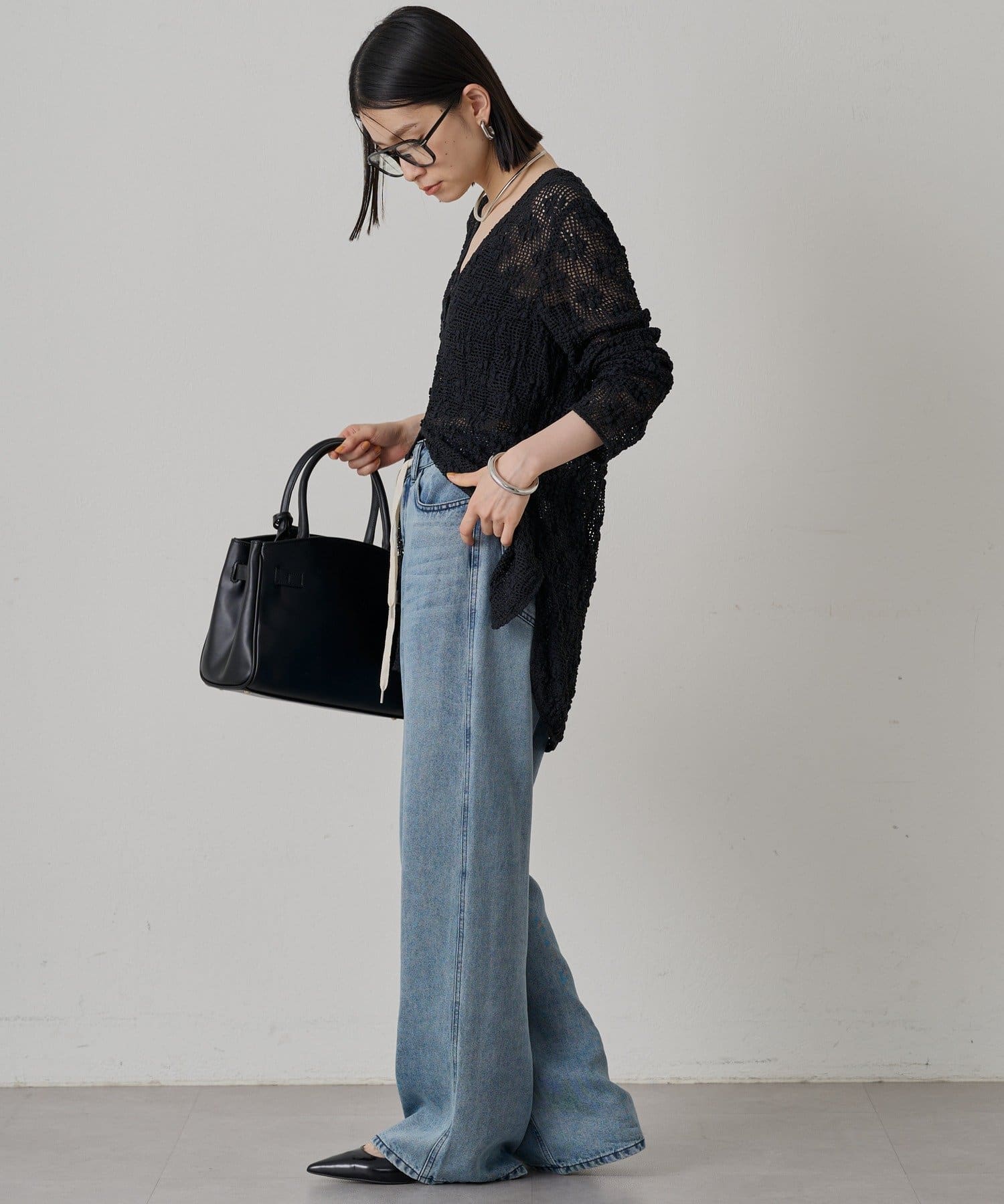 セットアップのスカートと合わせていただくと、女性らしい着こなしができます。インナーにキャミソールやタンクトップを合わせて、透け感を楽しむのがおすすめです。パンツやデニムで合わせていただいても、カジュアルで抜け感のあるスタイルを楽しんでいただけます。