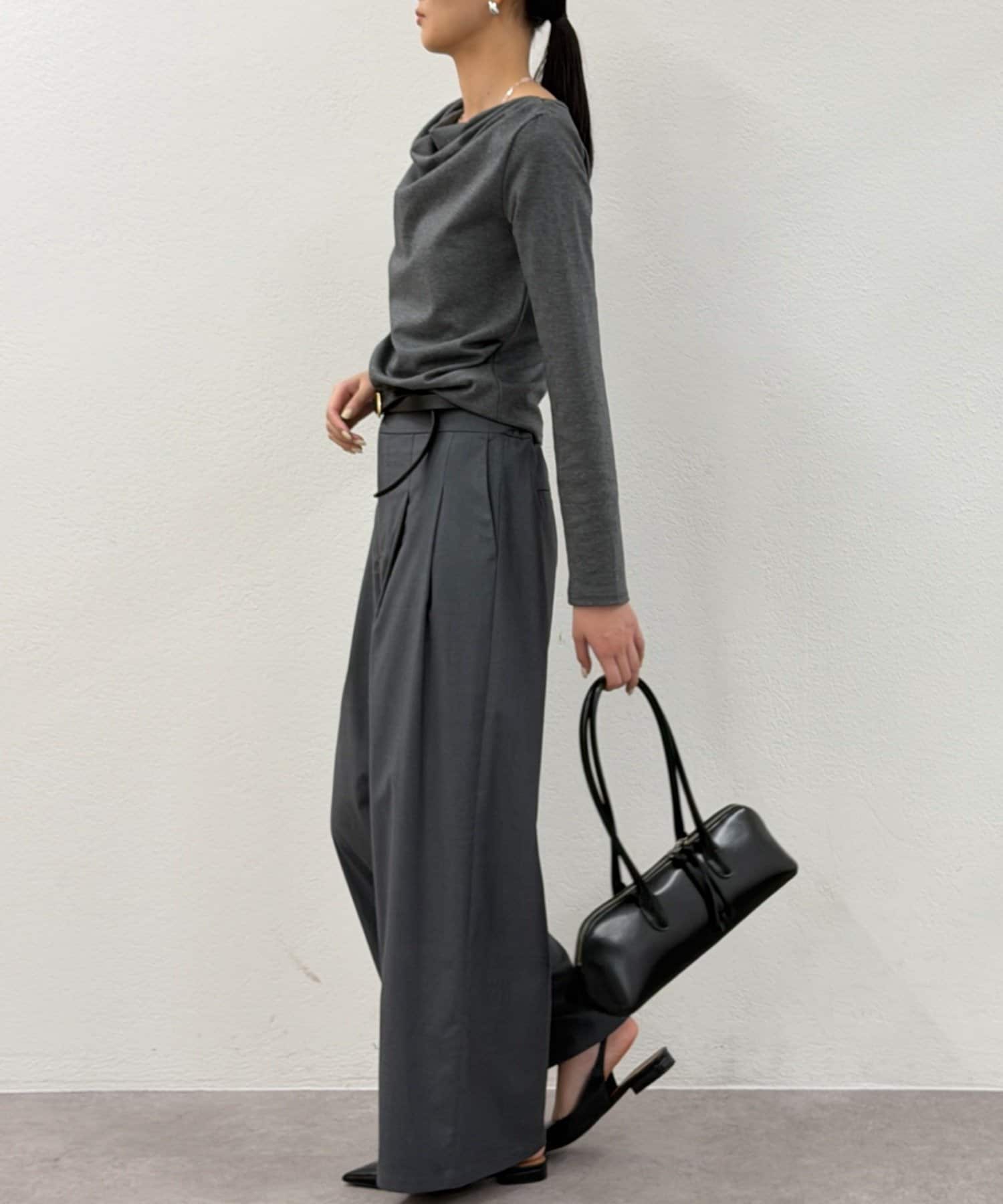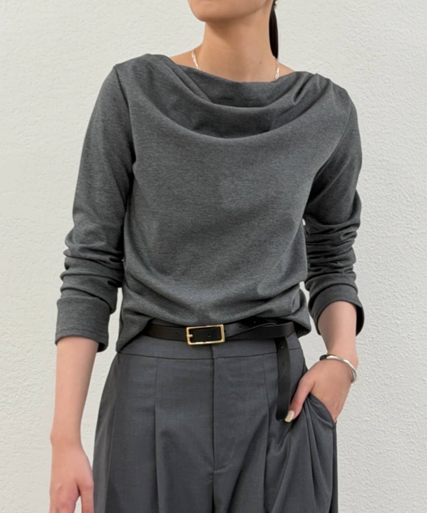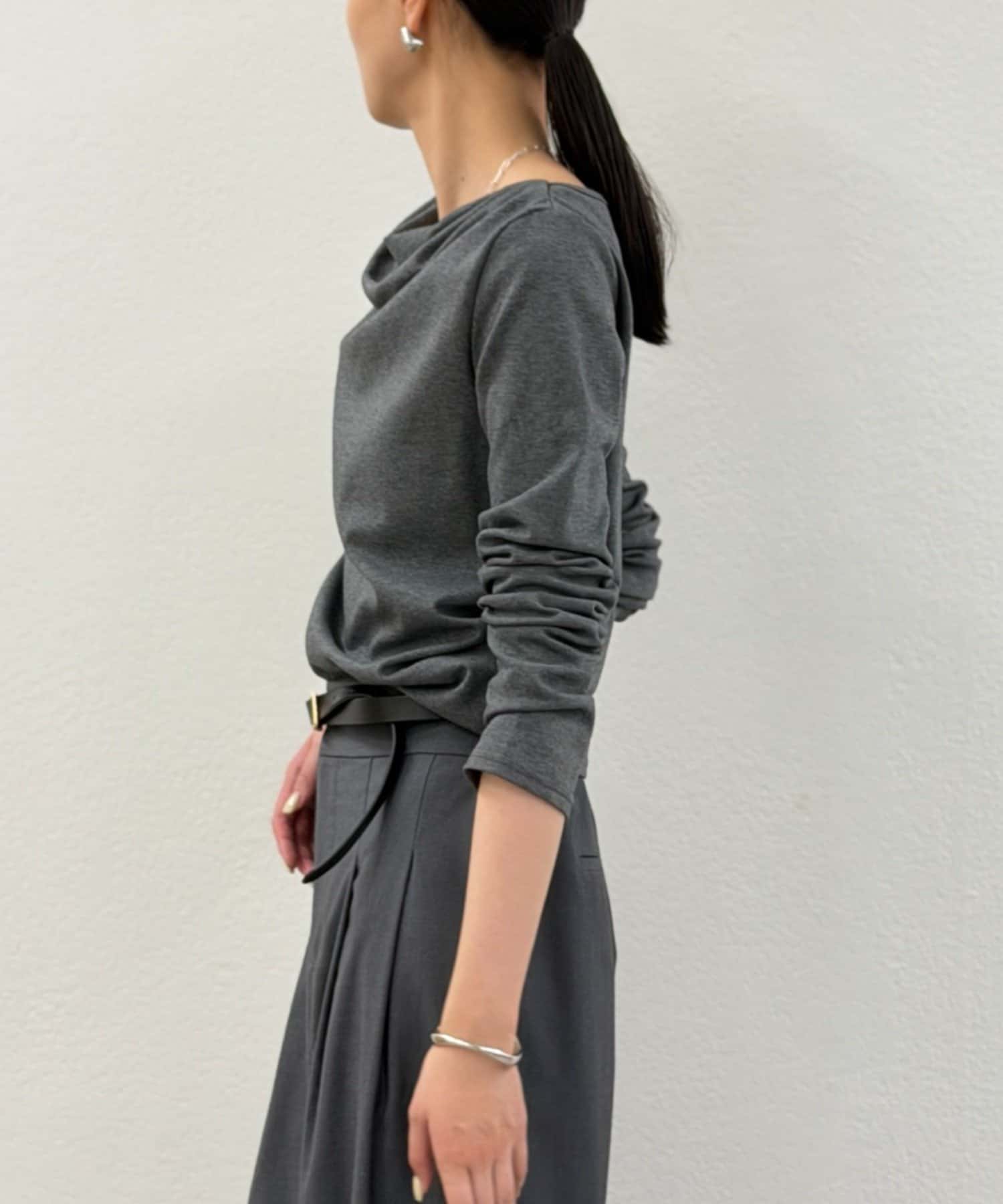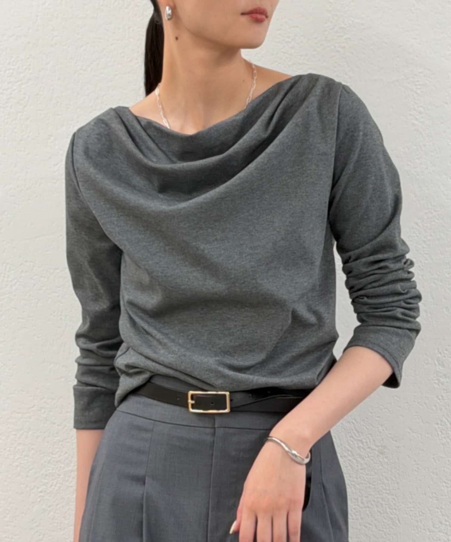 一見シンプルながら、着るだけでこなれ感を演出してくれるドレープデザインのカットソー。