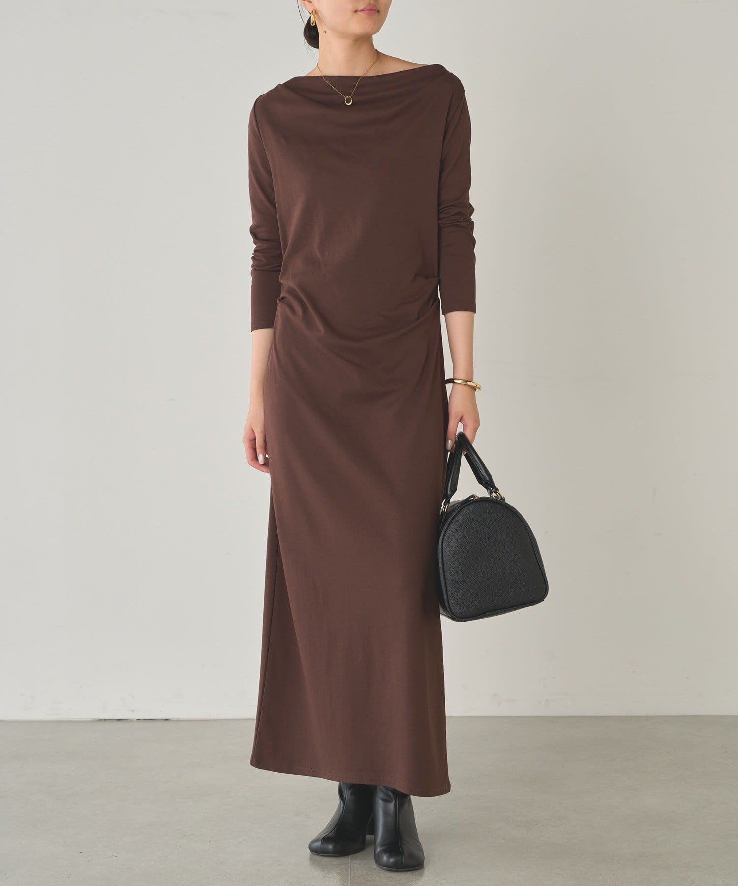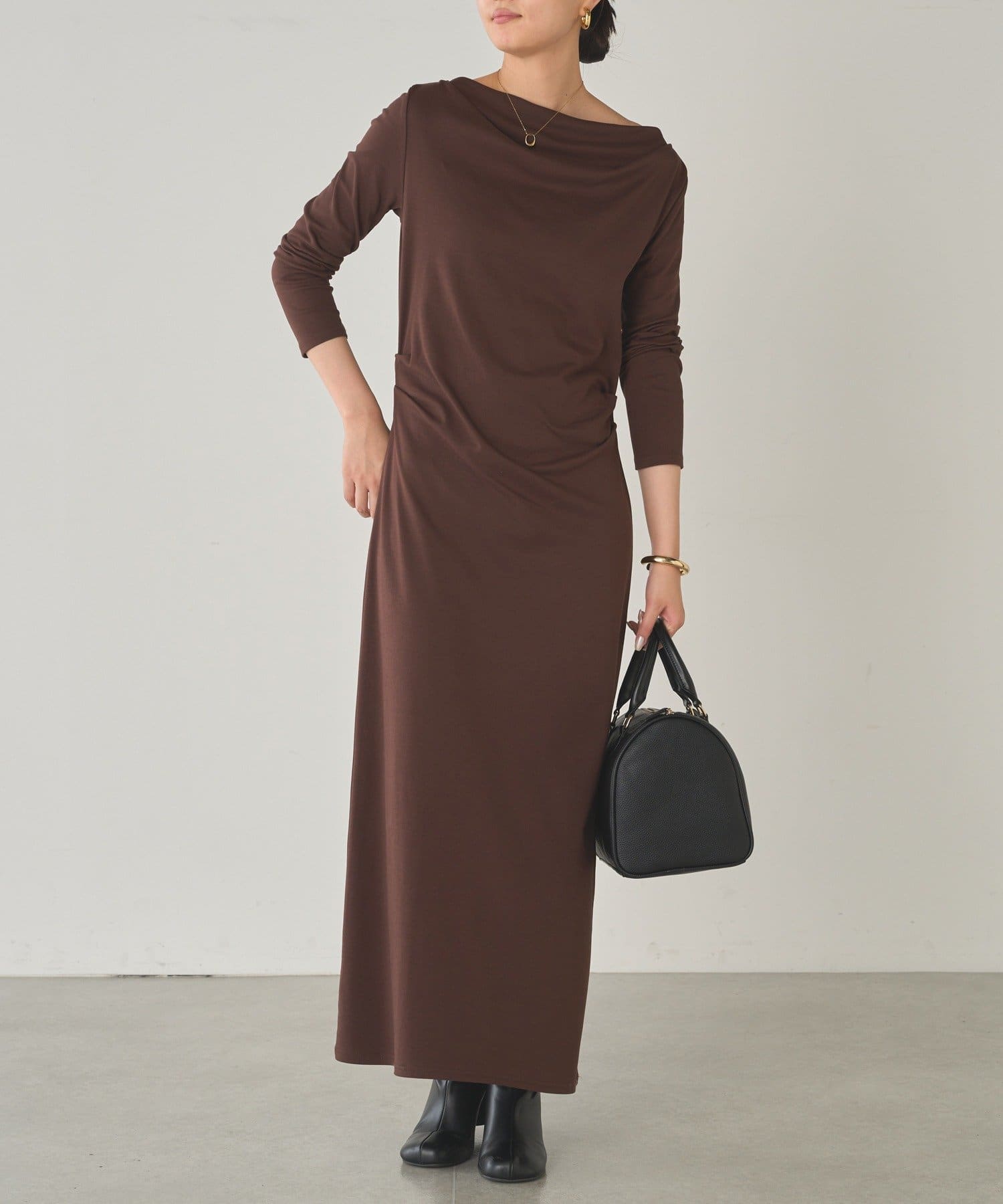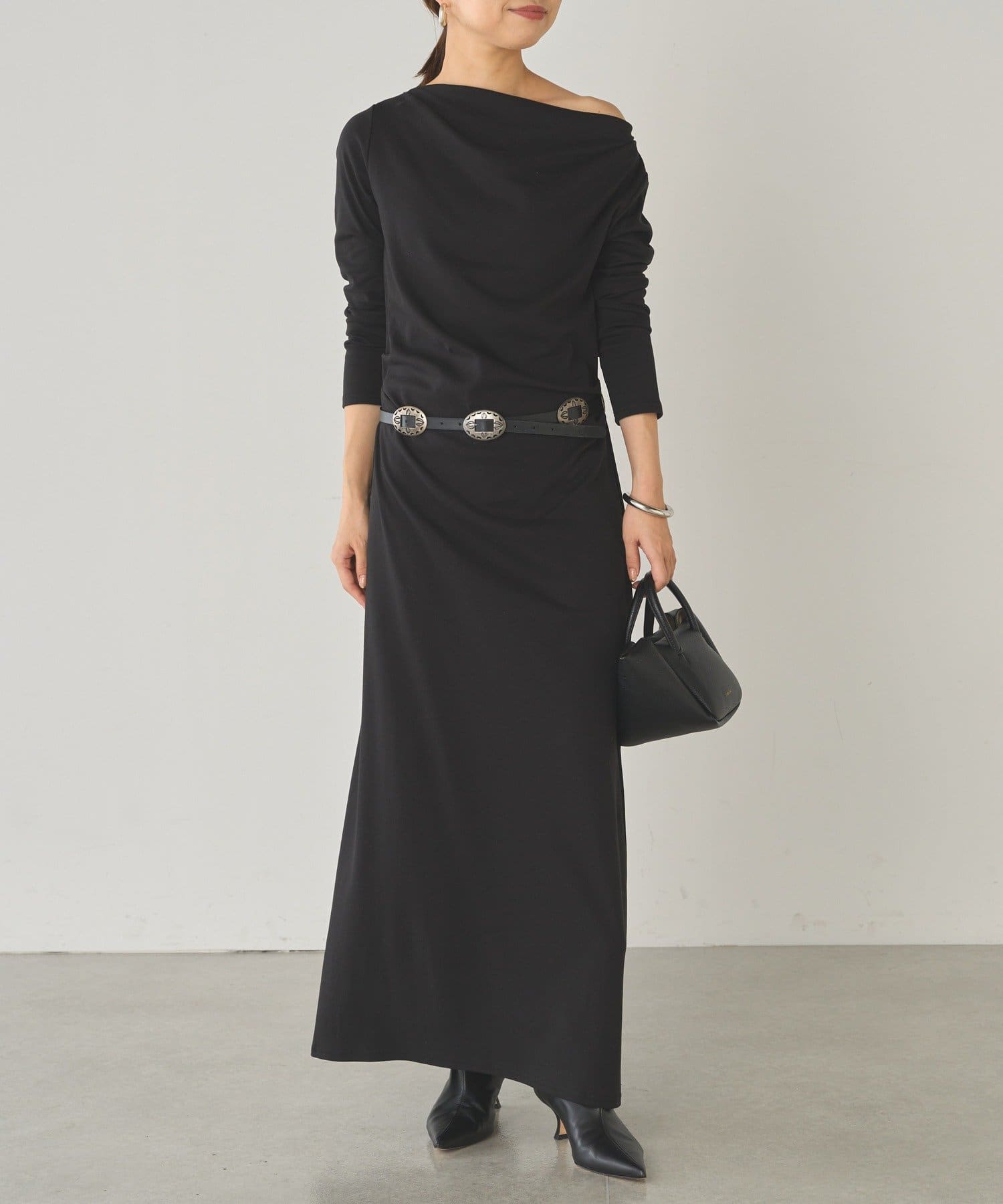 大人の余裕と抜け感を演出。ドレープカットワンピース
