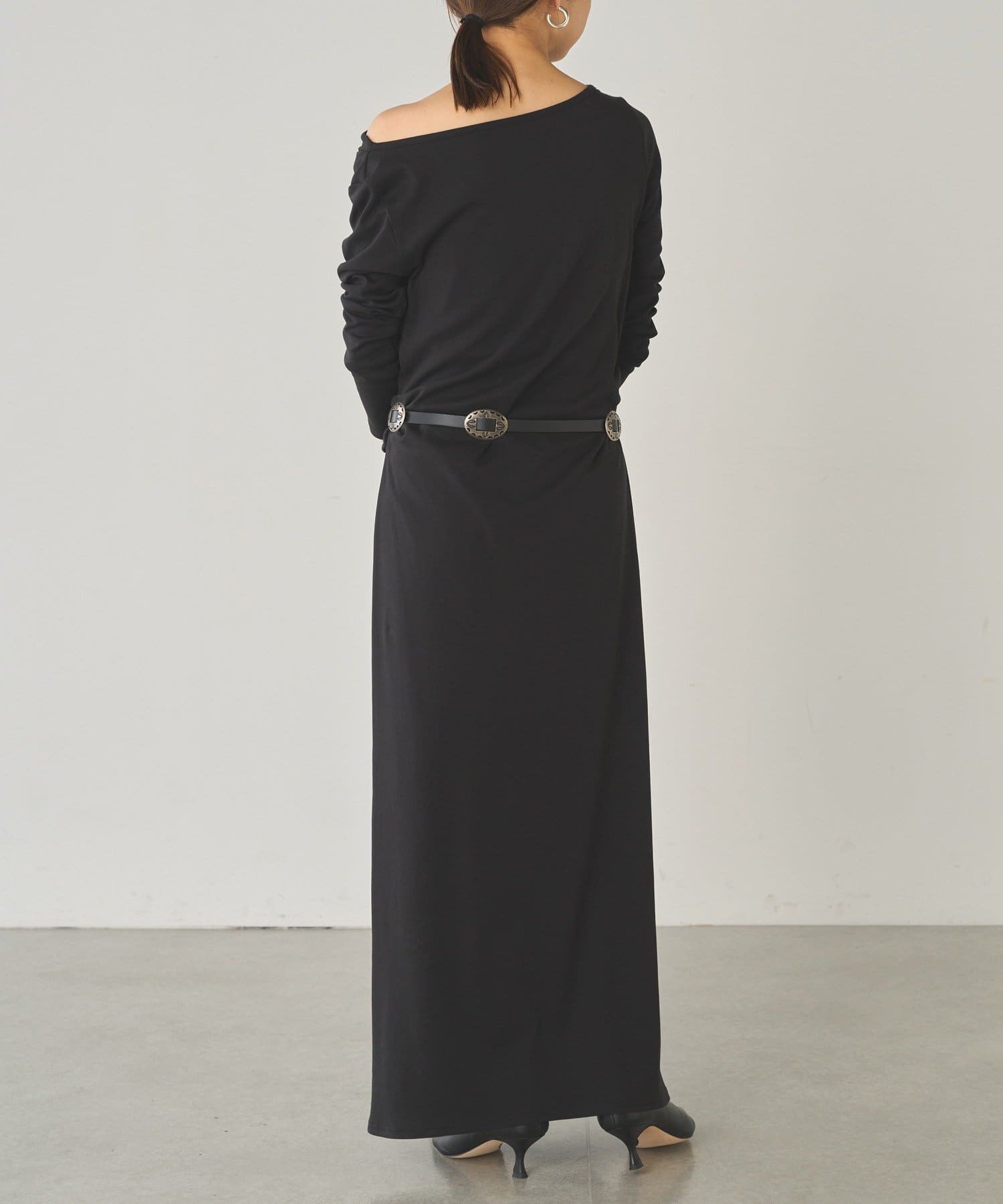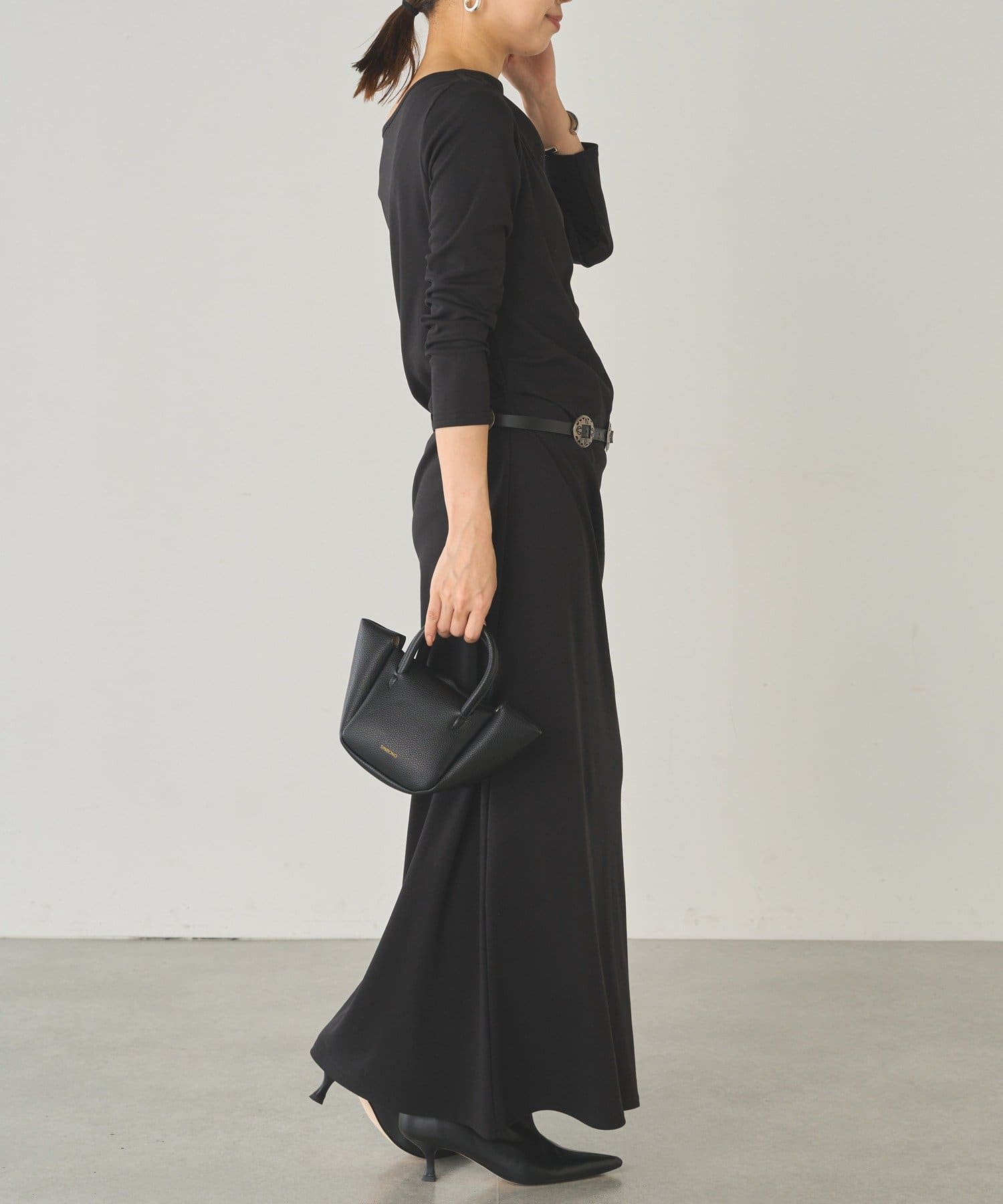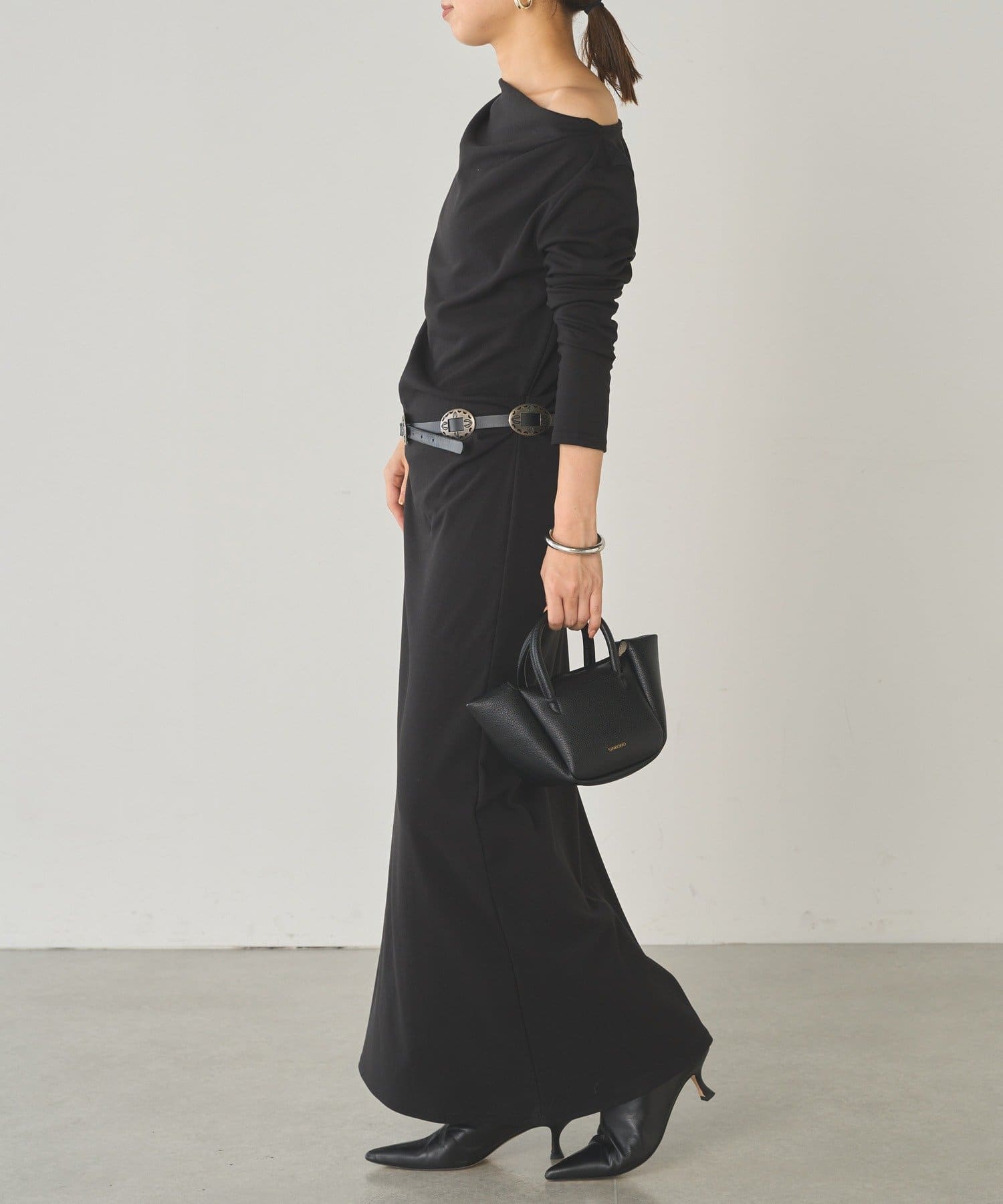 ベルトでウエストマークすれば、さらにメリハリのあるシルエットに。