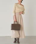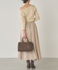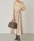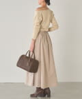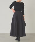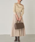 スカートはハリ感のあるお素材なので甘くなりすぎず着ていただけます。