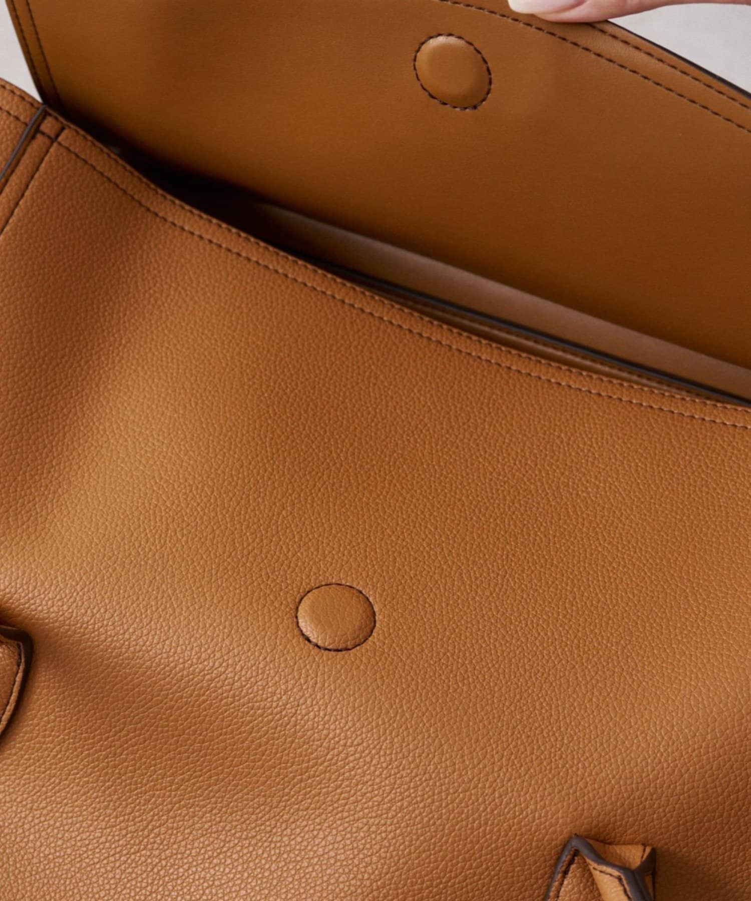 マグネット開閉のフラップで中見えを防止し、貴重品を収納できる内側のポケットも嬉しい。手持ちはもちろん肩掛けでもお使いいただける、オンオフ問わないバッグです。