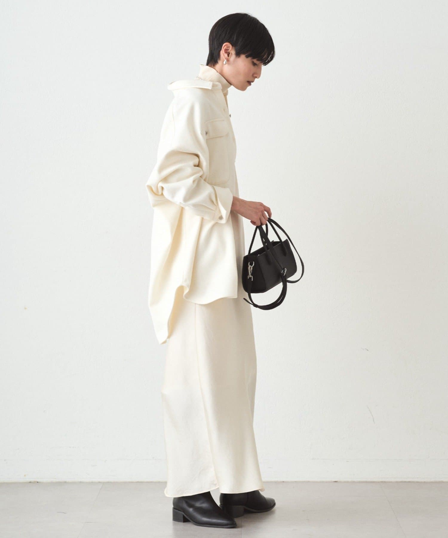 インナーにタートルネックやカットソーを合わせる着こなしもおすすめです。