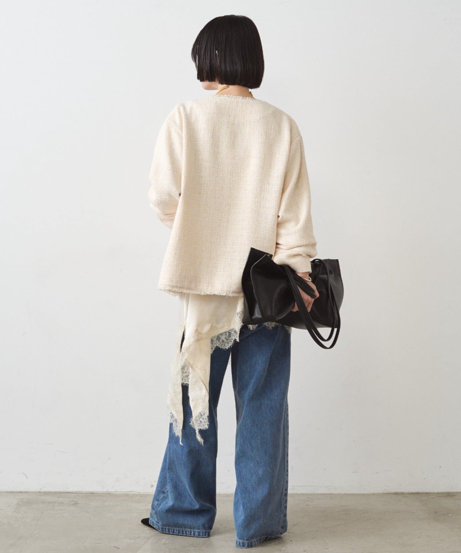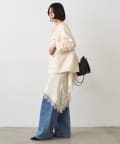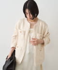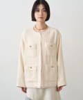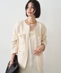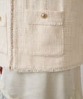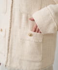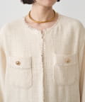 襟元や前立て、袖口に施されたフリンジが、さりげないアクセントとなり、こなれ感をプラス。