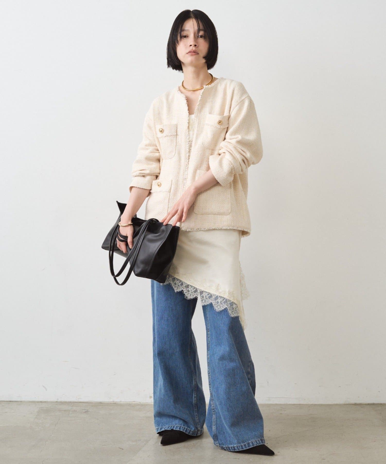 デニムと合わせたカジュアルスタイルから、ワンピースやスカートと合わせたきれいめスタイルまで、幅広い着こなしが可能です。