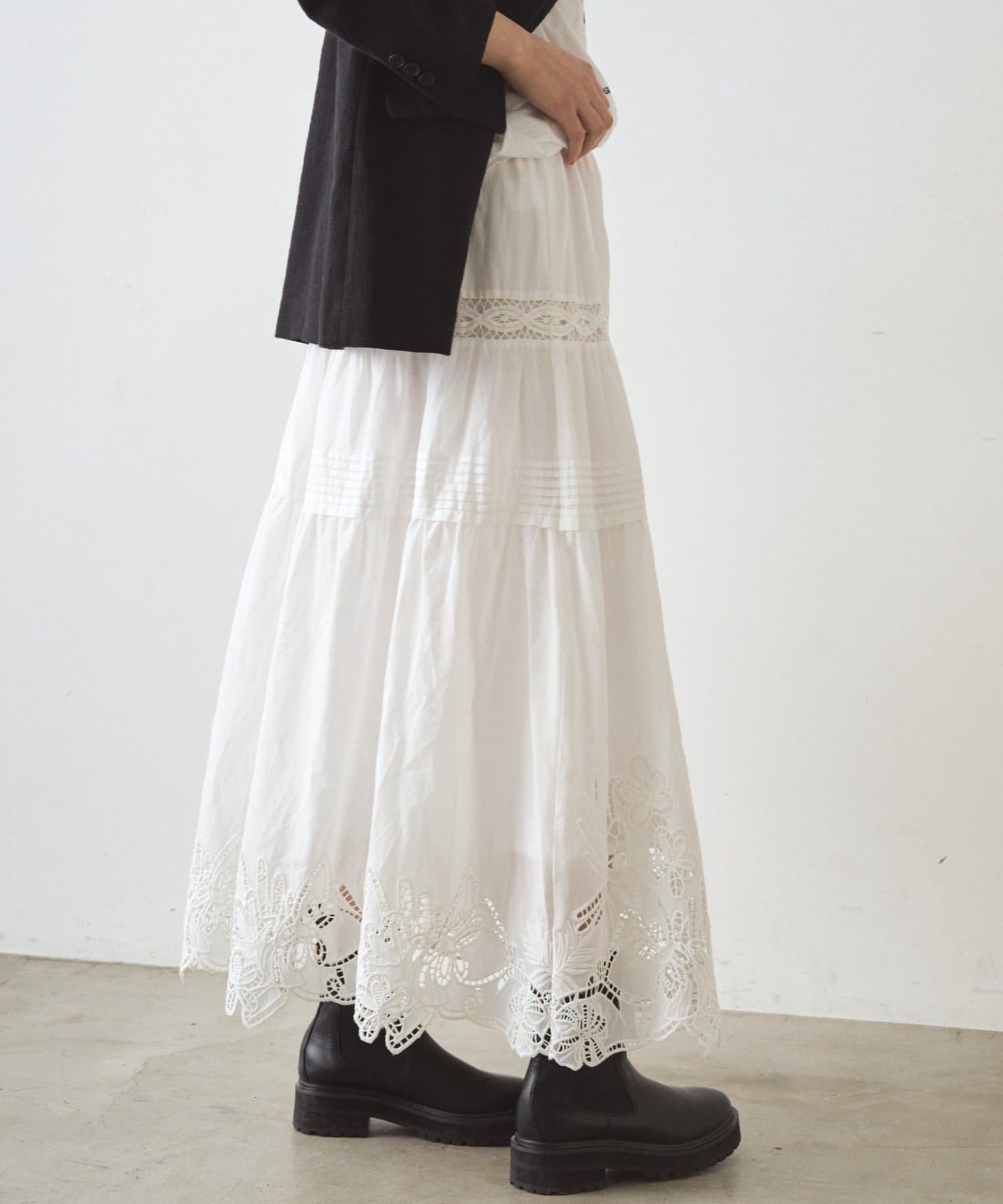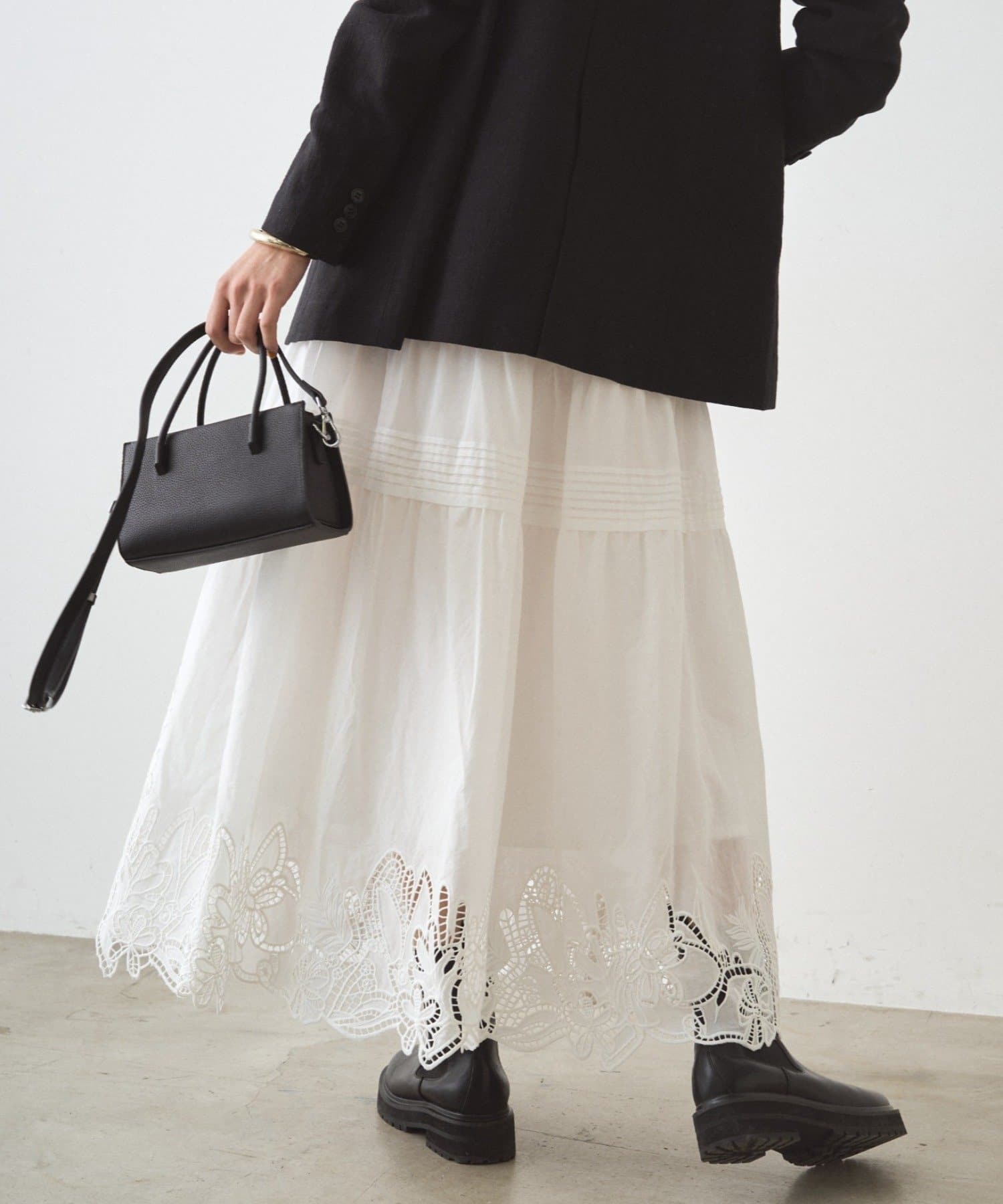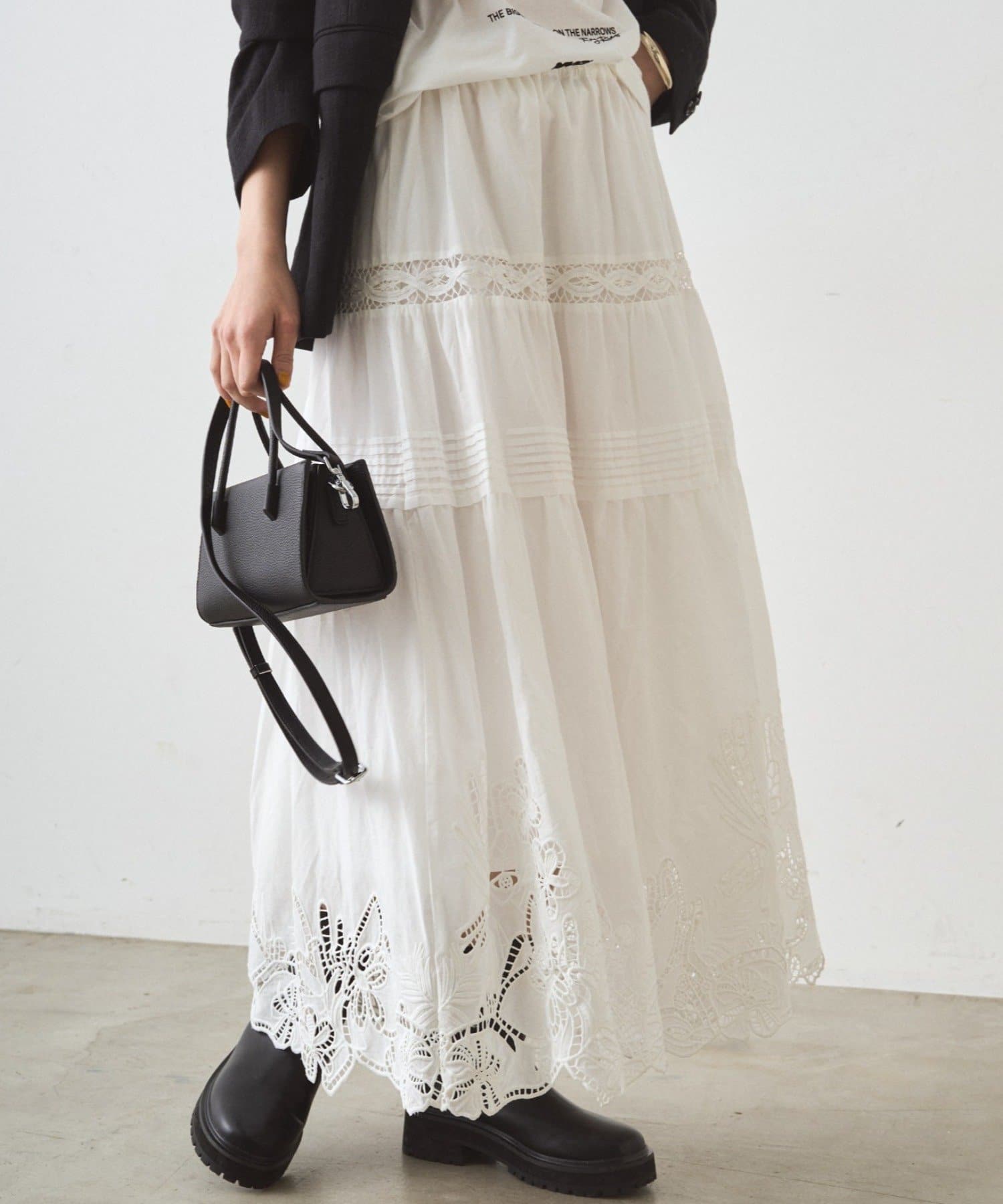 上品な甘さを引き出す、繊細レースのティアードスカート