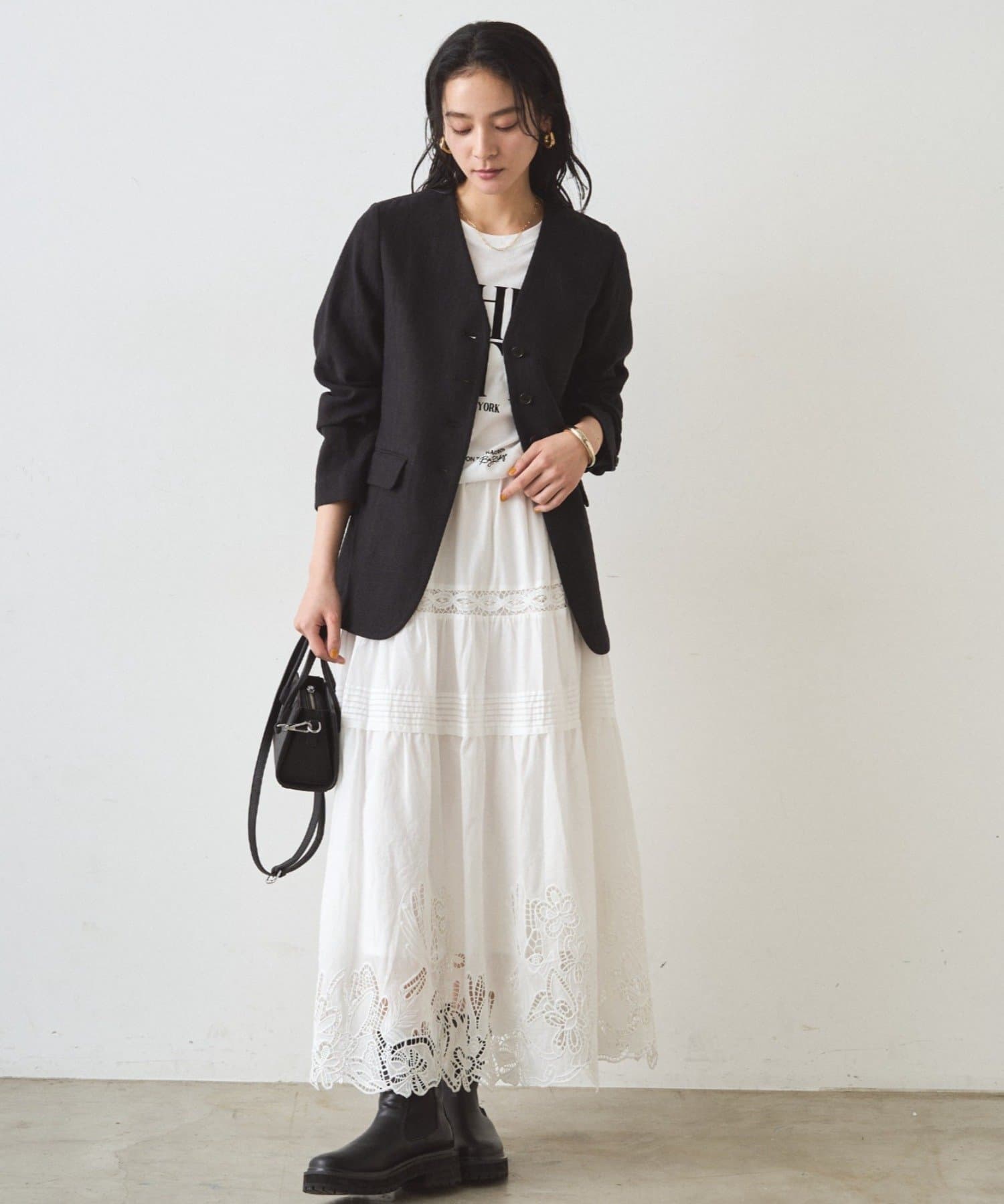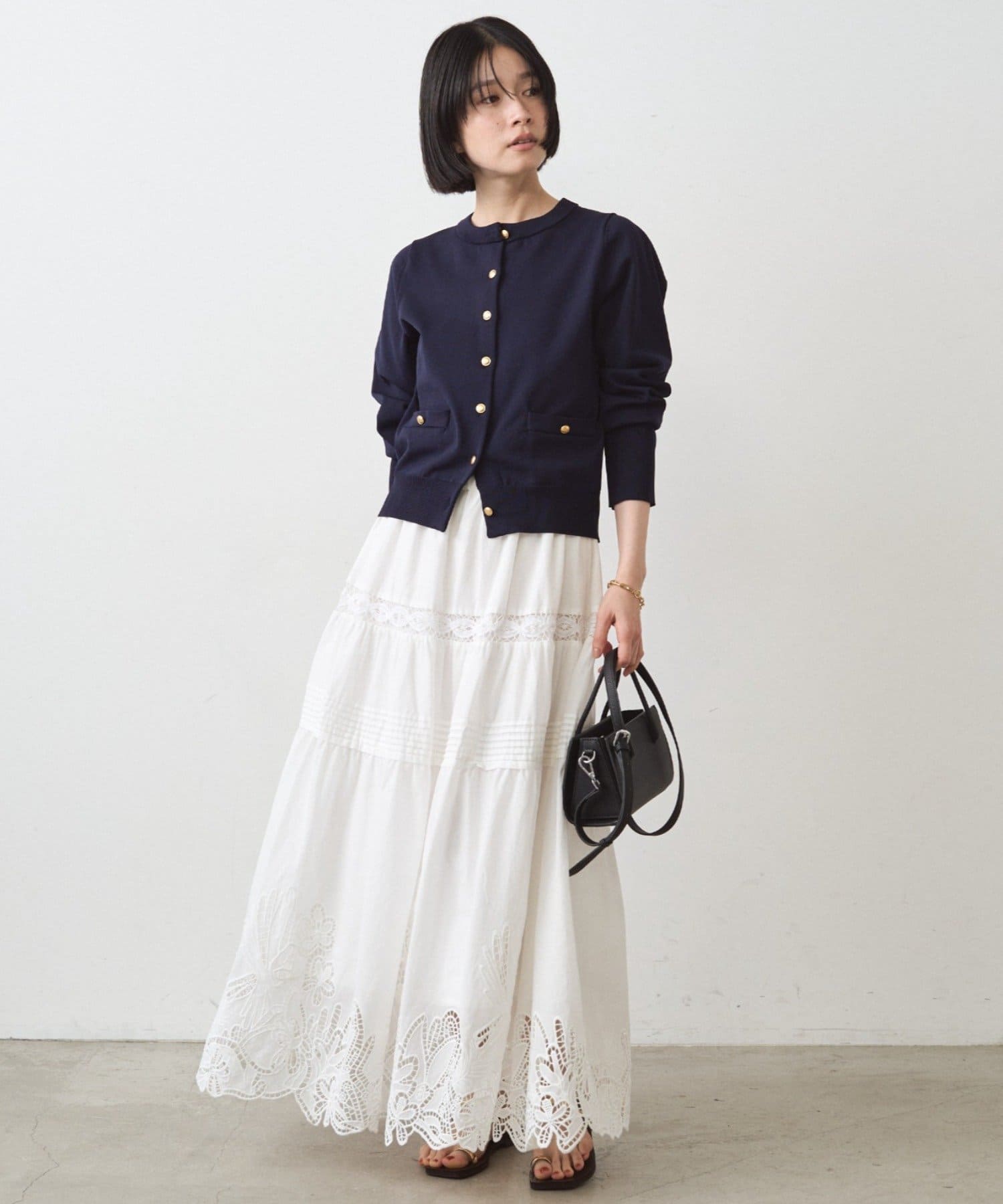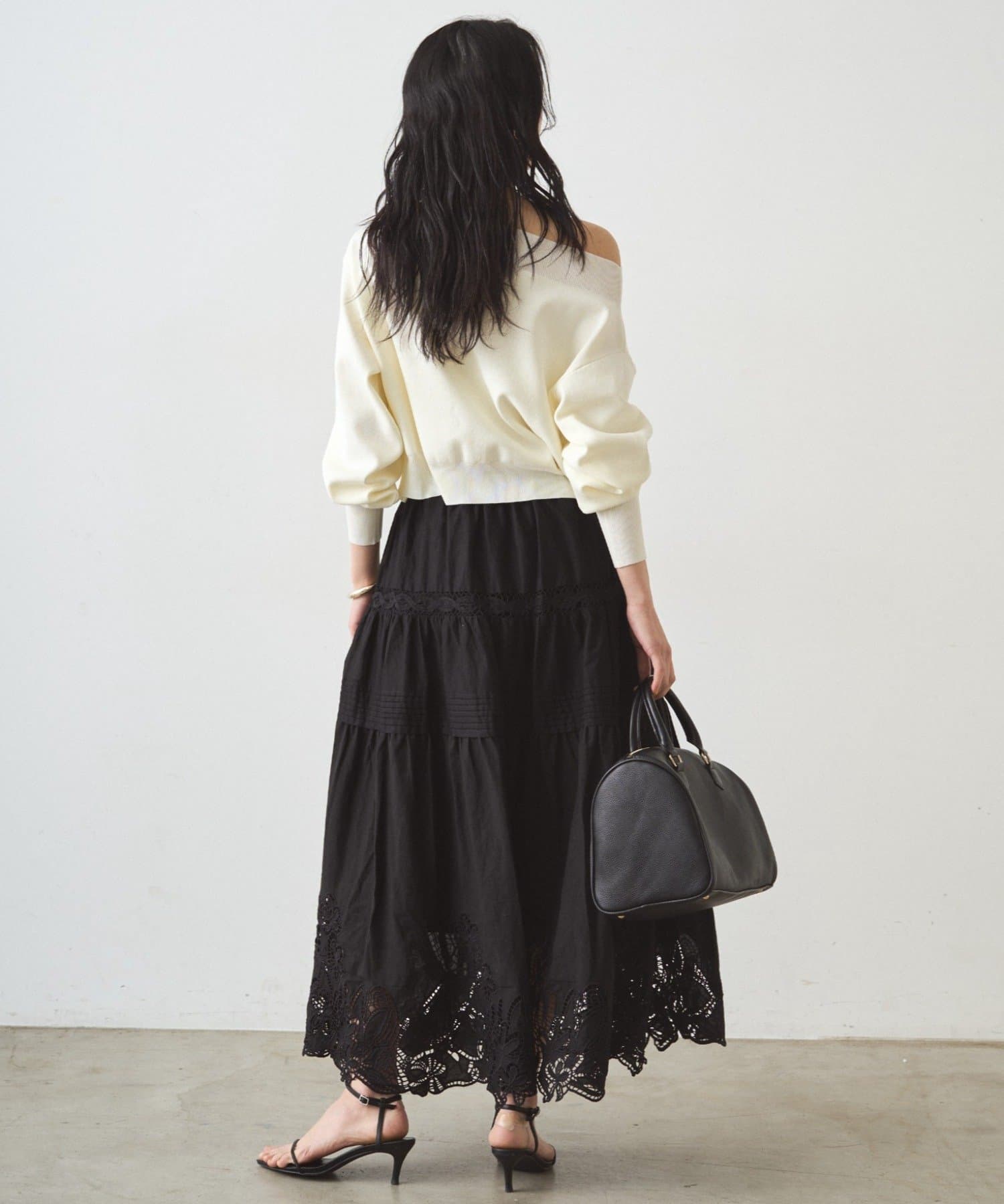 上品な甘さを引き出す、繊細レースのティアードスカート
