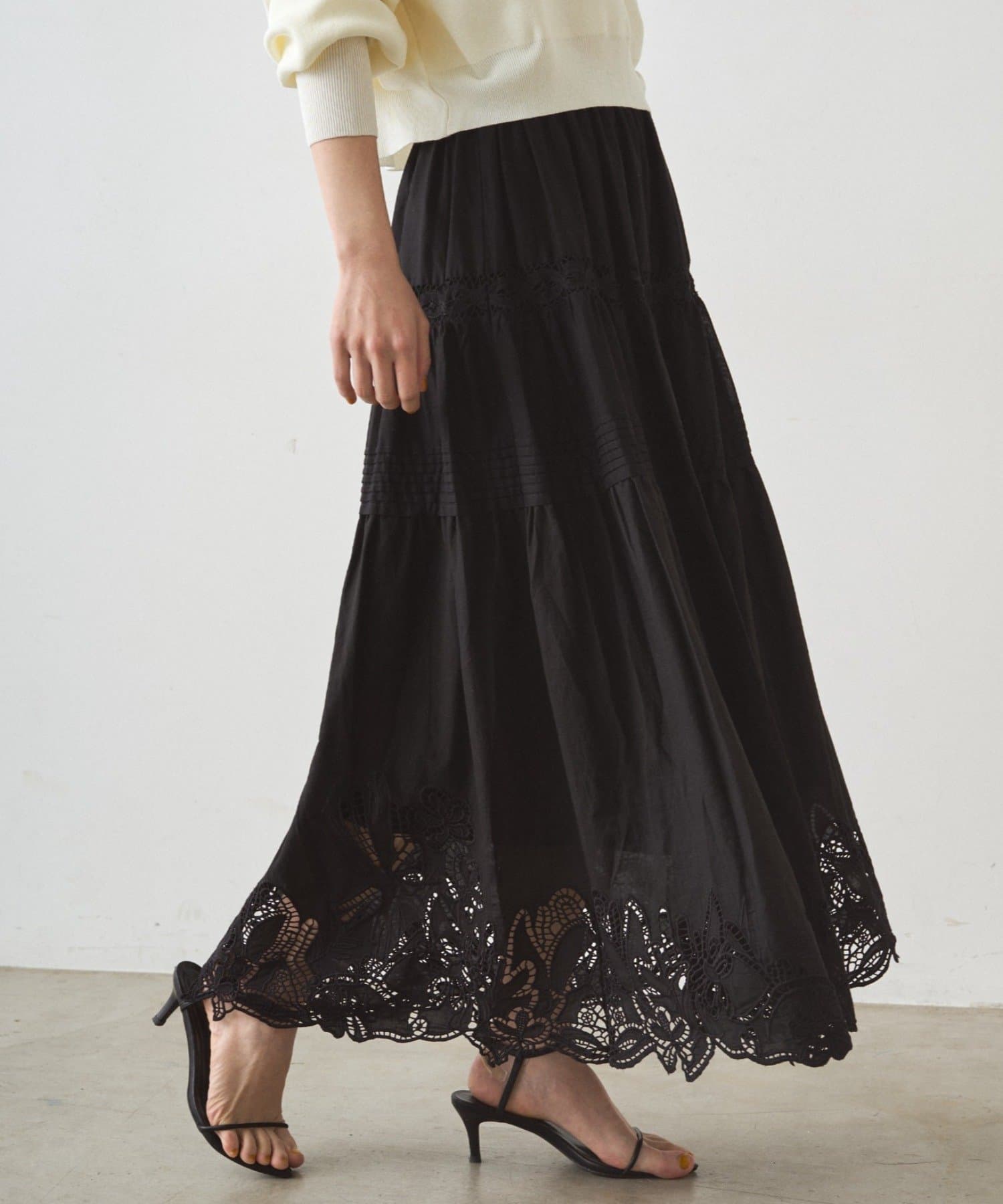 繊細なレースが、歩くたびに優雅な雰囲気を醸し出すティアードスカート。