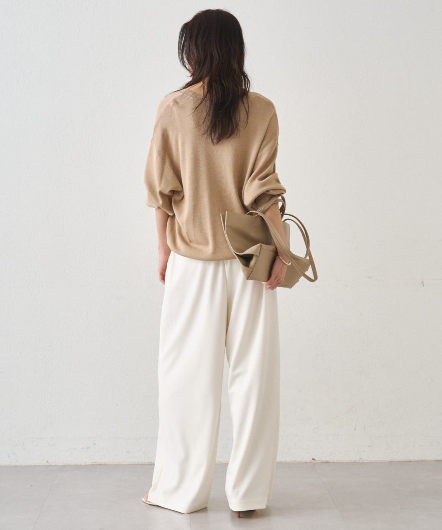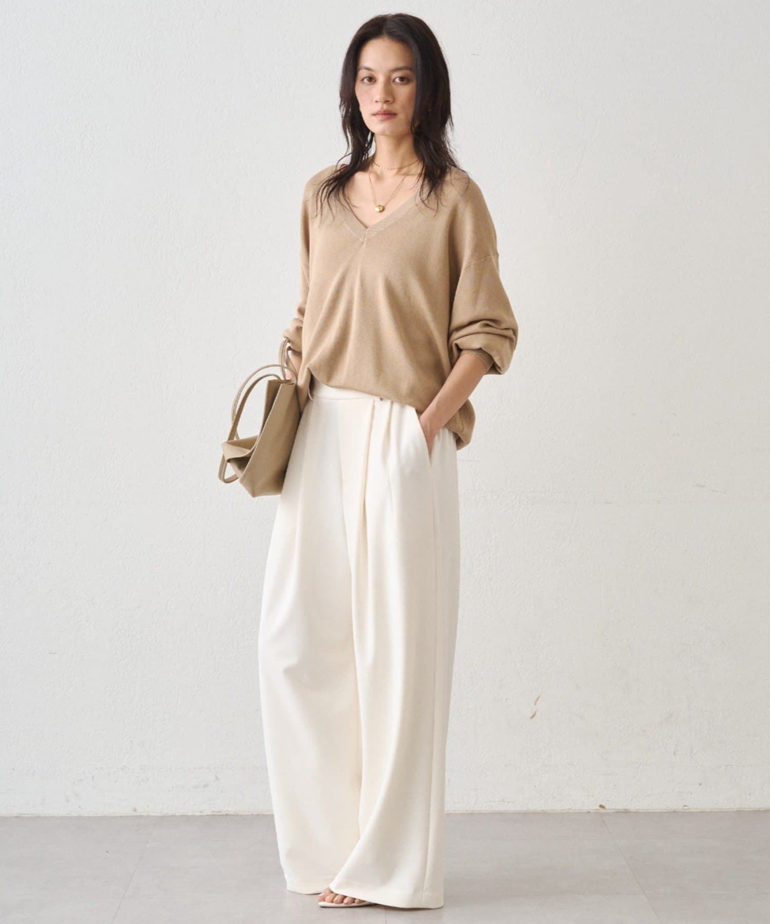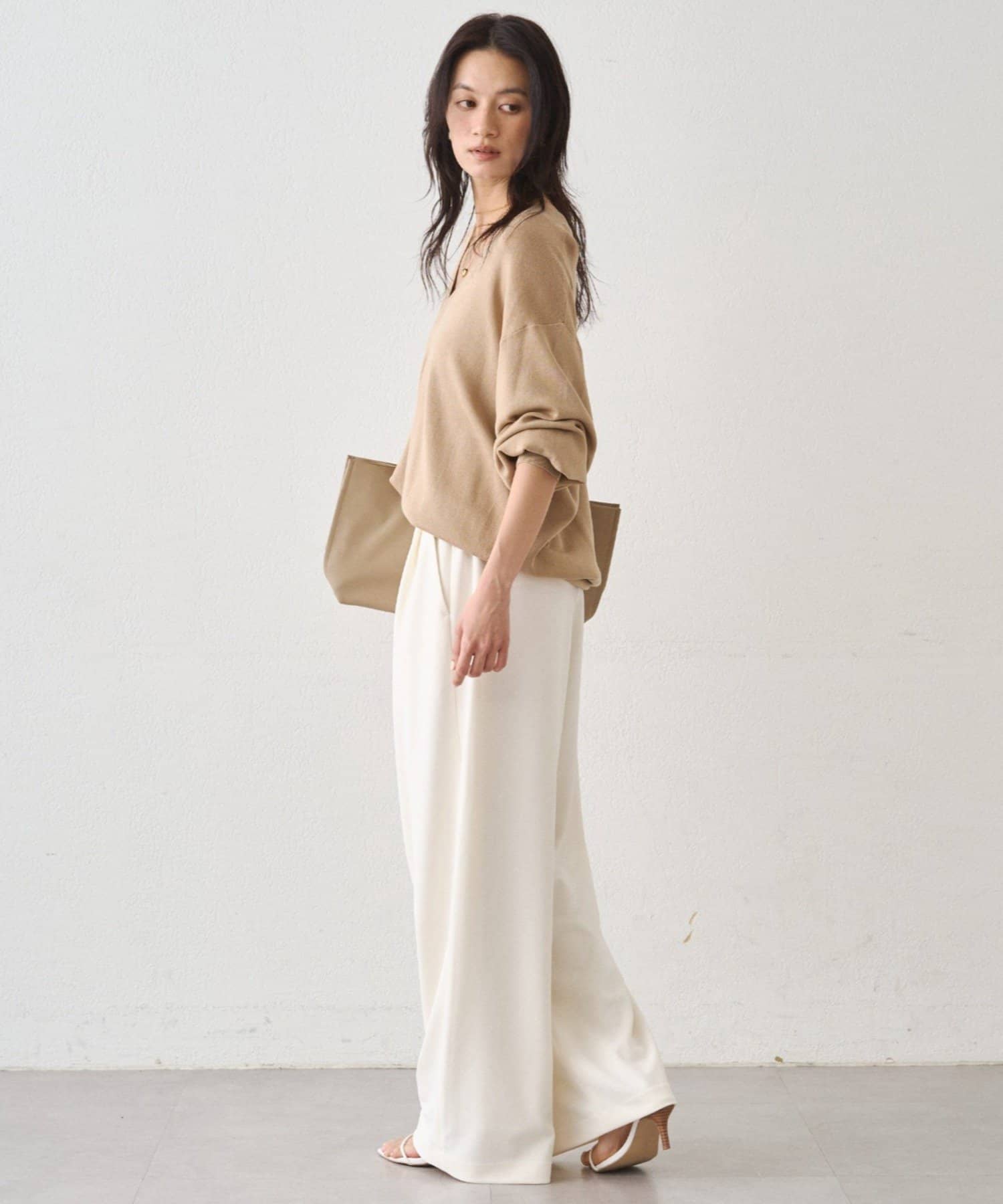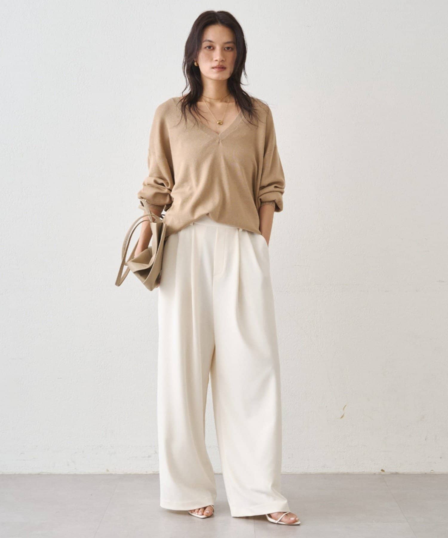 ゆったりとしたシルエットでリラックス感がありつつも、カジュアルになりすぎず上品さをしっかりキープ。大人の余裕を感じさせる着こなしが叶います。