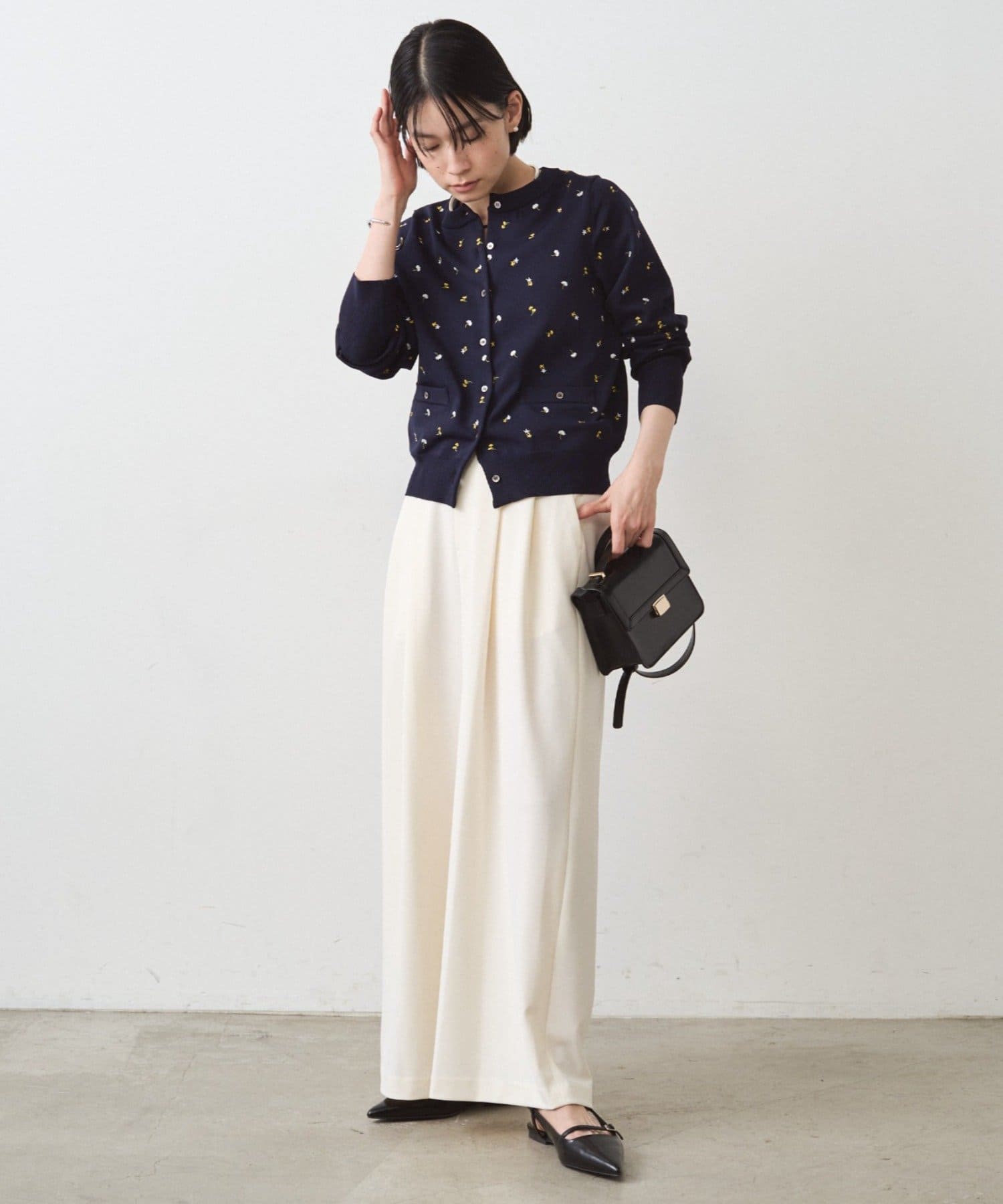 日常にさりげない華やぎを添える、上品なカーディガン。