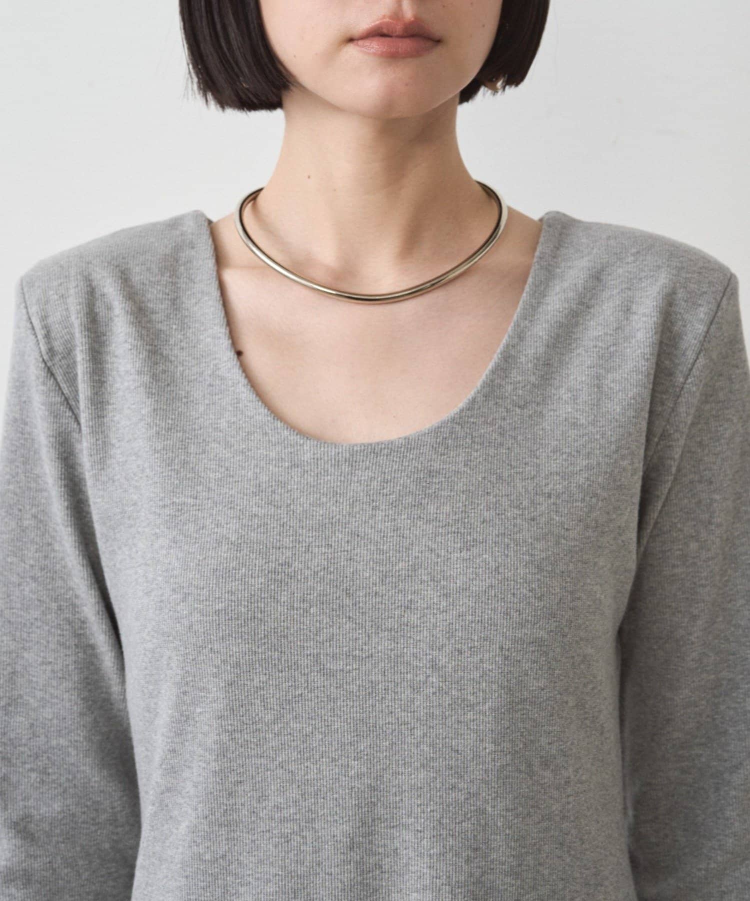 特徴的なのは、さりげなく施されたパワーショルダーのデザイン。肩のラインをほんの少しだけ強調することで、全体のシルエットにメリハリが生まれ、着るだけでスタイルアップ効果を実感できます。