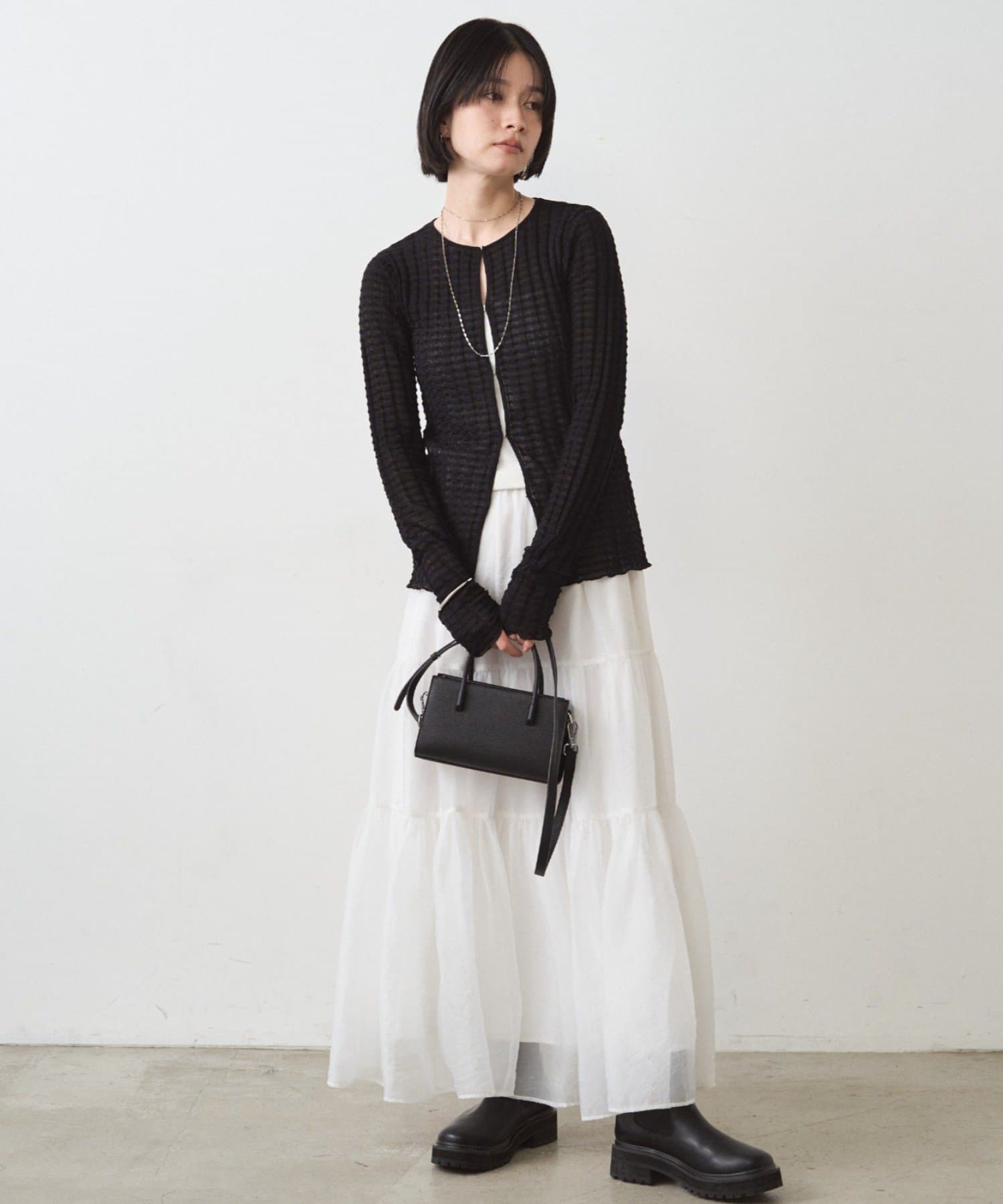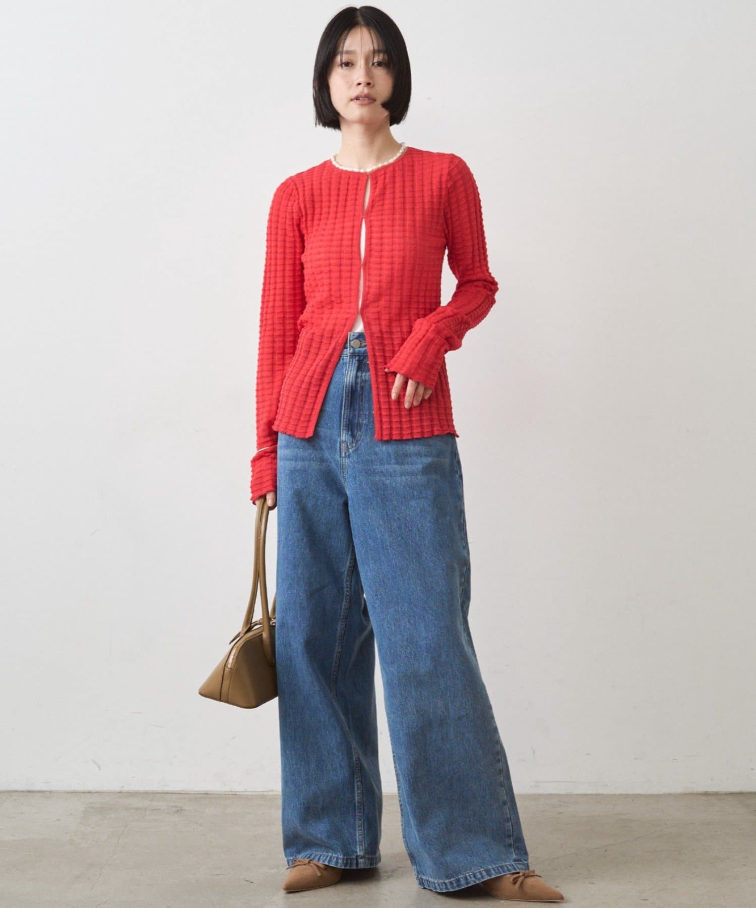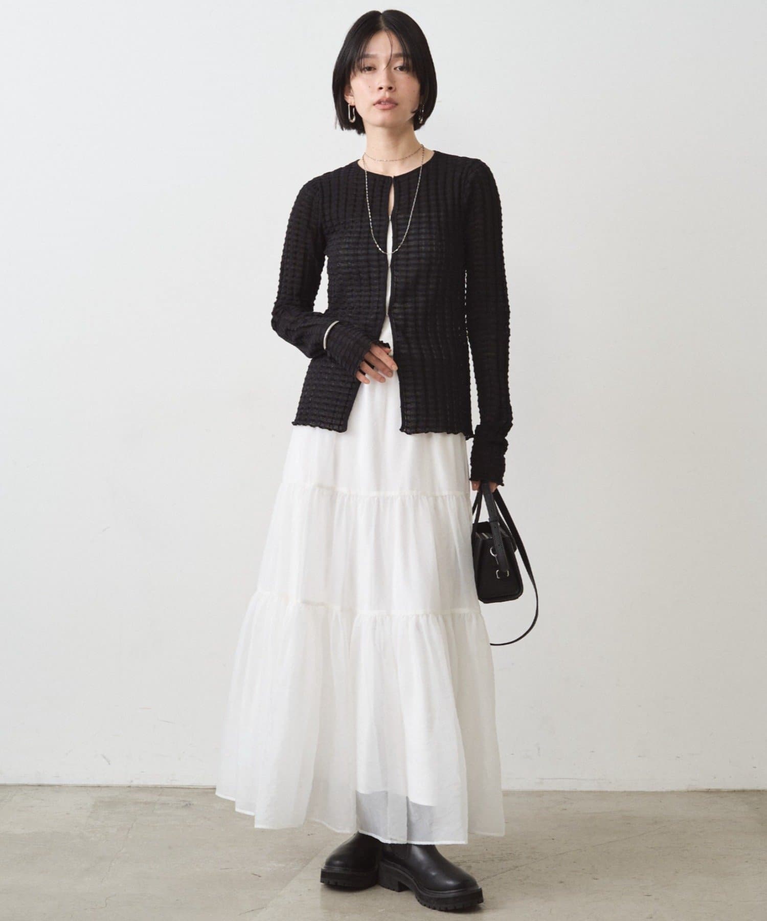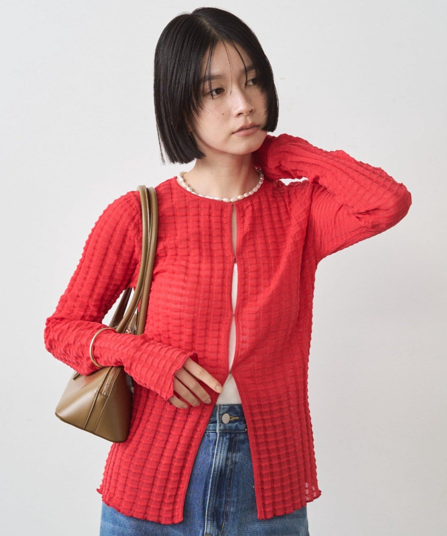 ワンピースやブラウスに重ねて、きれいめスタイルにも。幅広いスタイリングにマッチします。