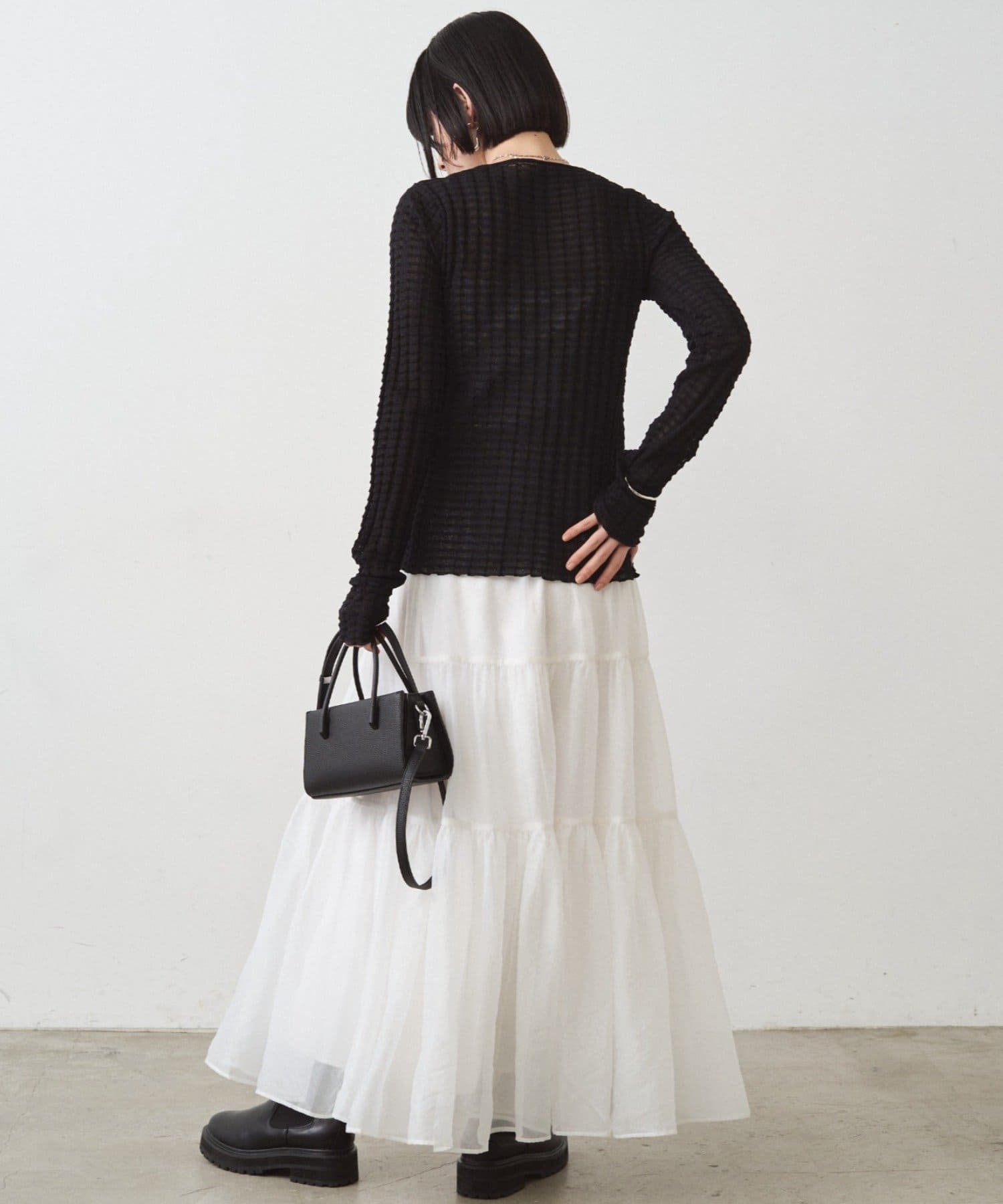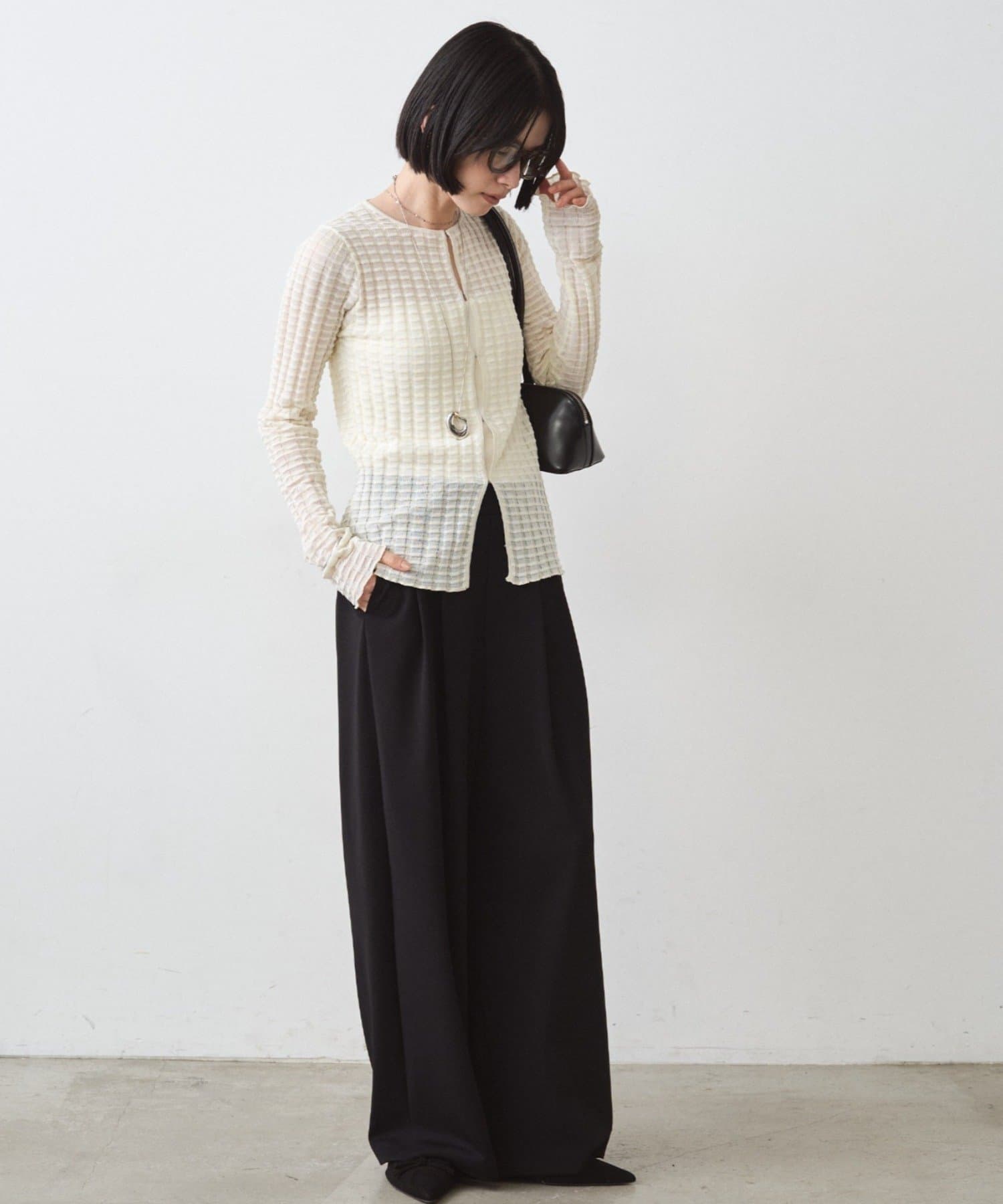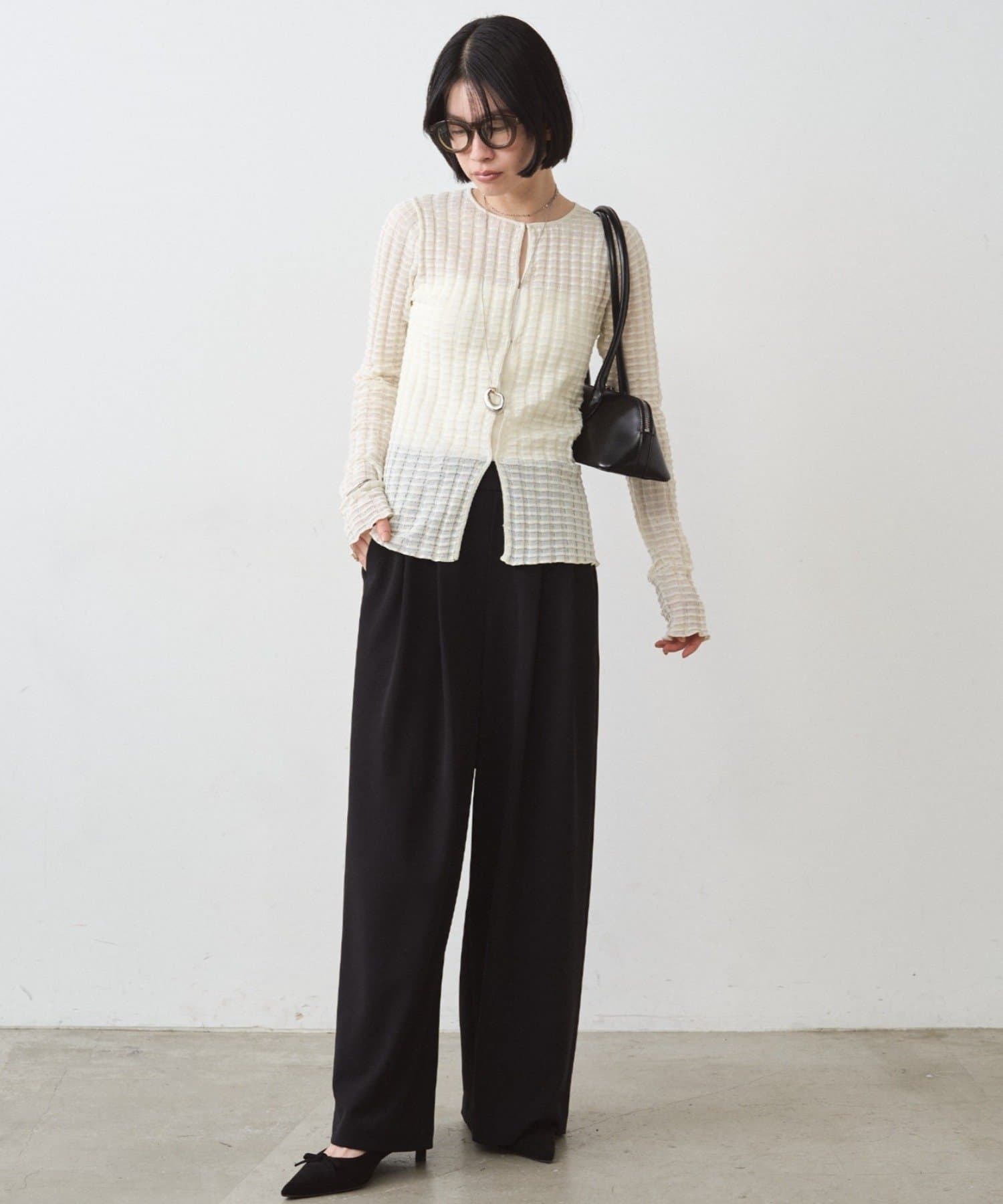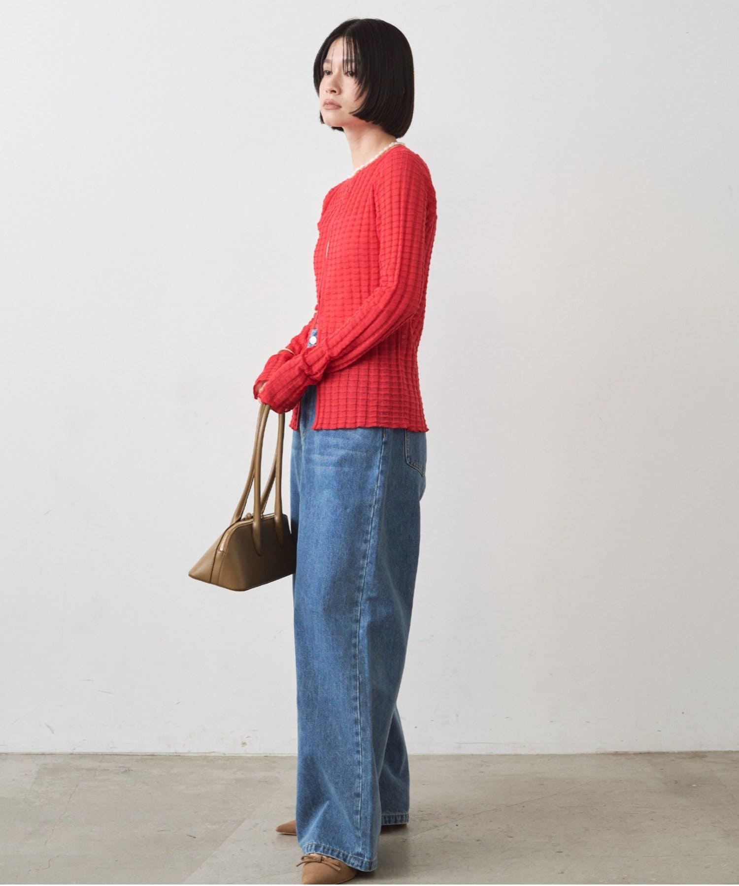 ワンピースやブラウスに重ねて、きれいめスタイルにも。幅広いスタイリングにマッチします。
