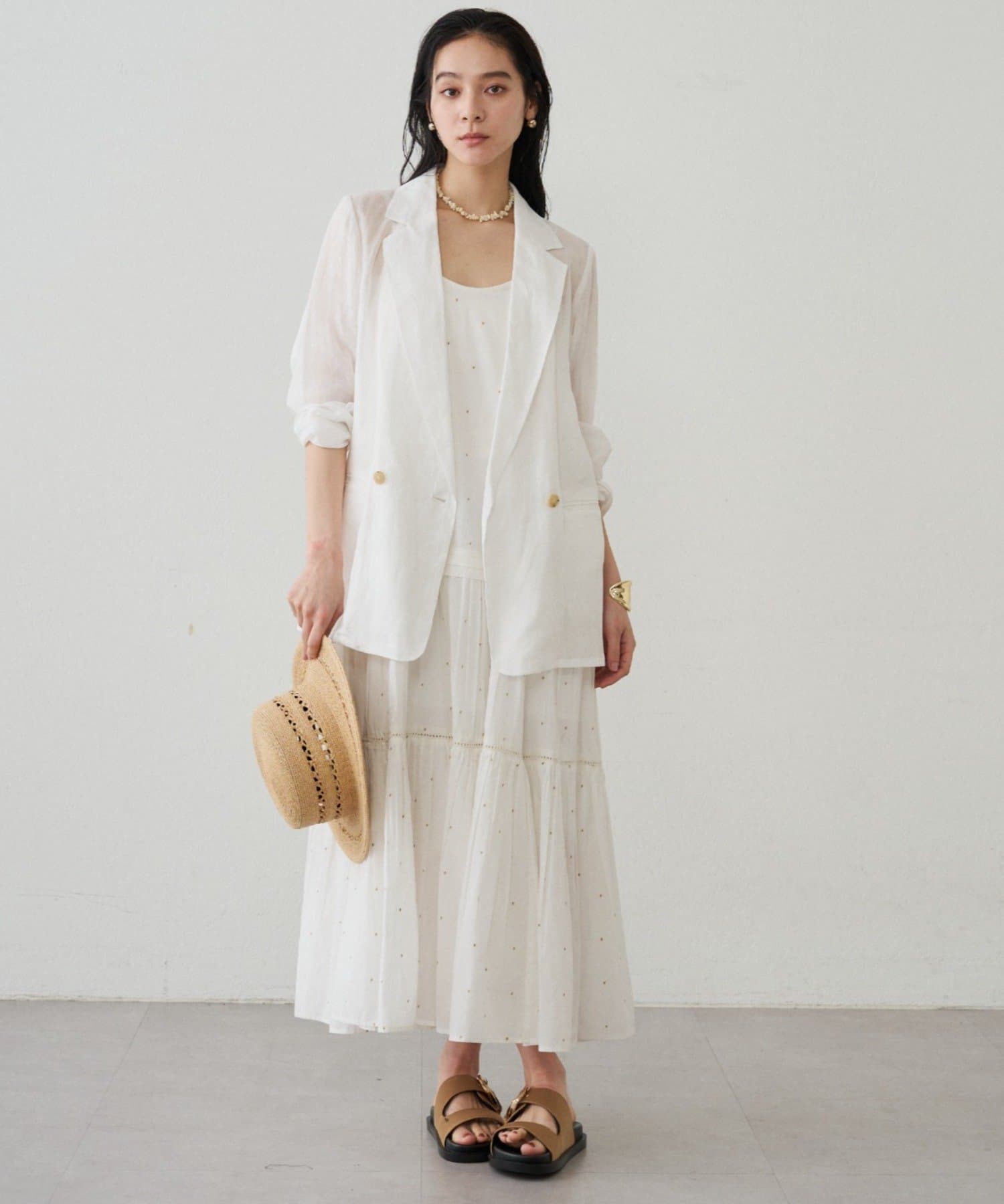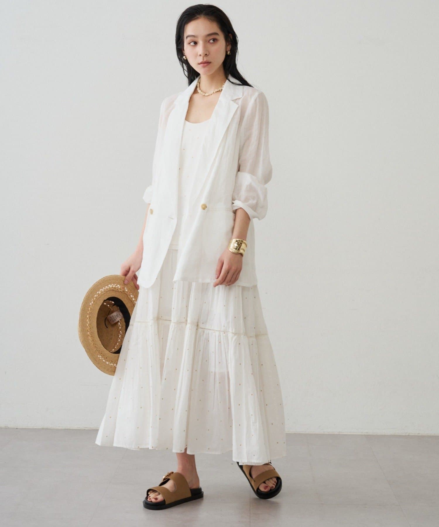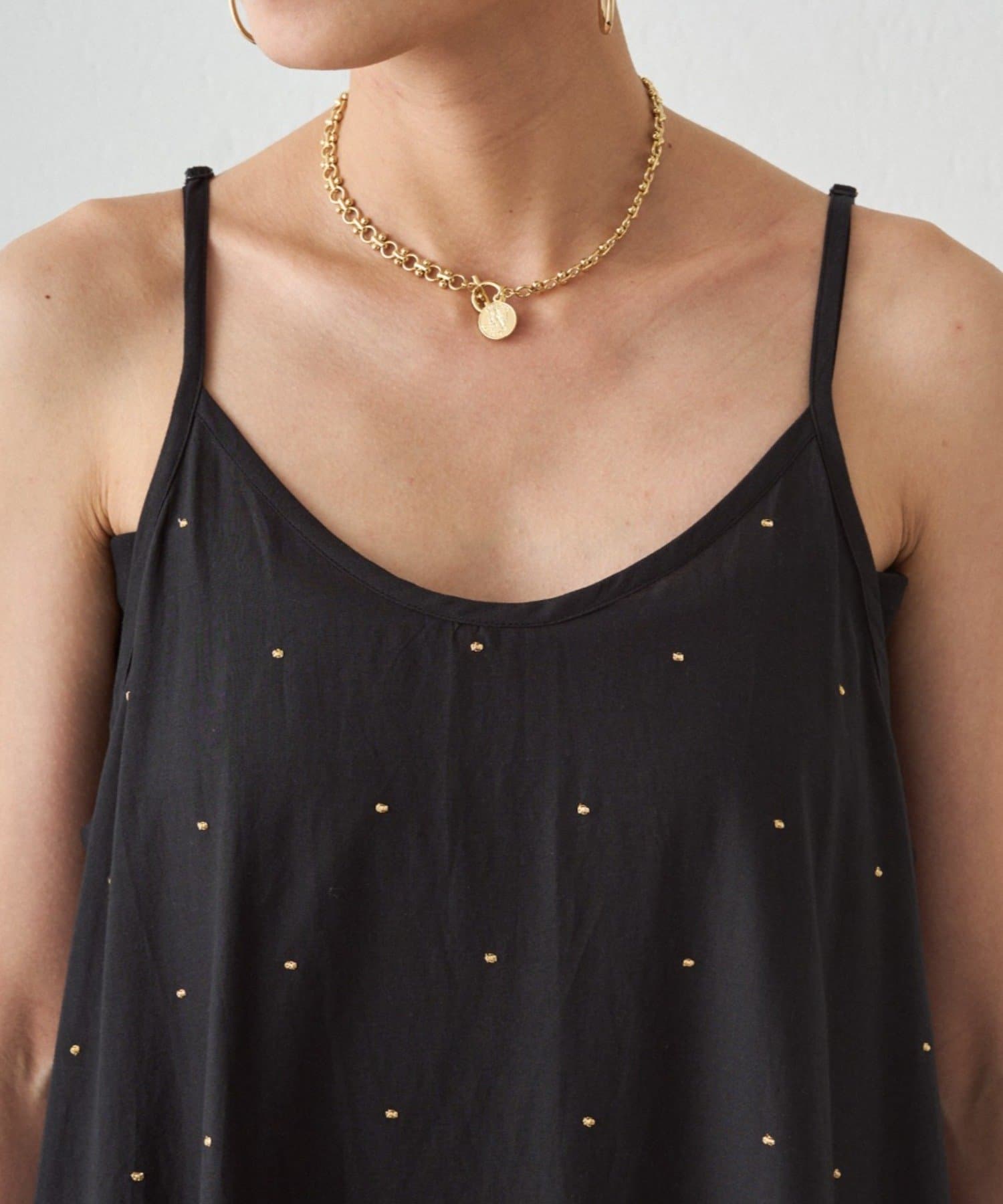 キラッとした甘すぎないドット刺繡で、大人も取り入れやすい上品な印象に。