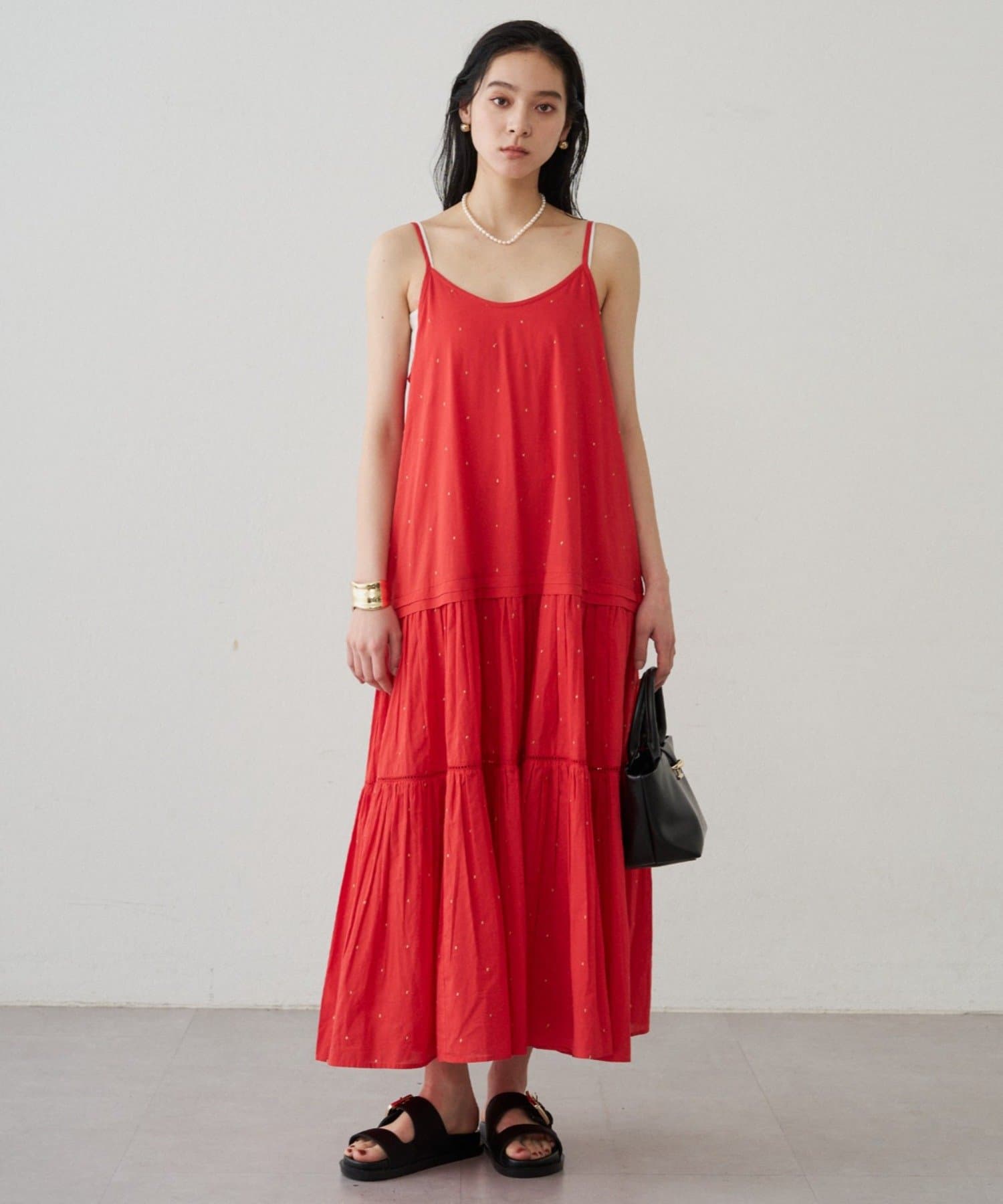 【INDIA】刺繍ティアードキャミワンピース