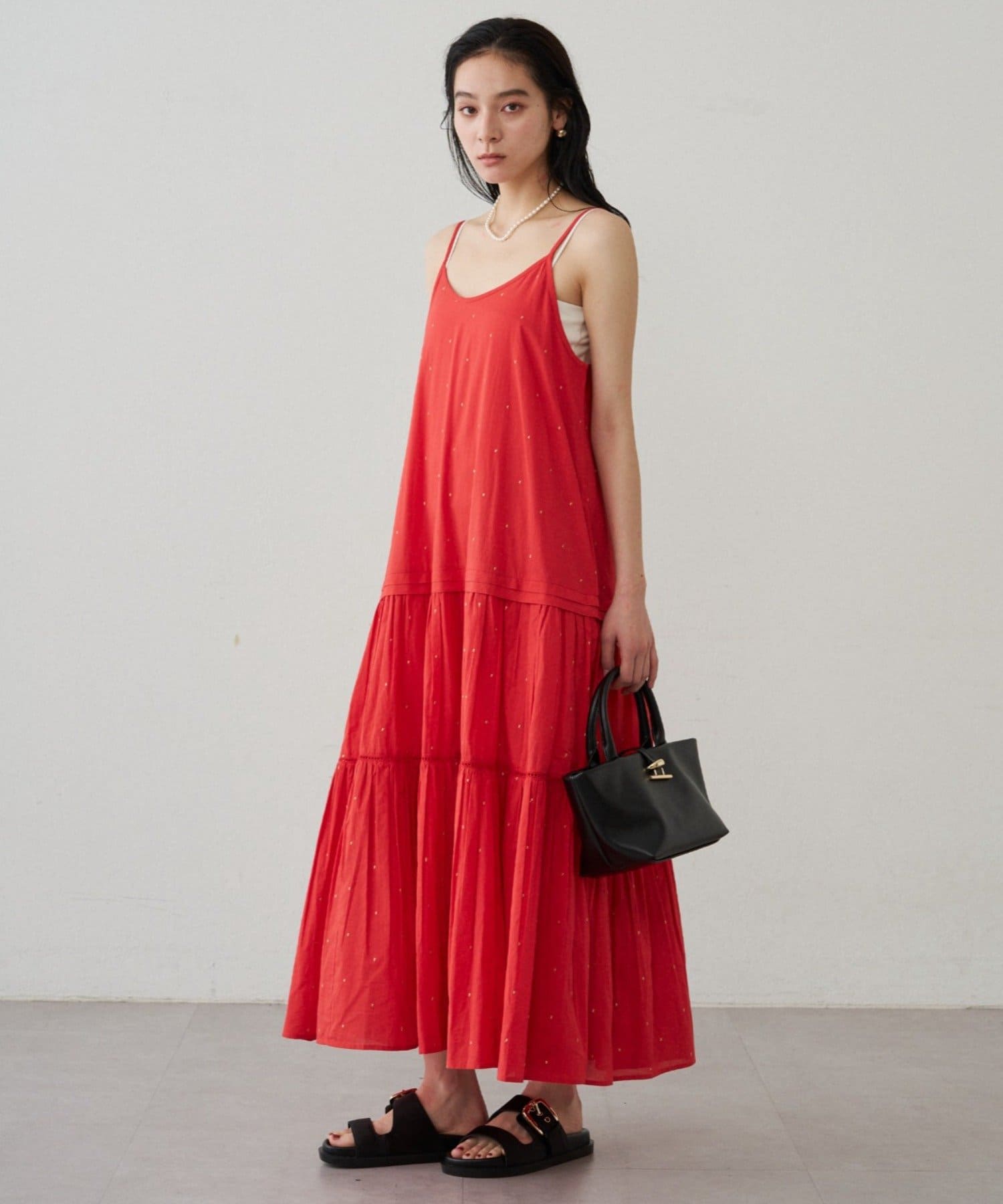 ラウンジドレスで定番で人気のティアードキャミワンピースをインド生産でアップデート