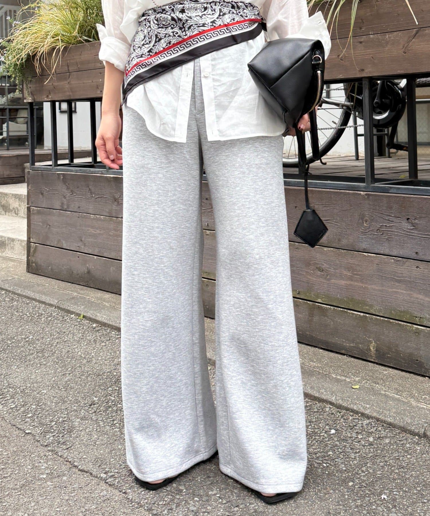 ハリのある生地がヒップや太もものラインを拾いにくく、すっきりとした着こなしを叶えます。