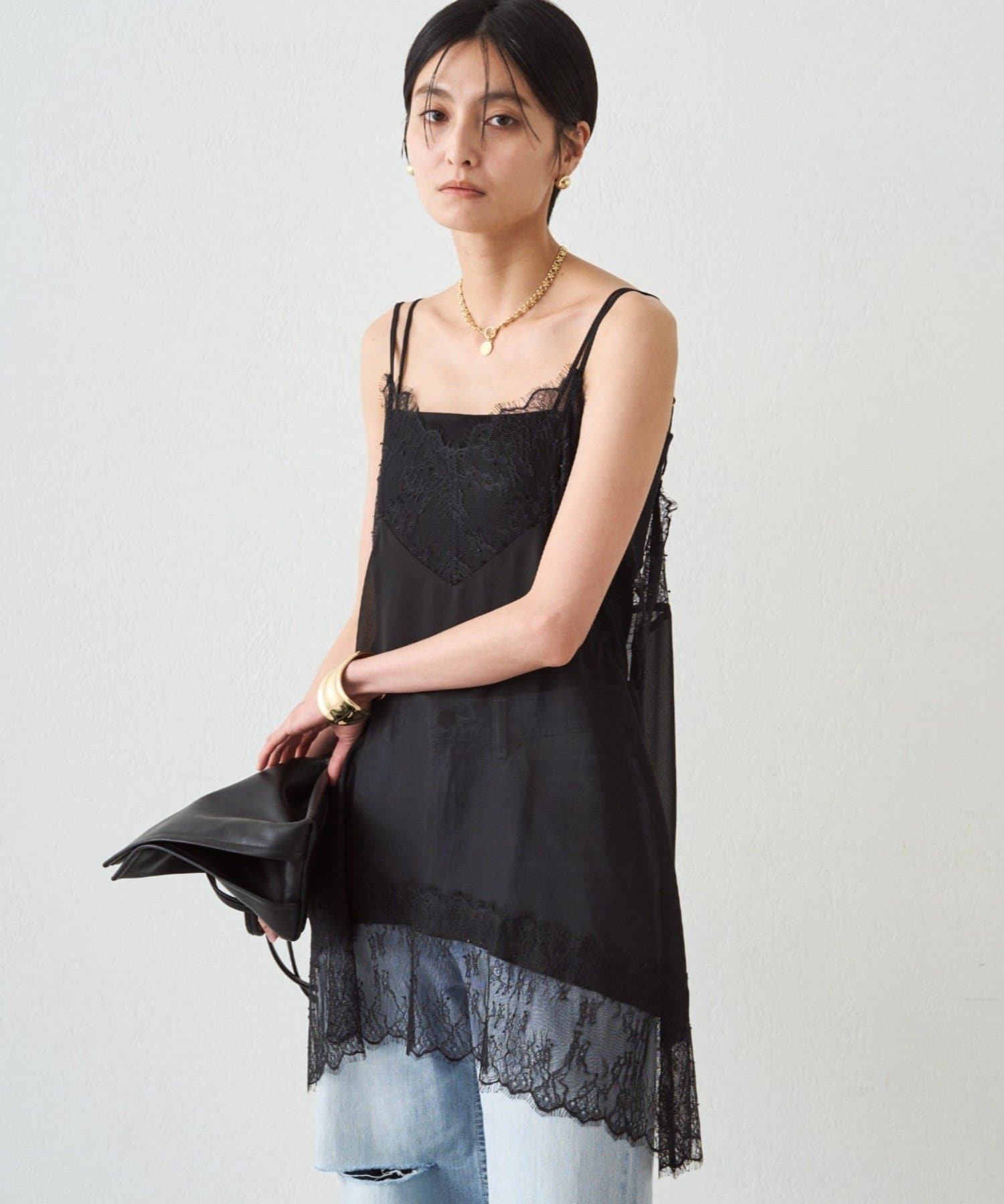 繊細なレースが舞う、リュクスなシフォンキャミ