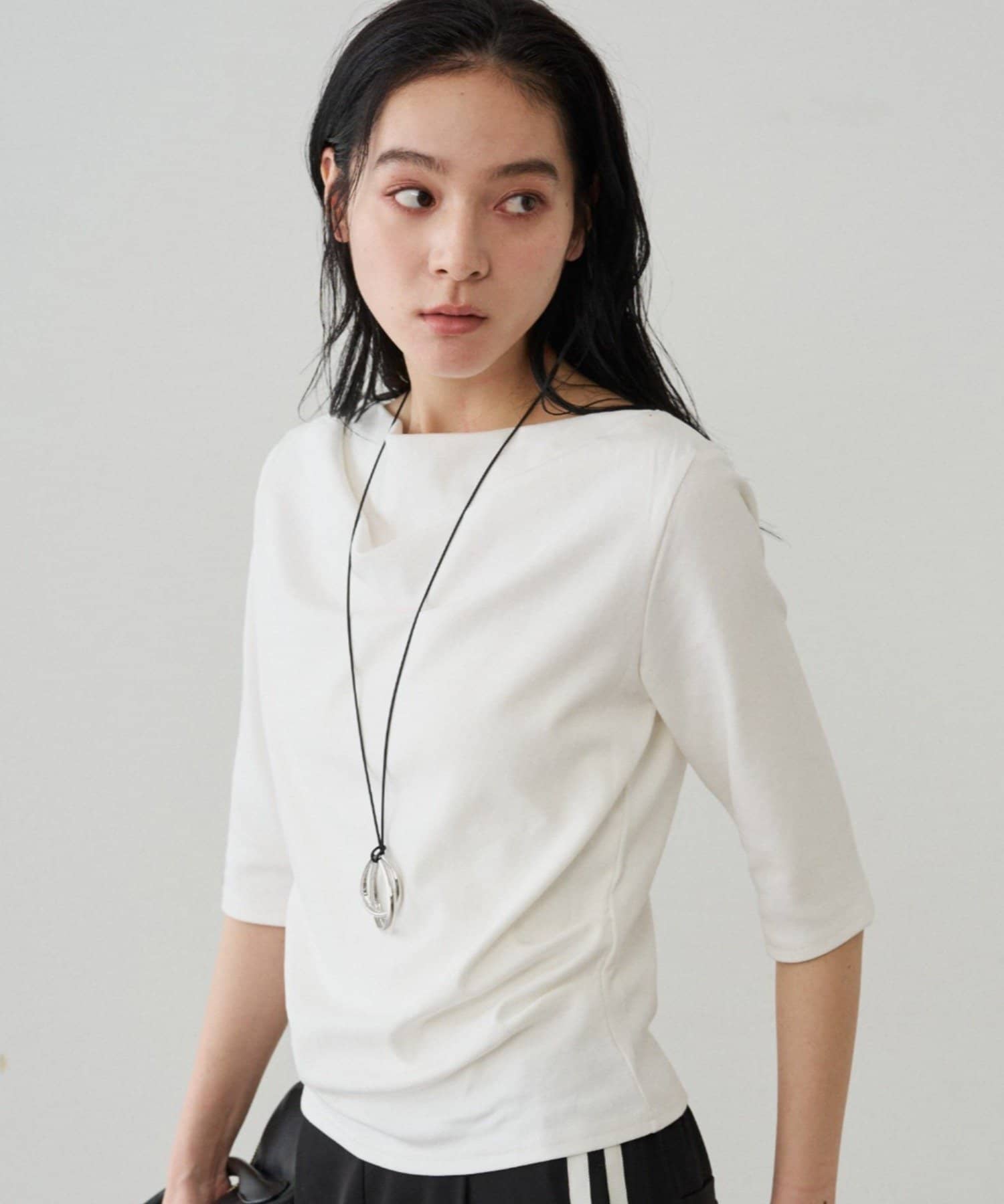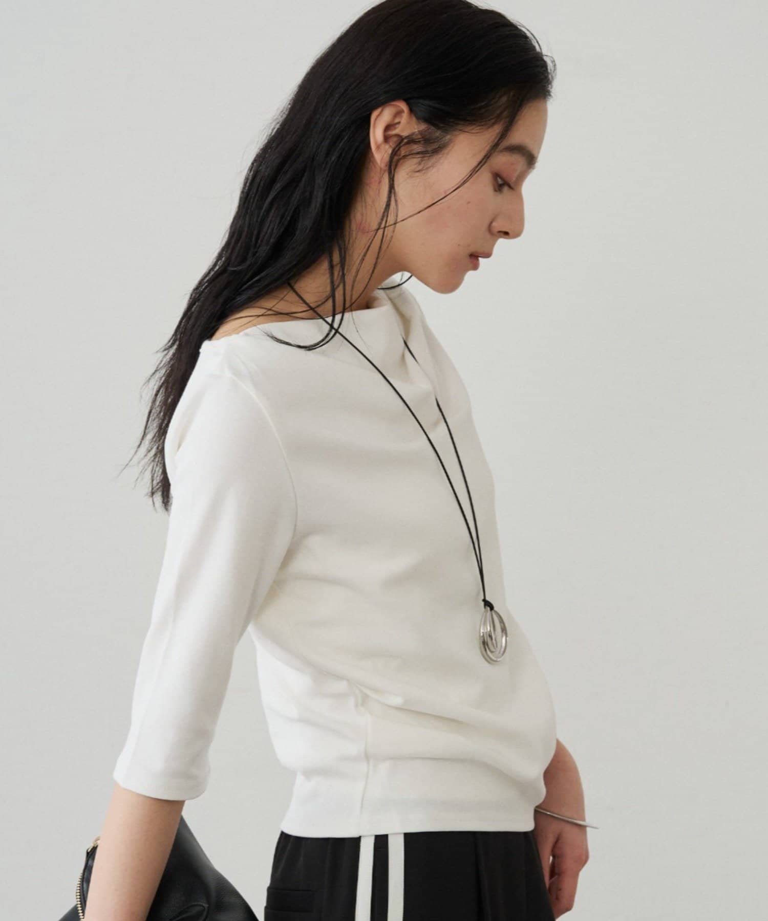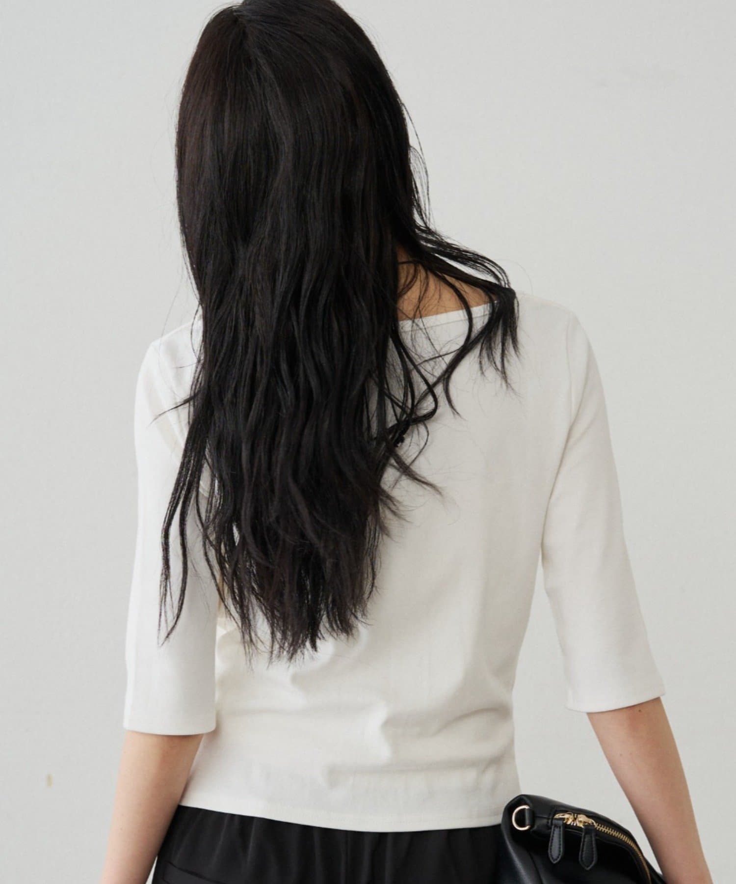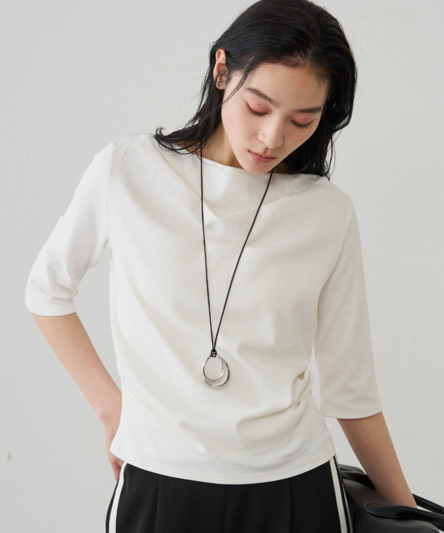 程よい伸縮性があり、快適な着心地です。七分袖で、手首を華奢に見せてくれる効果も。