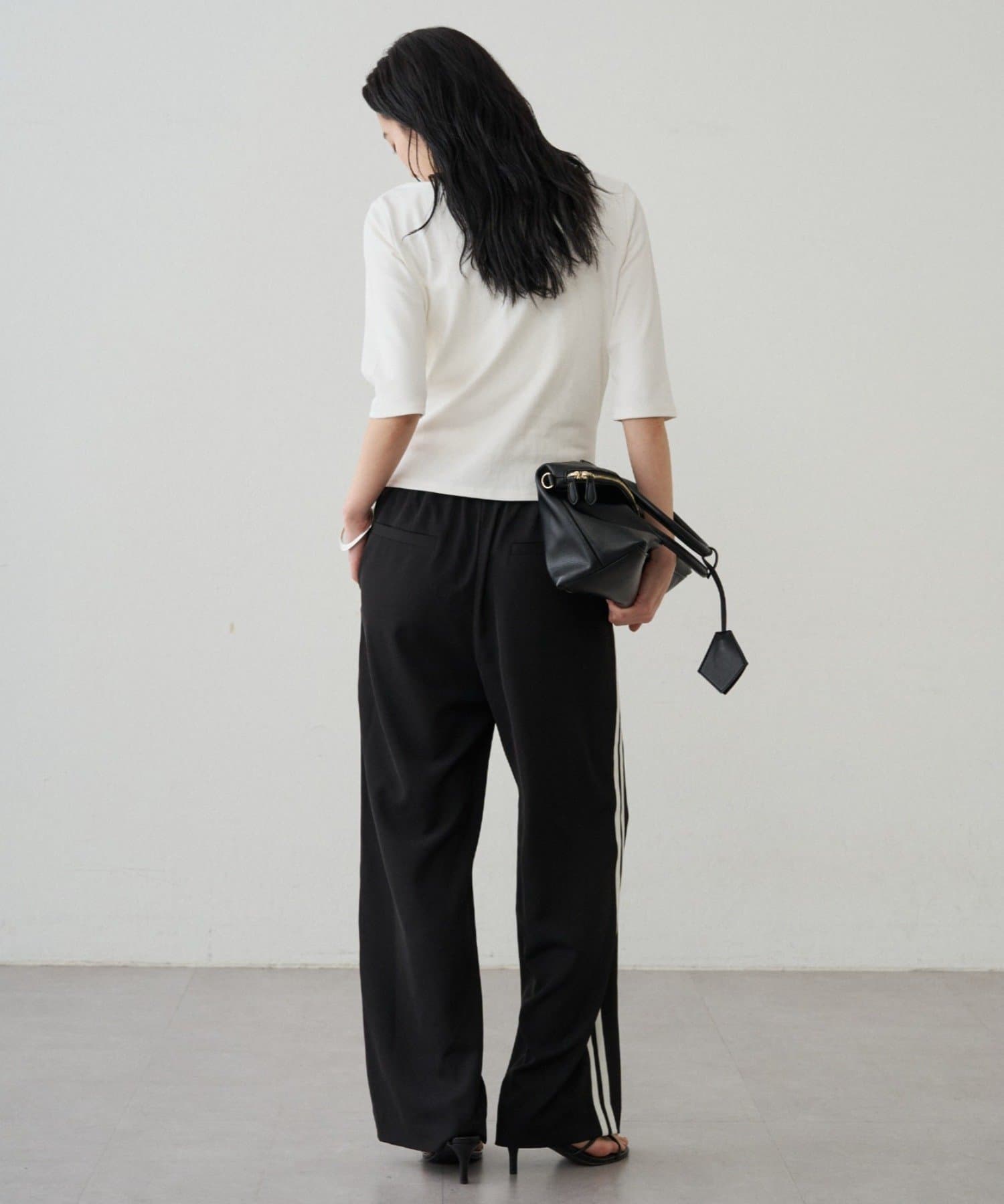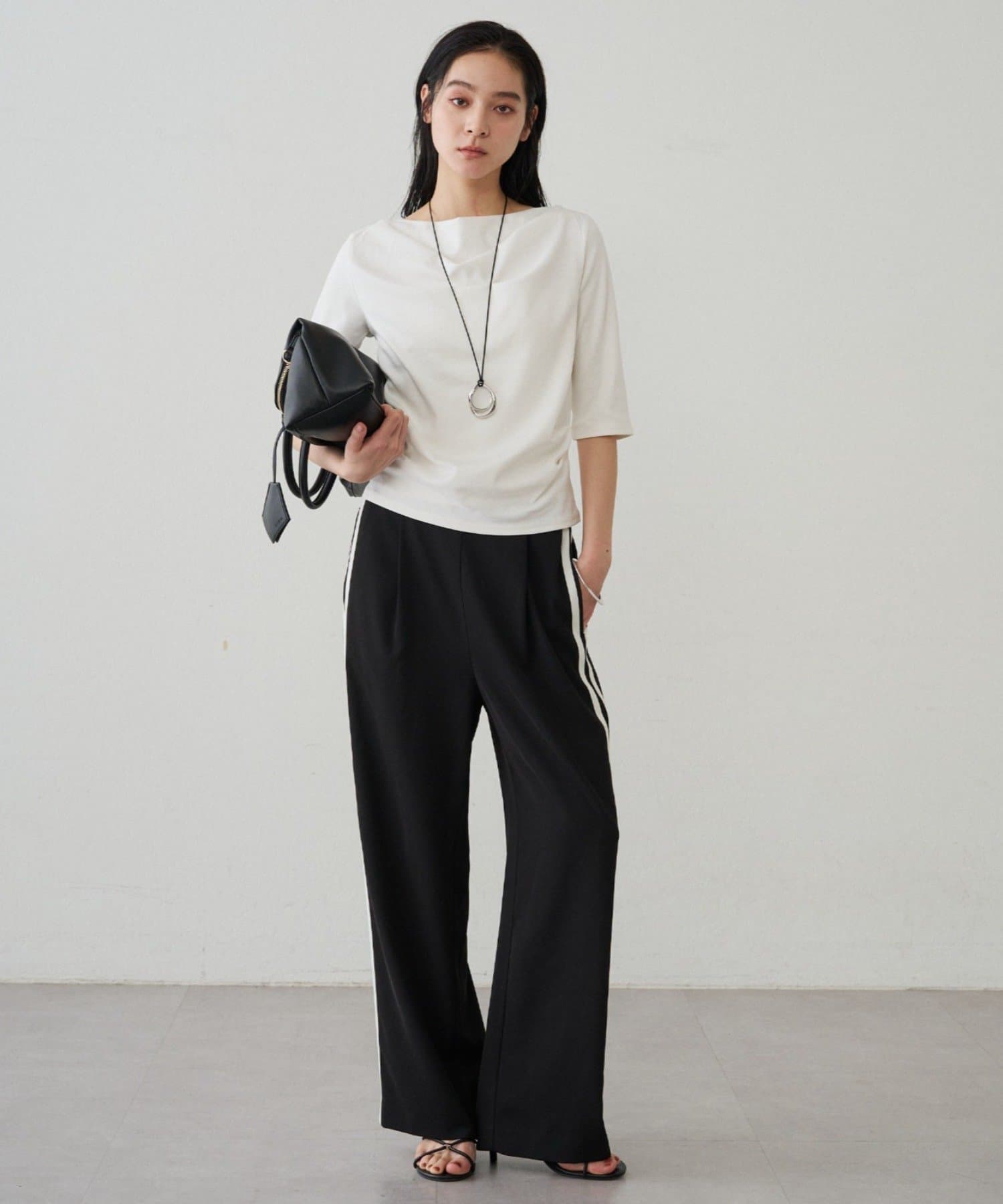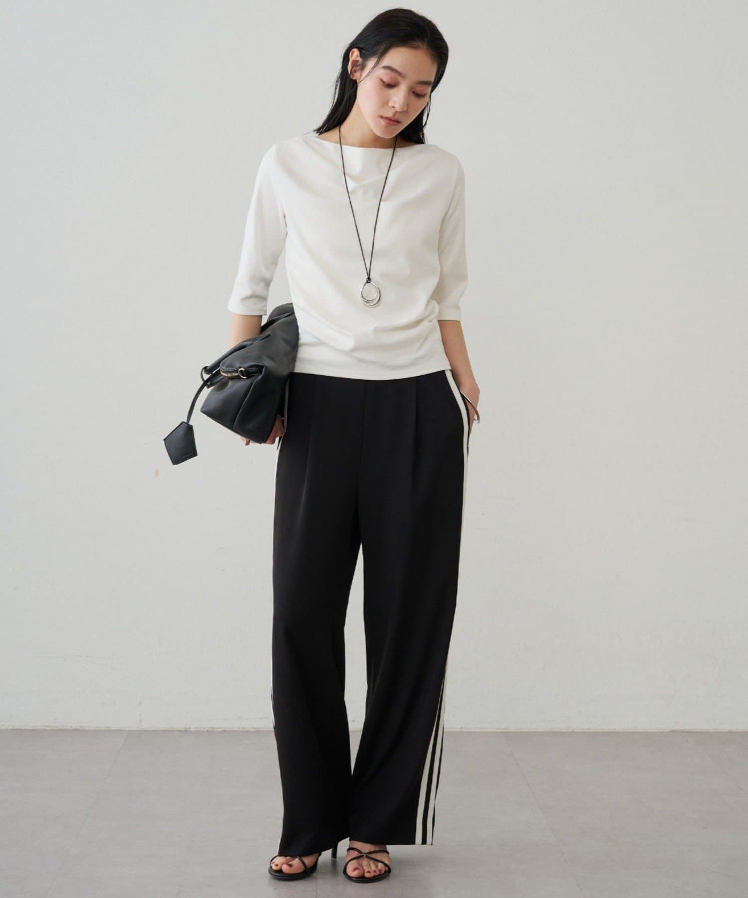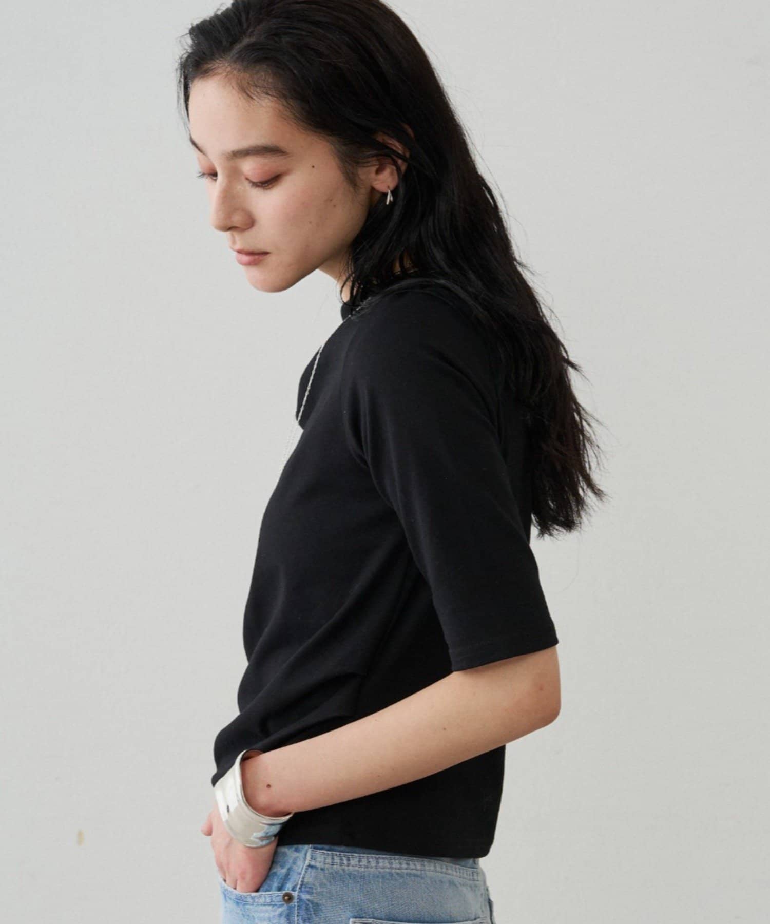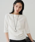 程よい伸縮性があり、快適な着心地です。七分袖で、手首を華奢に見せてくれる効果も。