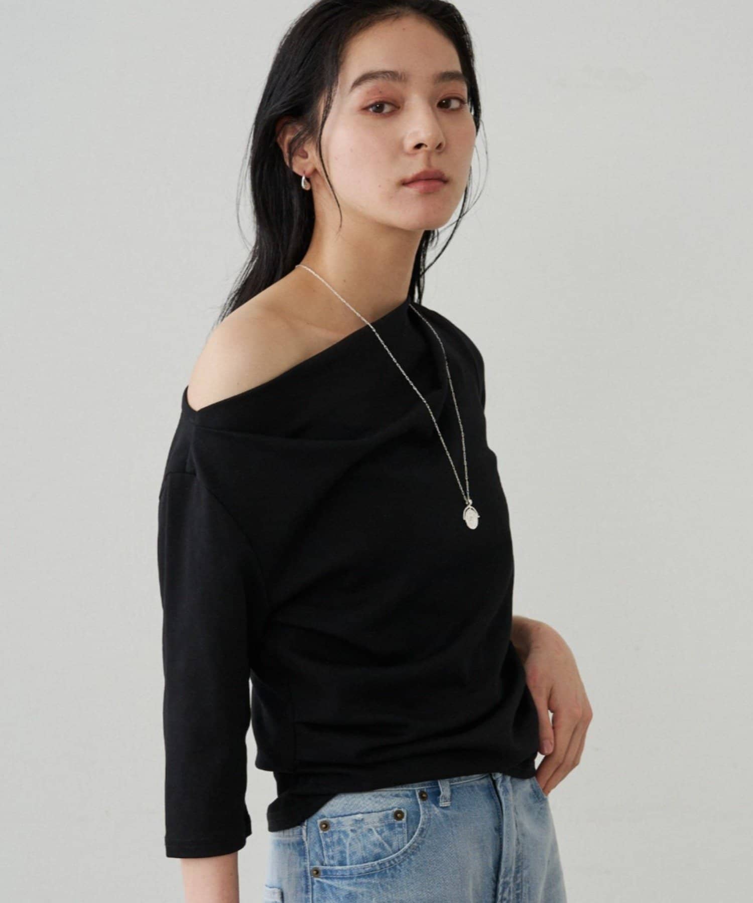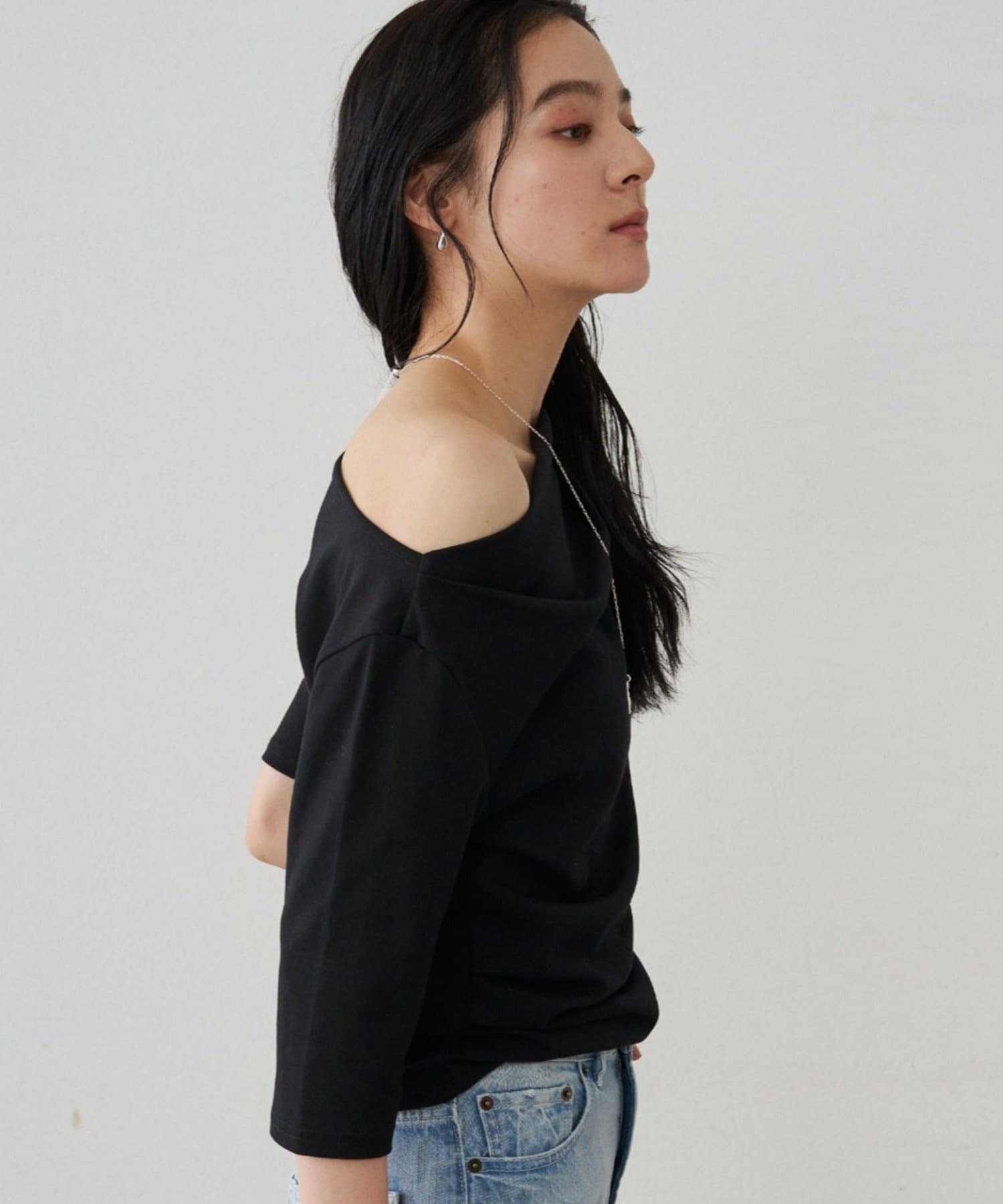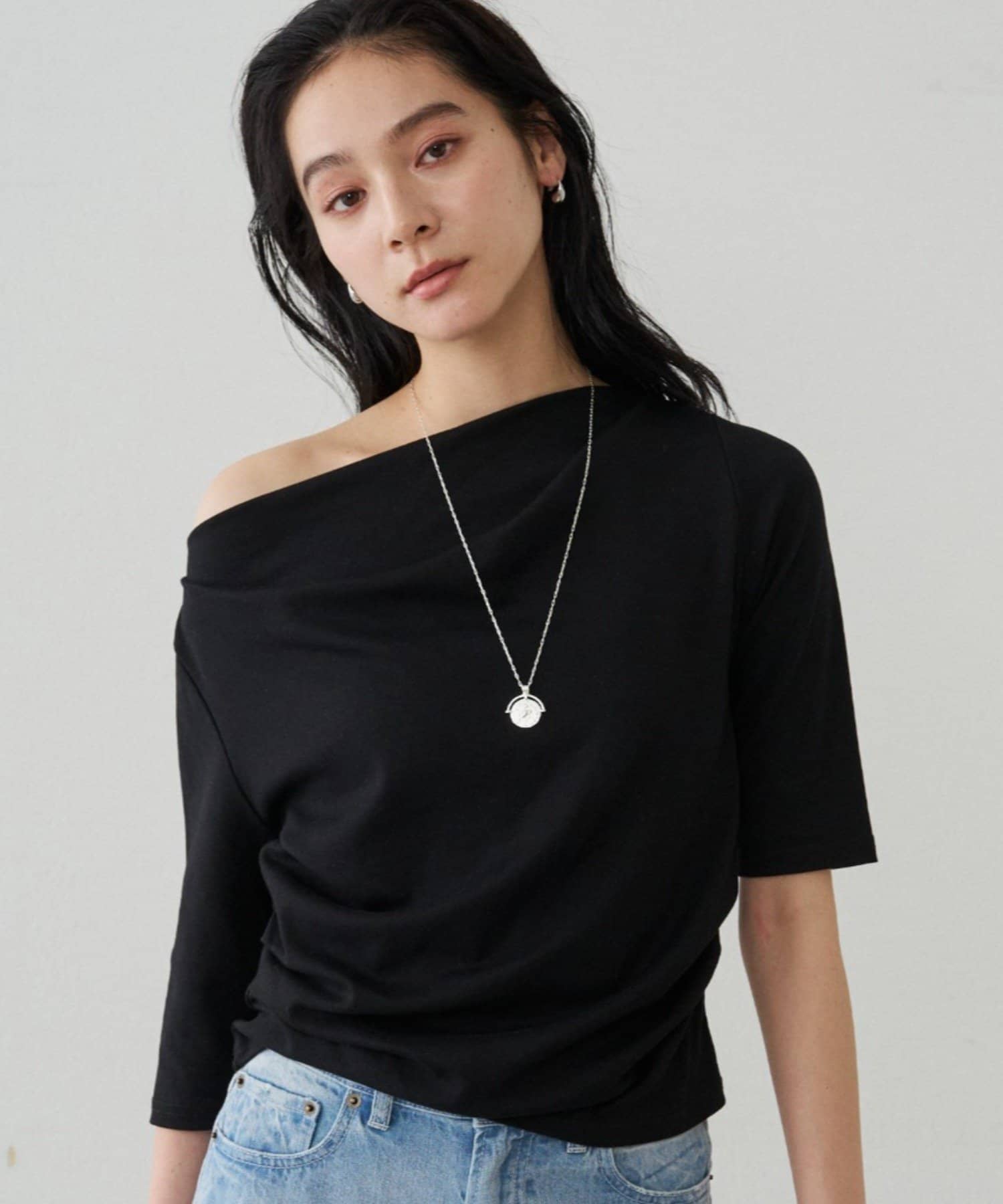 オフショルダーにも、片方の肩を見せてワンショルダーにも、ご着用できますので、ご気分で着方を変えて楽しんでいただけます。
