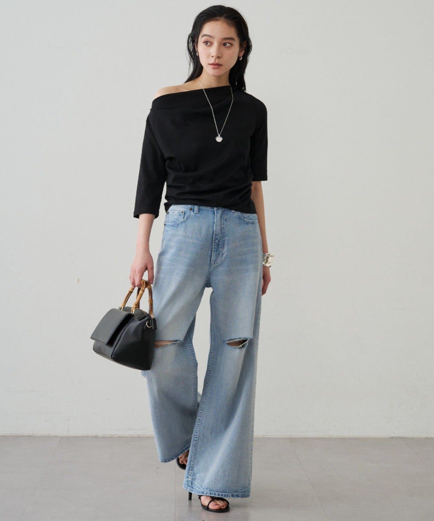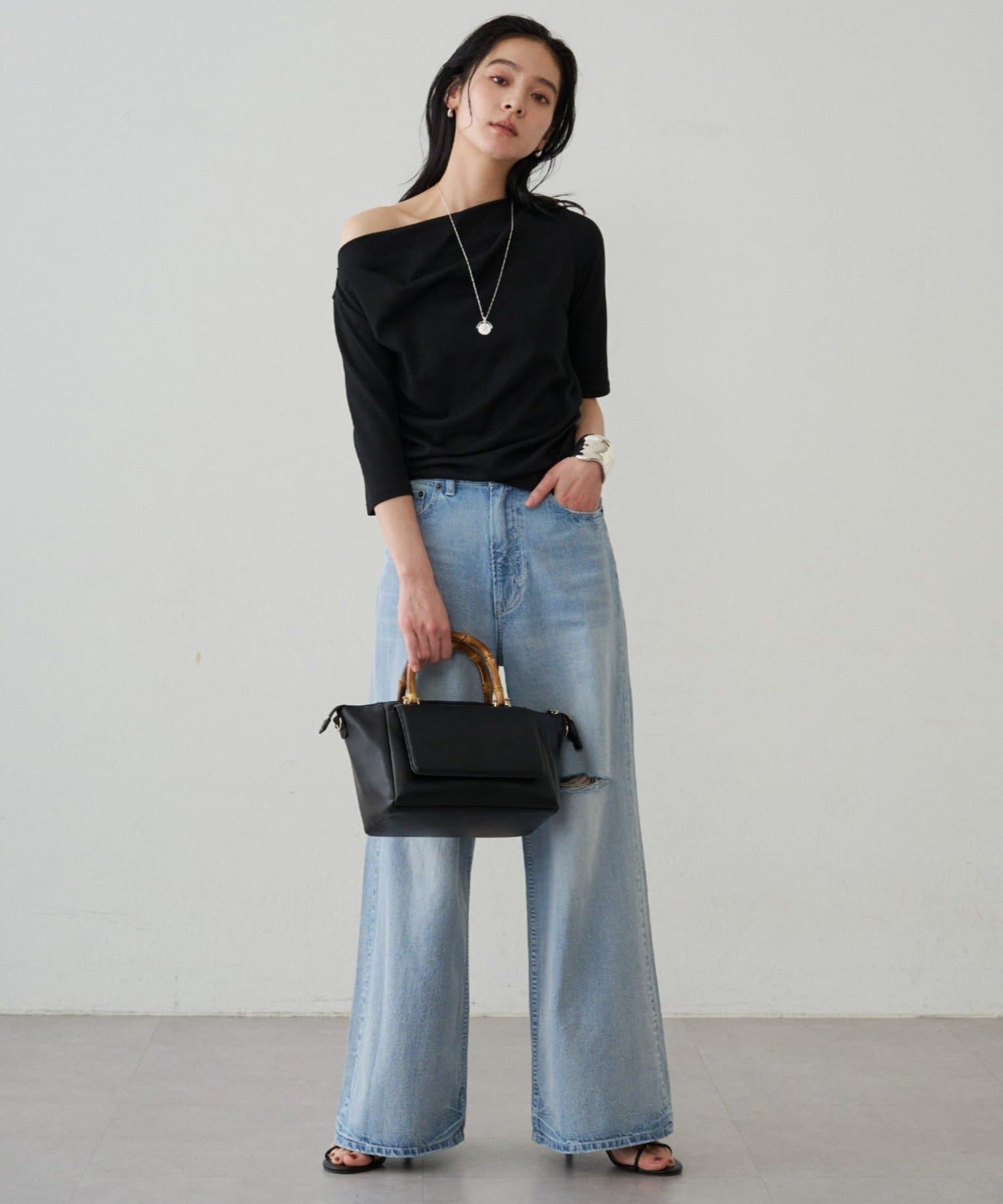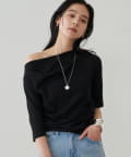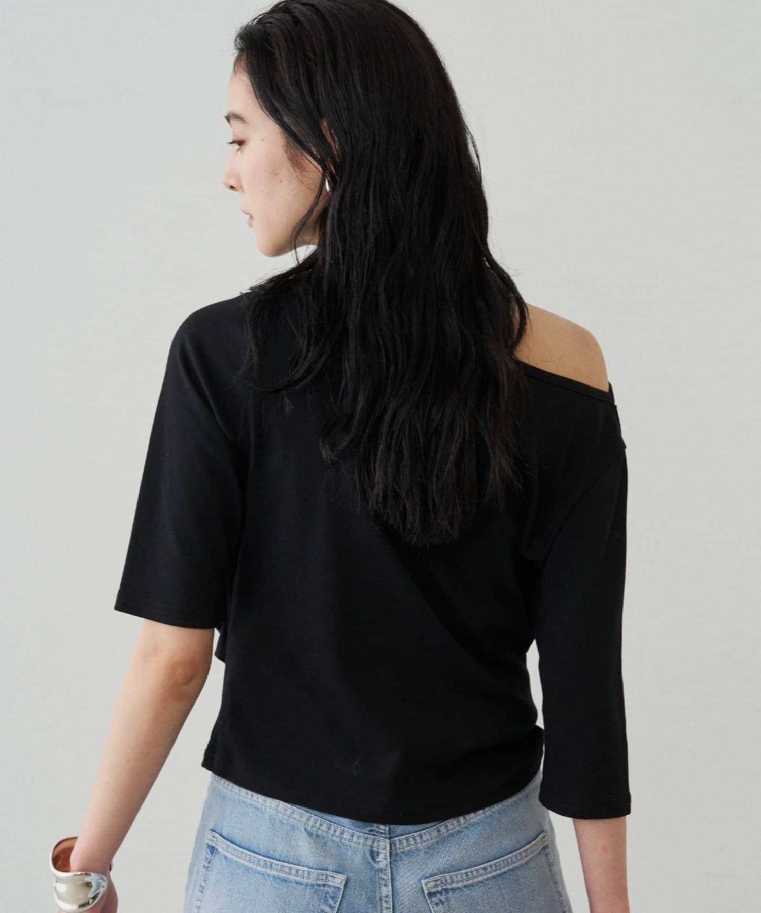 オフショルダーにも、片方の肩を見せてワンショルダーにも、ご着用できますので、ご気分で着方を変えて楽しんでいただけます。