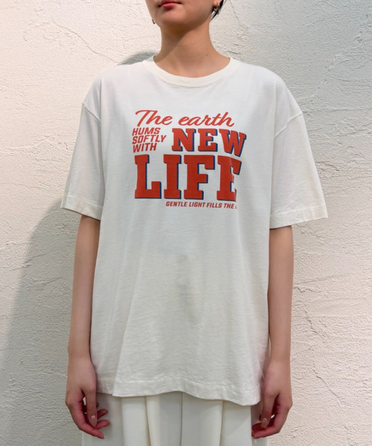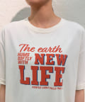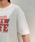 オリジナルのロゴが目を引くプリントTシャツ。