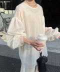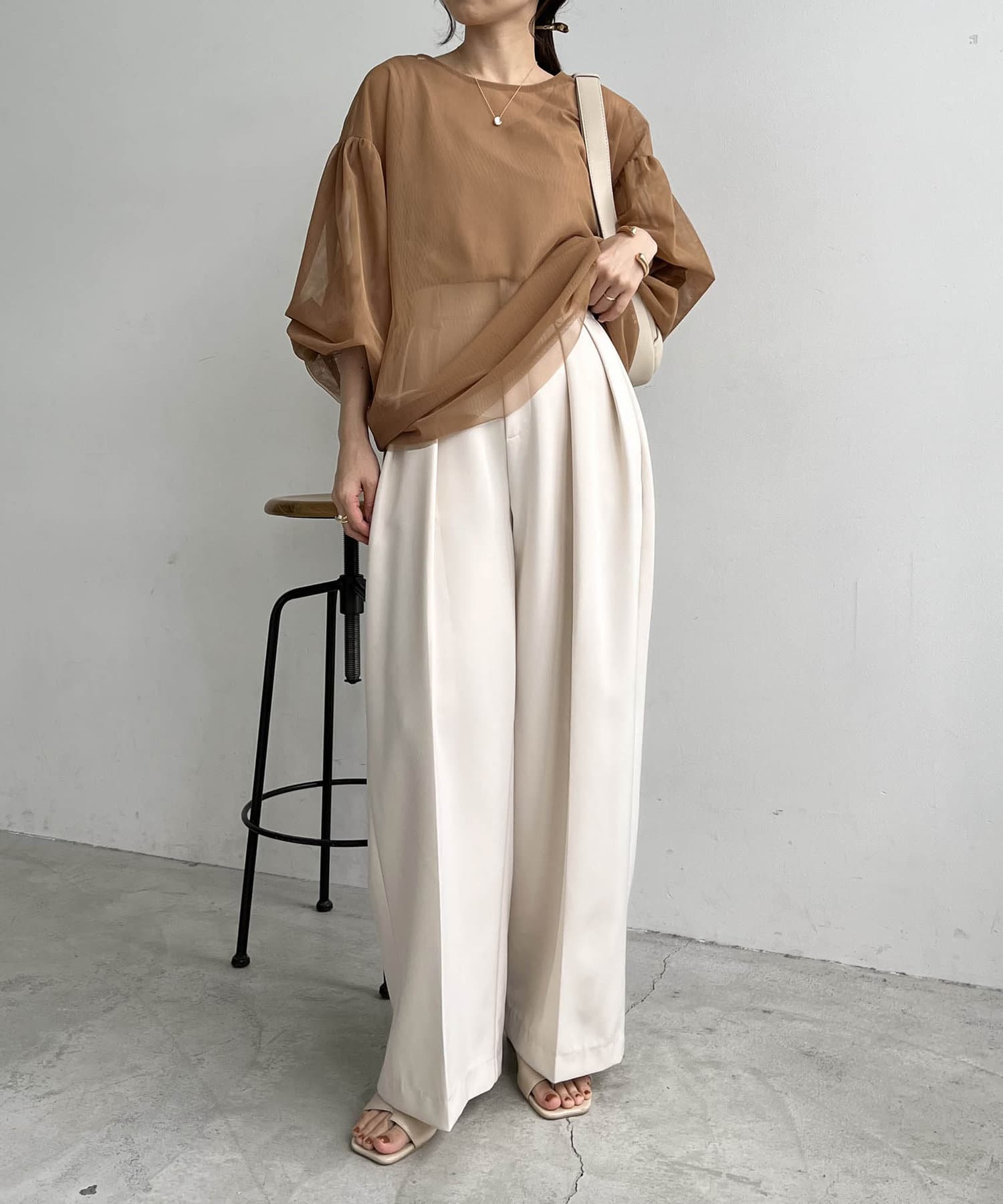 ・ドロップショルダーでそこからボリュームスリーブに広がるシルエット