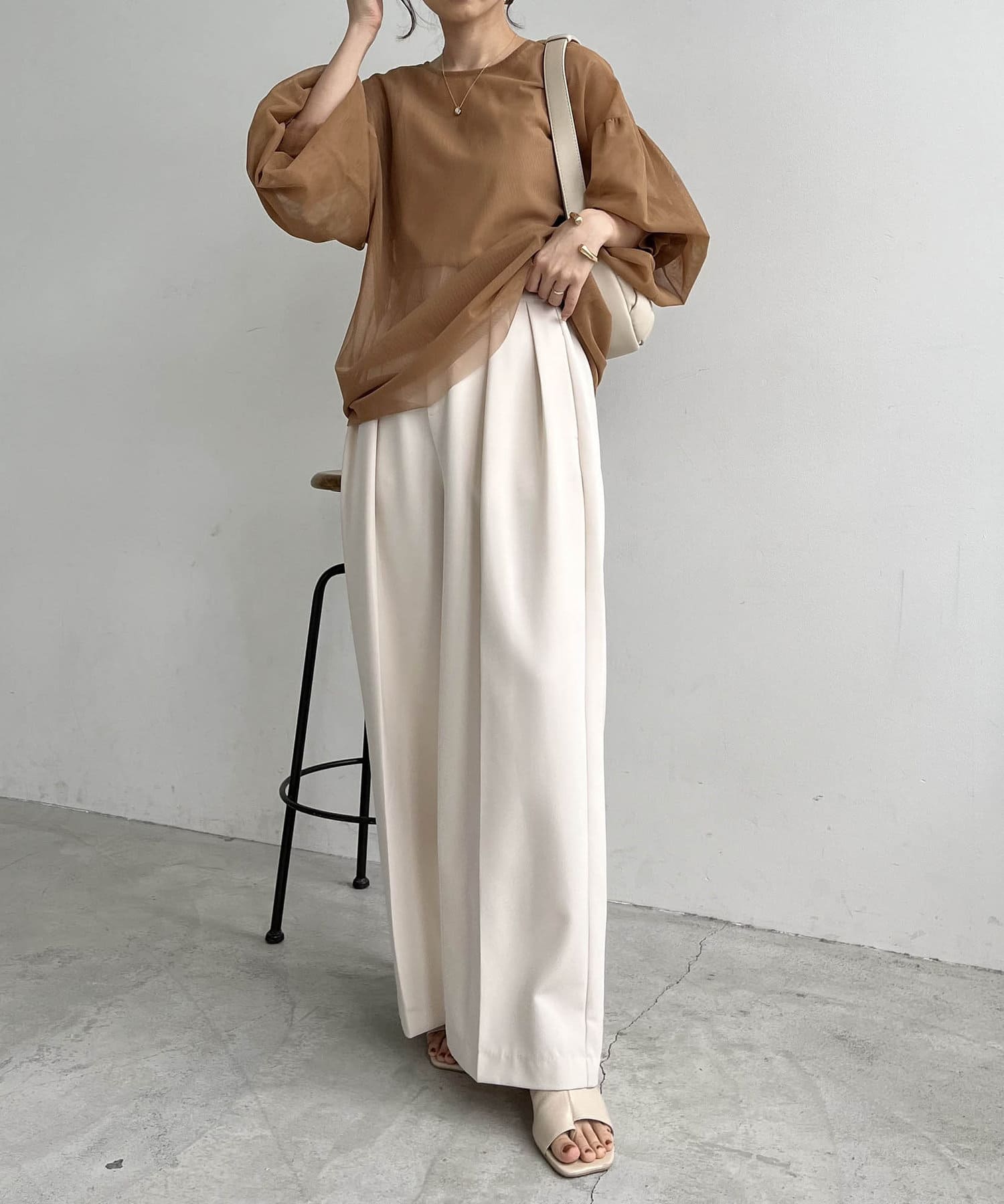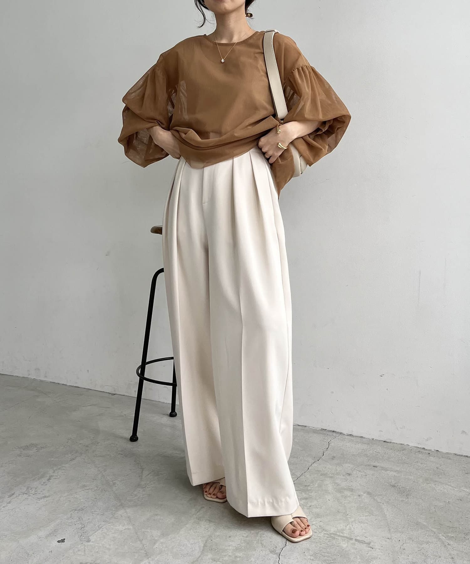 透け感はブラウンで2重なのと付属のインナーのおかげで透けにくいです!