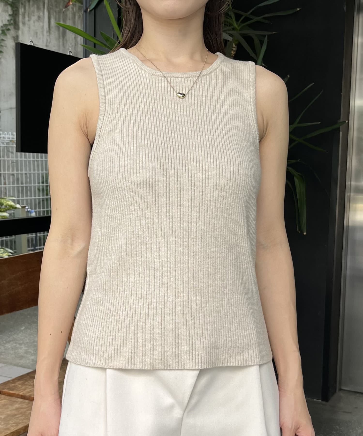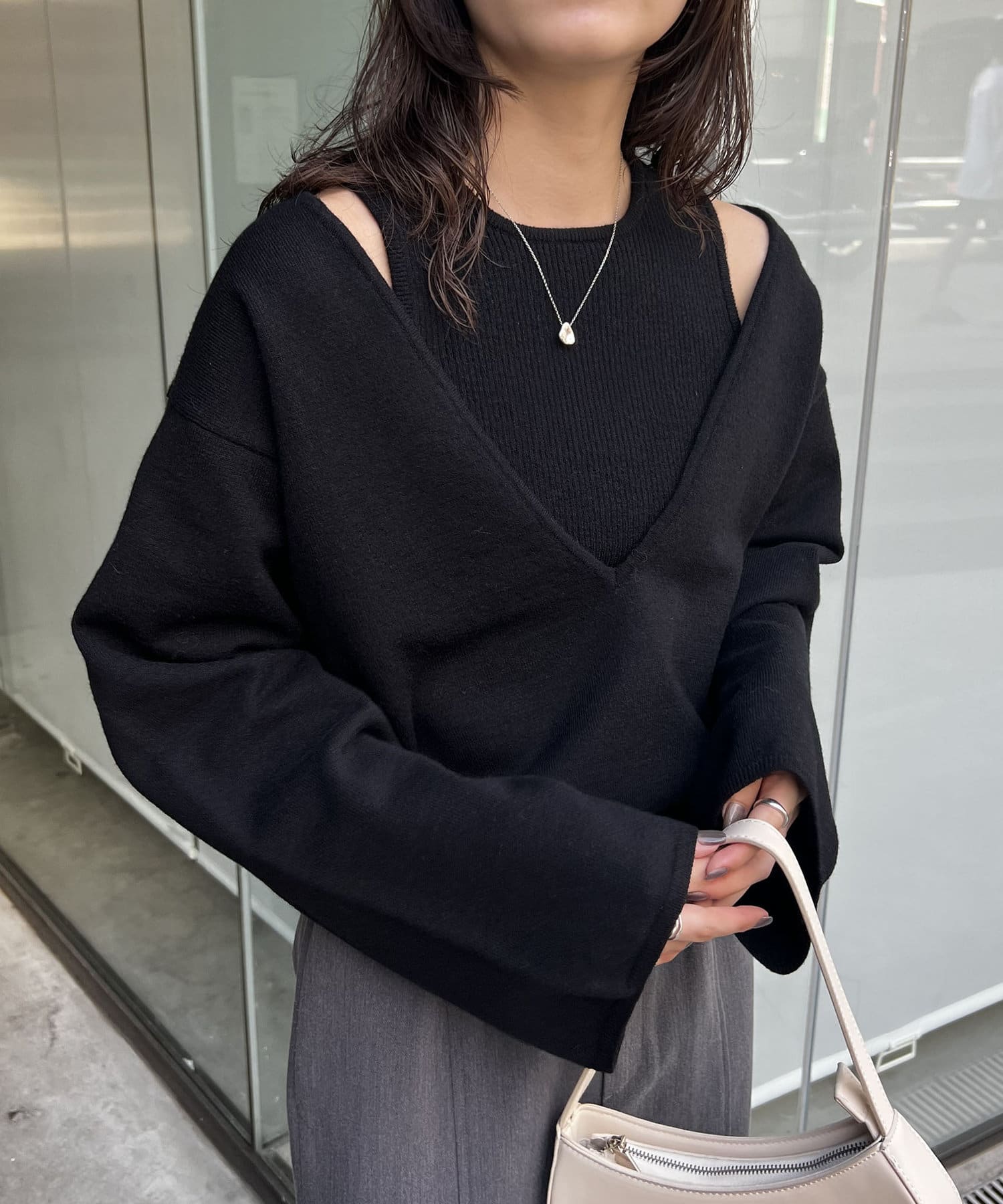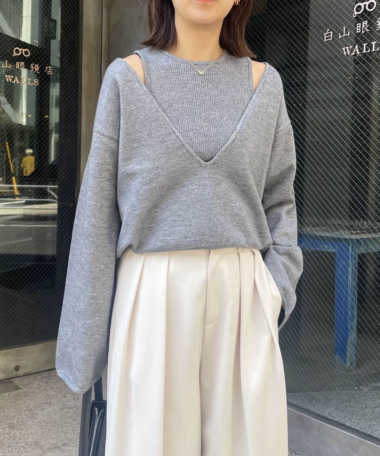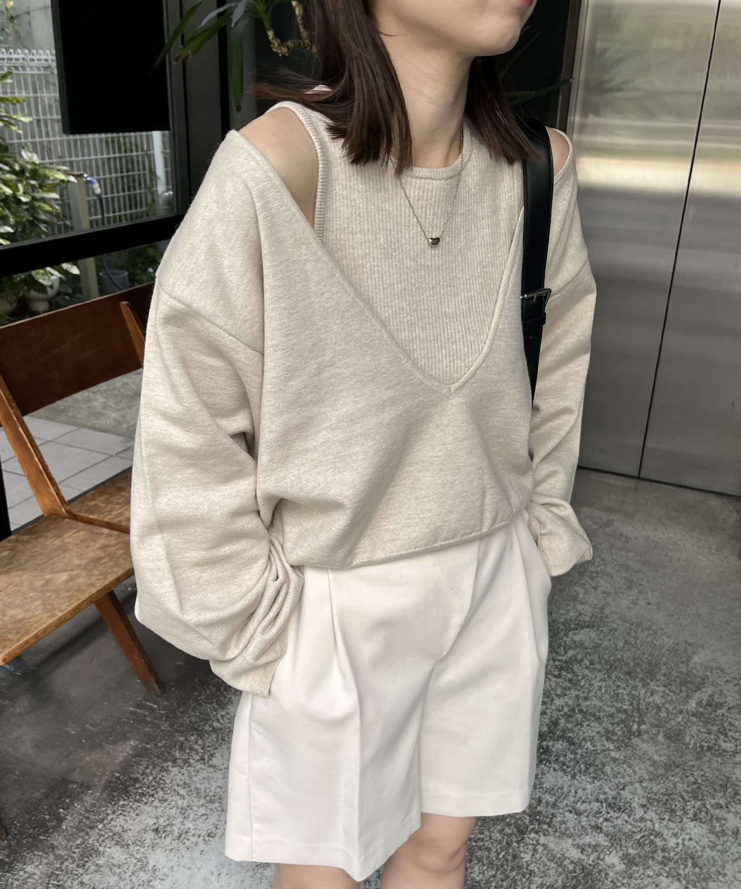 ・タンクトップとニットはボタンで留められ、ずり落ちてこない仕様に