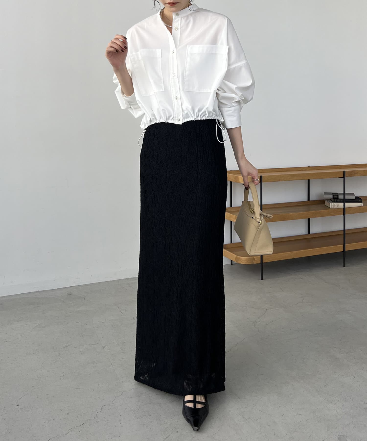 ・広がりのないすっきりとしたラインのマキシスカート
