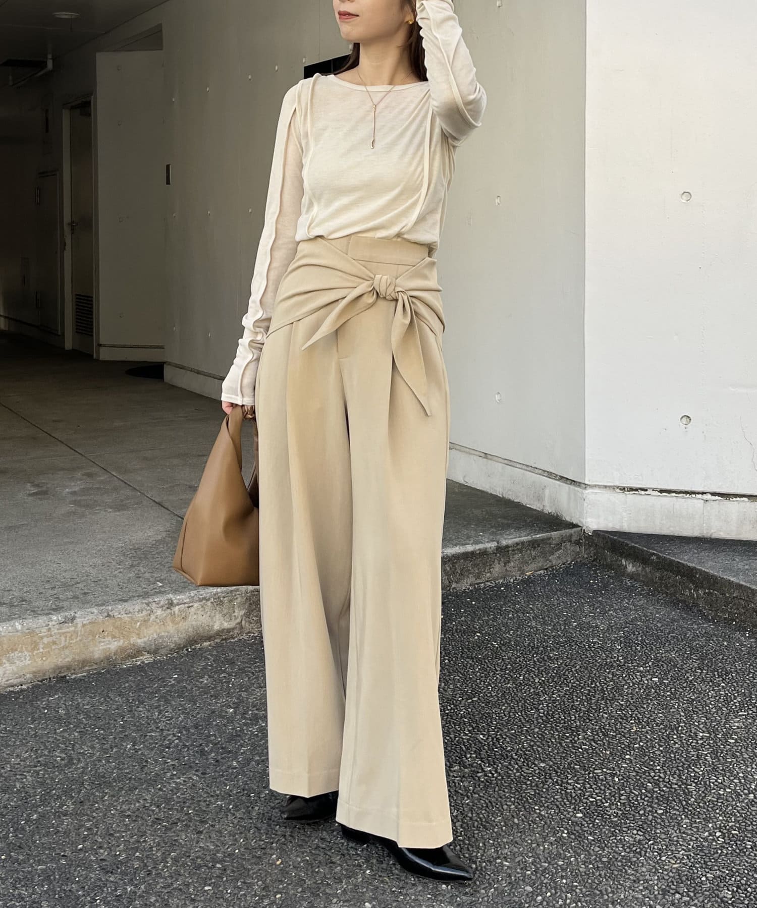 パンツと同素材のスカーフがセットになったアレンジができるアイテム
