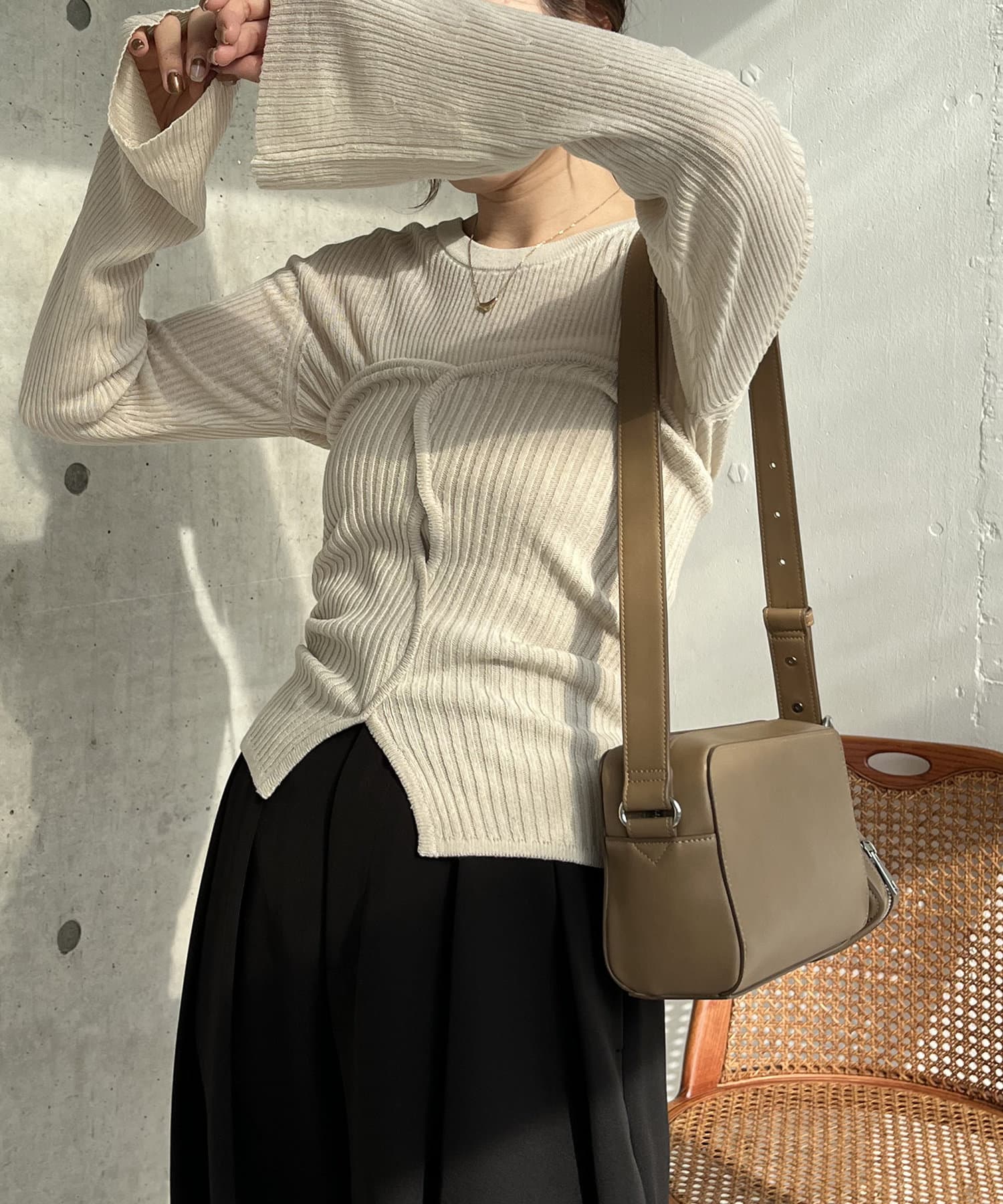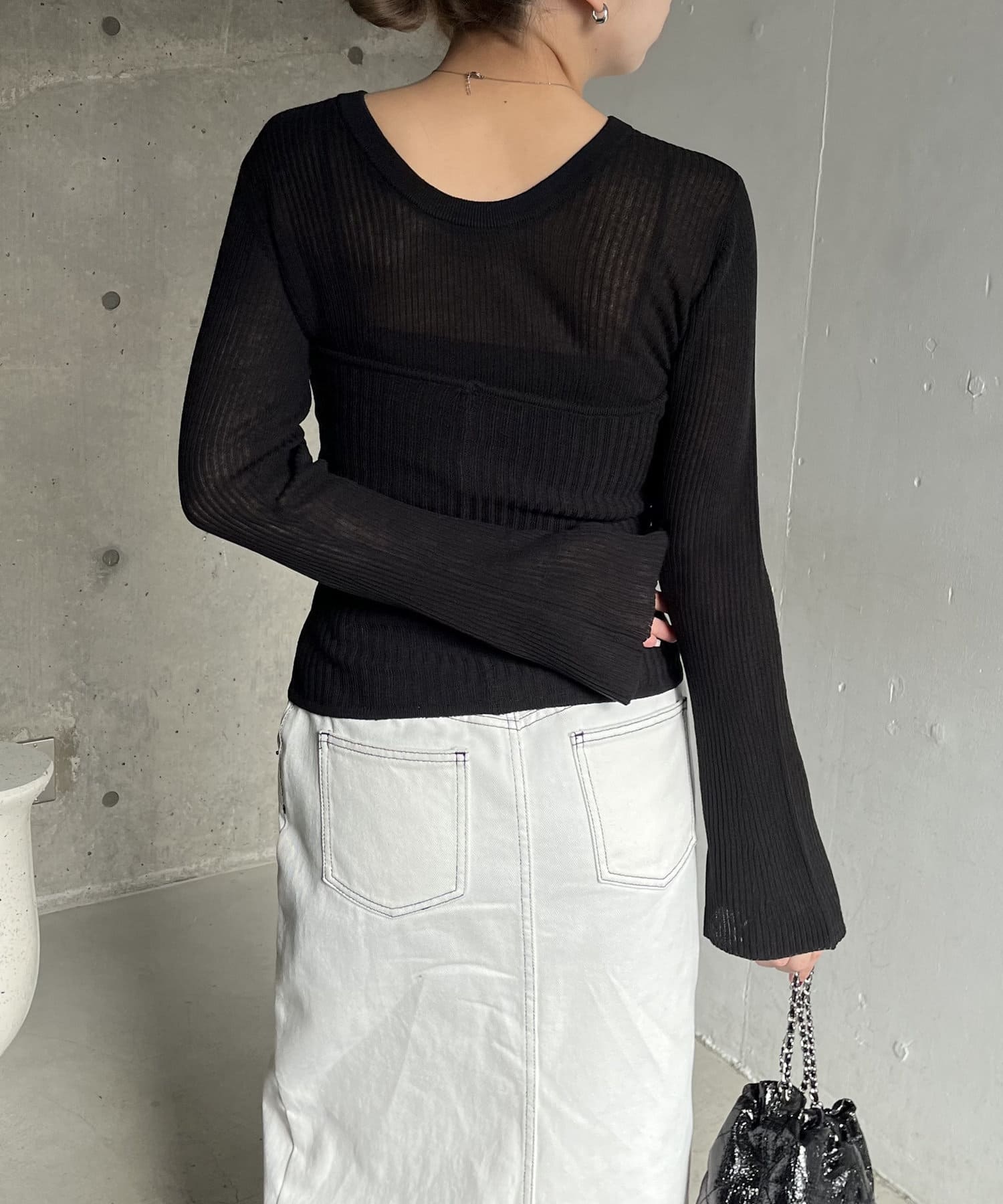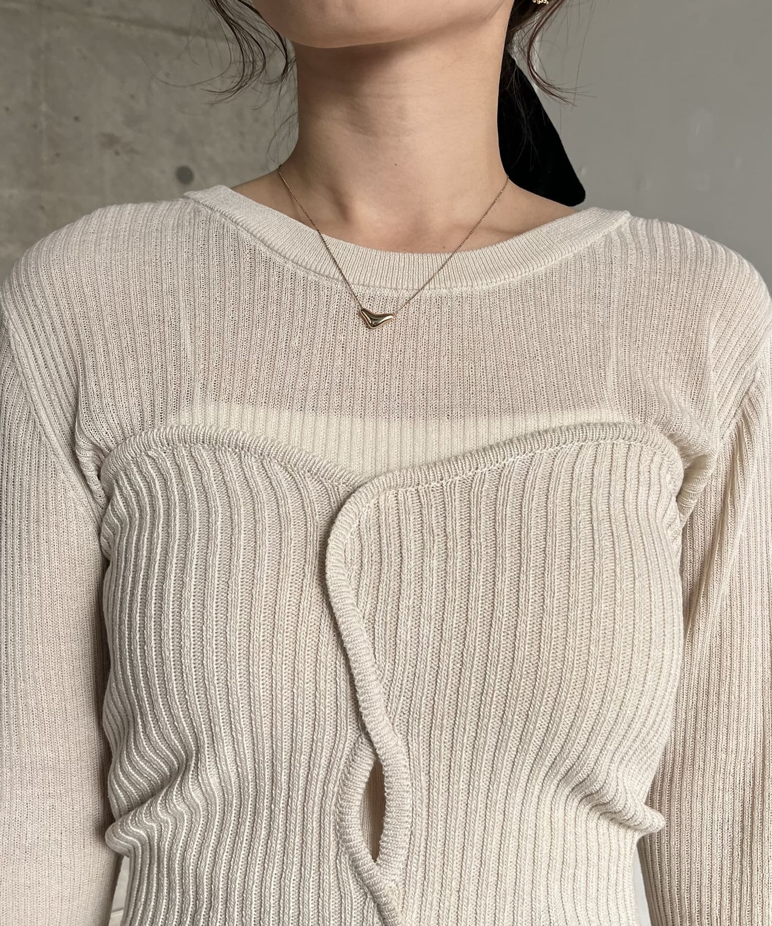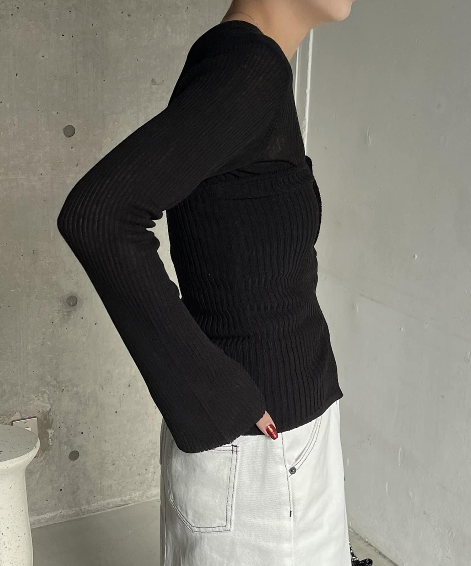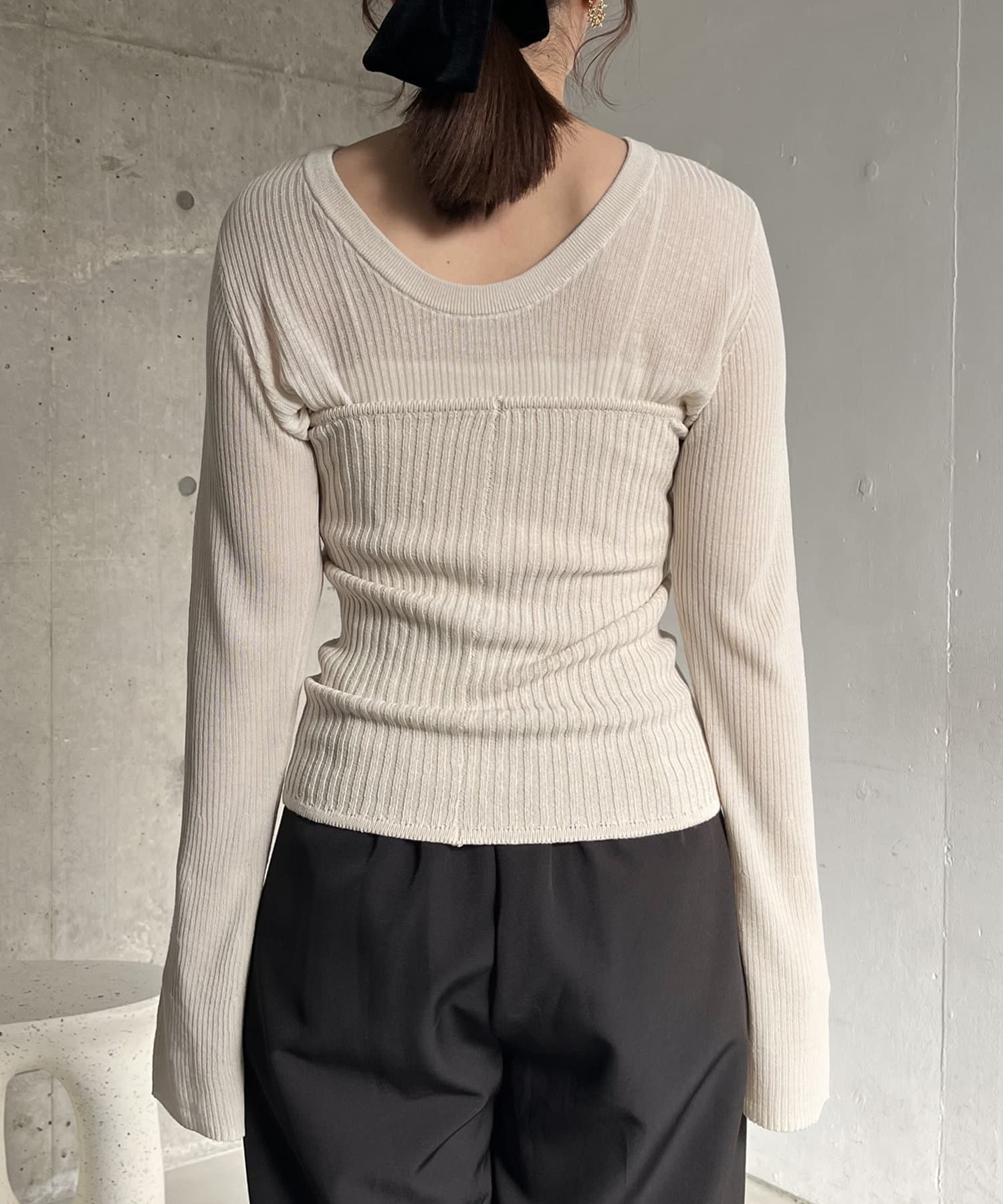 ・太リブのビスチェとシアーニットがセットになったお得なデザインニット