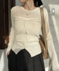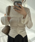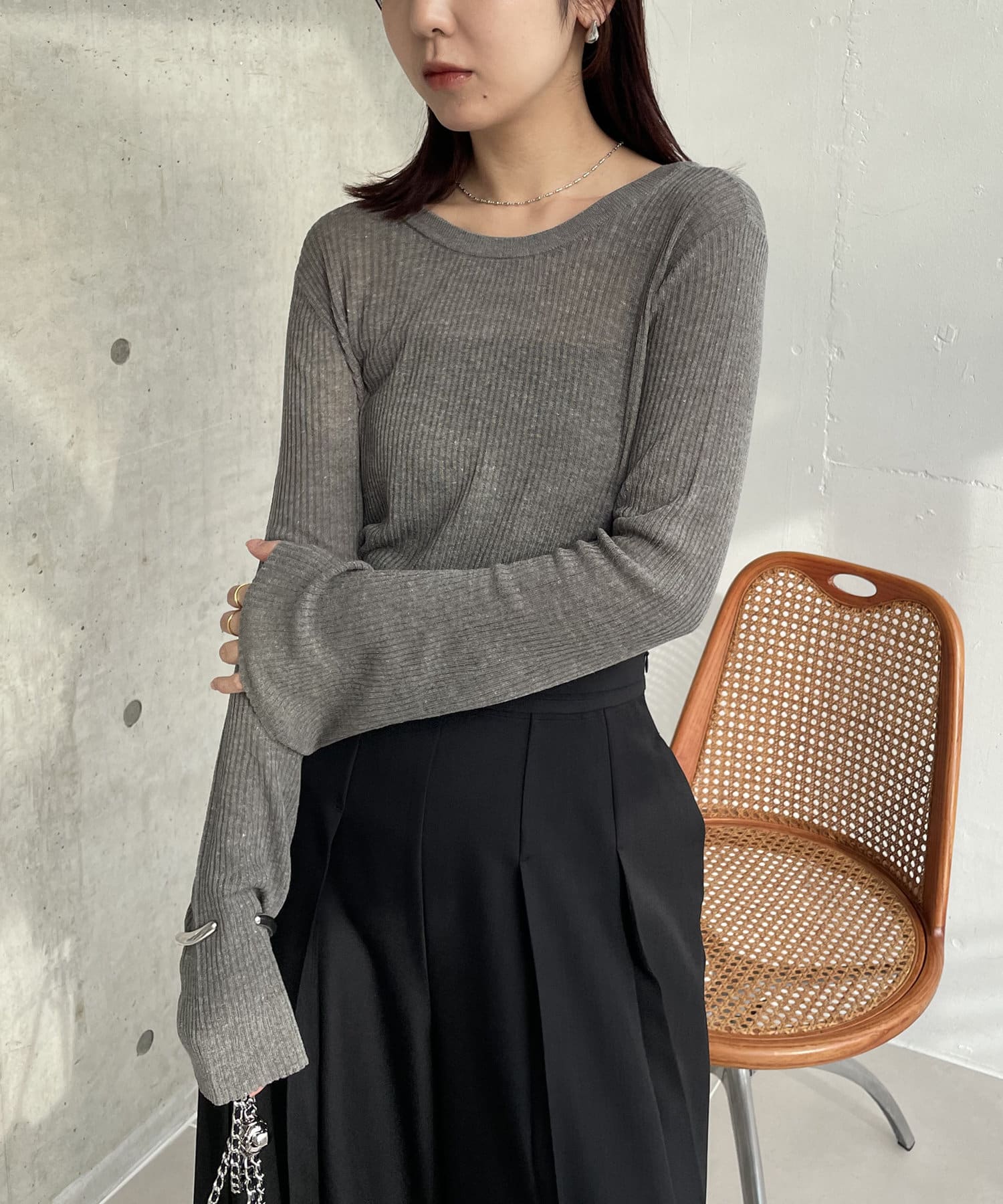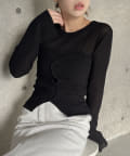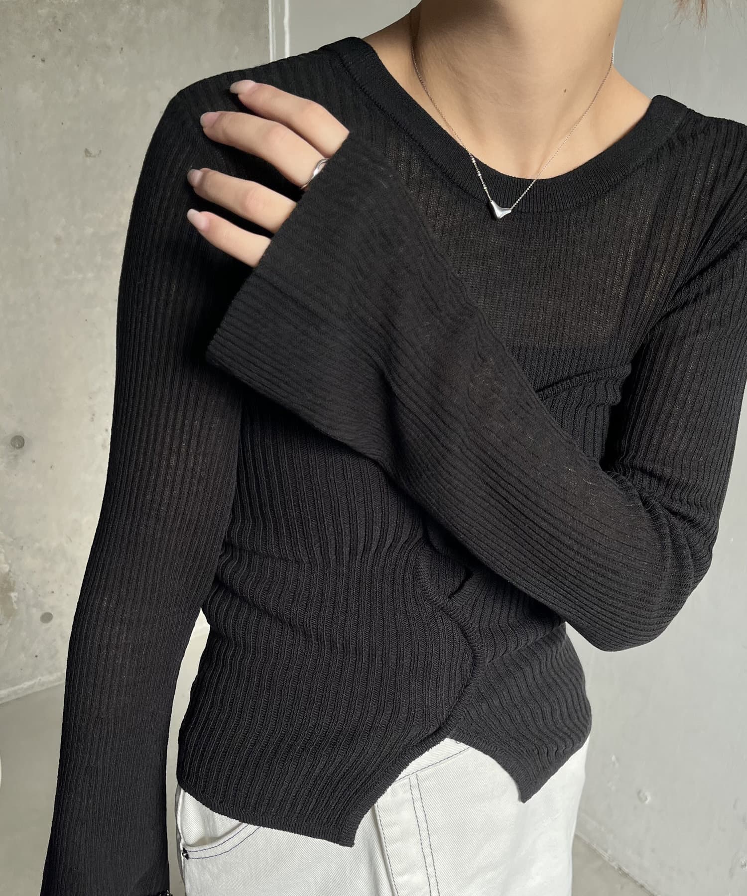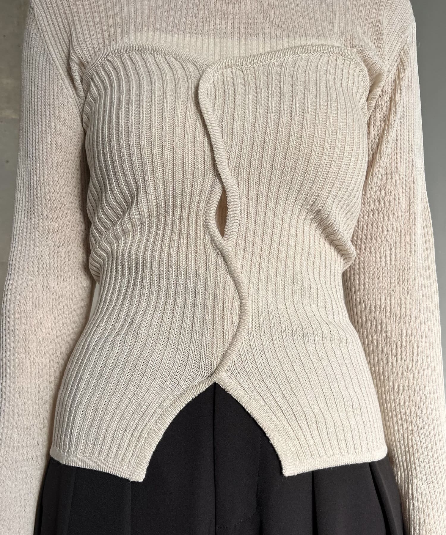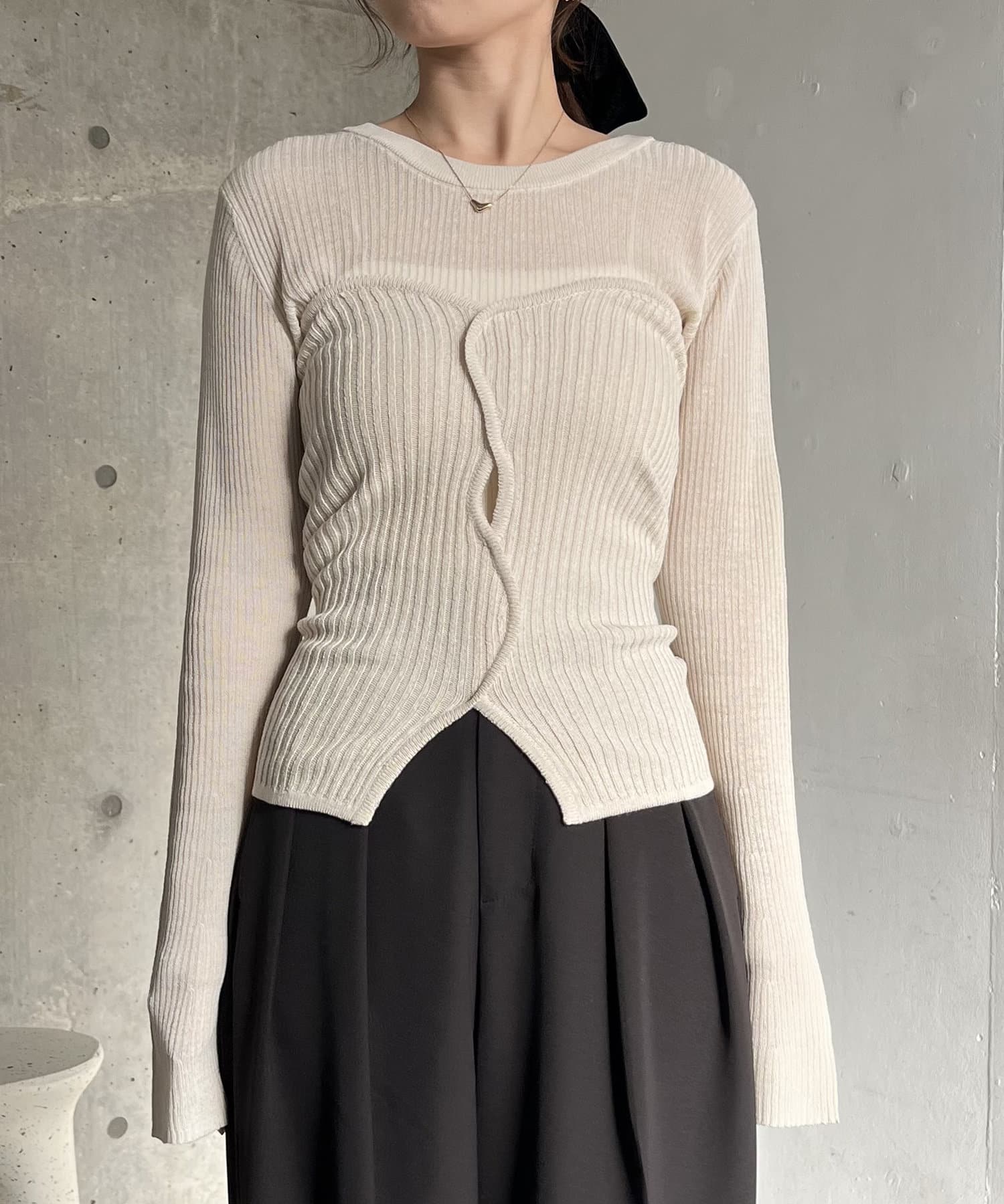 ・太リブのビスチェとシアーニットがセットになったお得なデザインニット