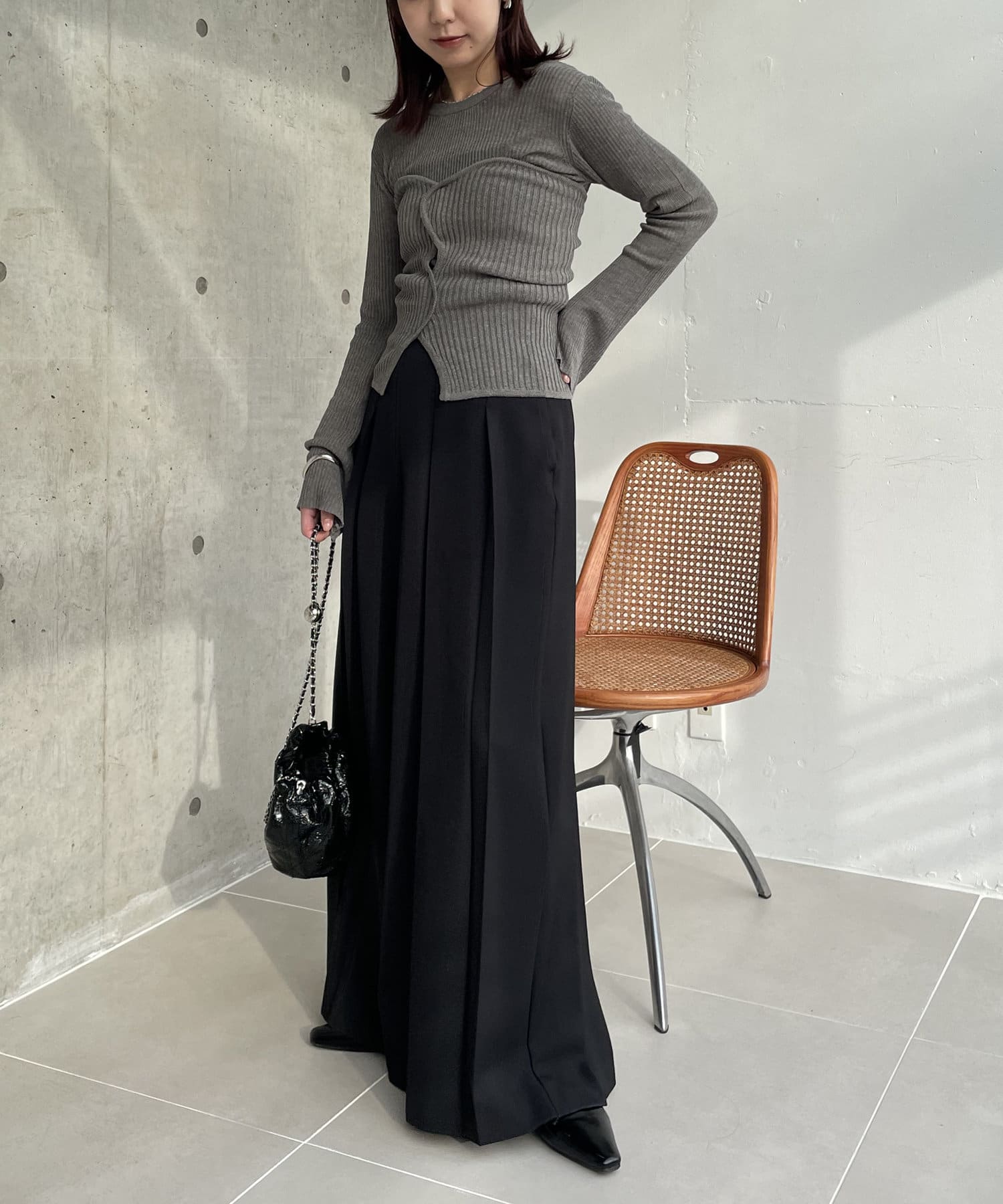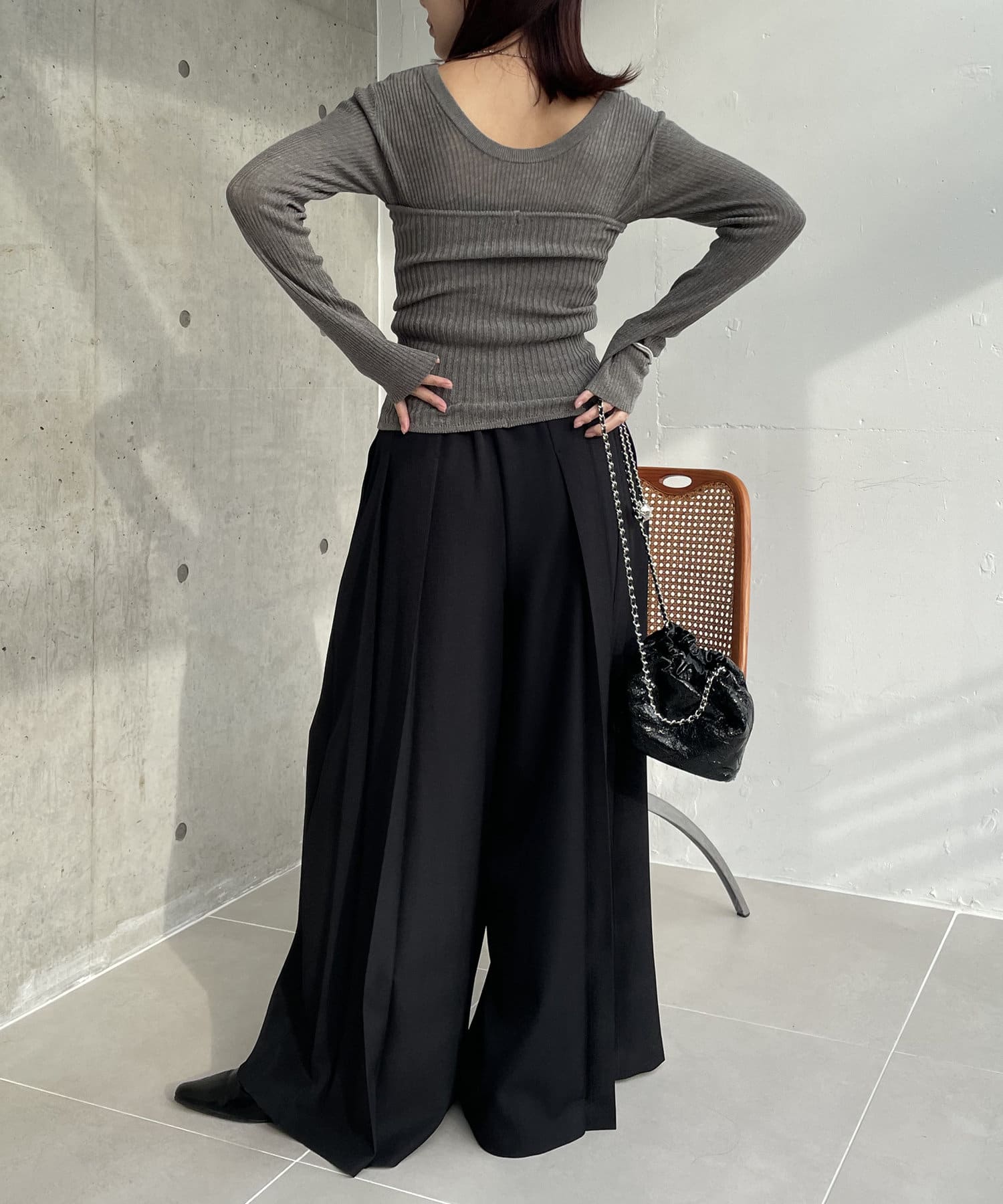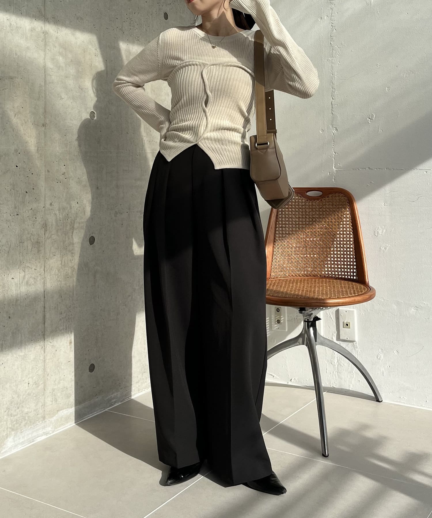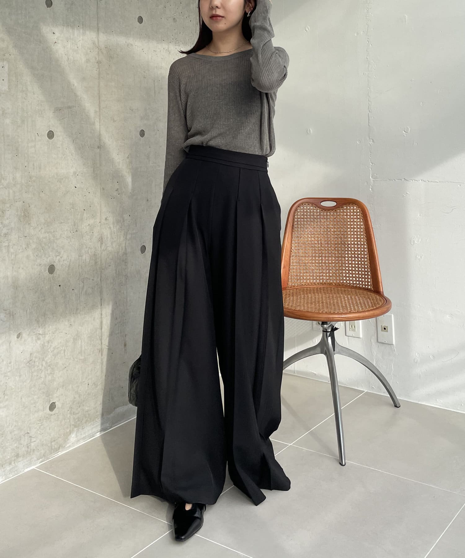 ・ワイドパンツに合わせてメリハリのあるスタイリングに