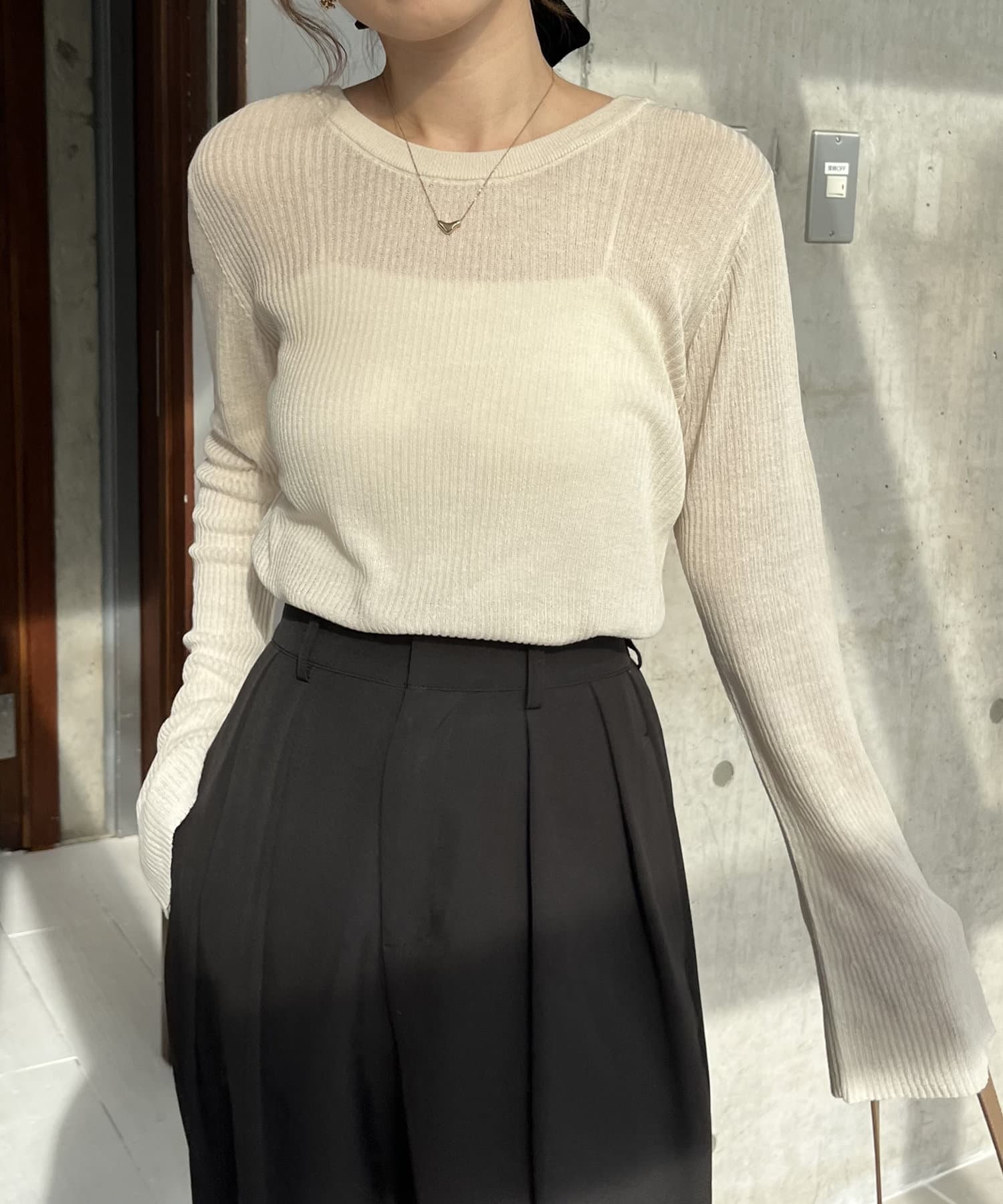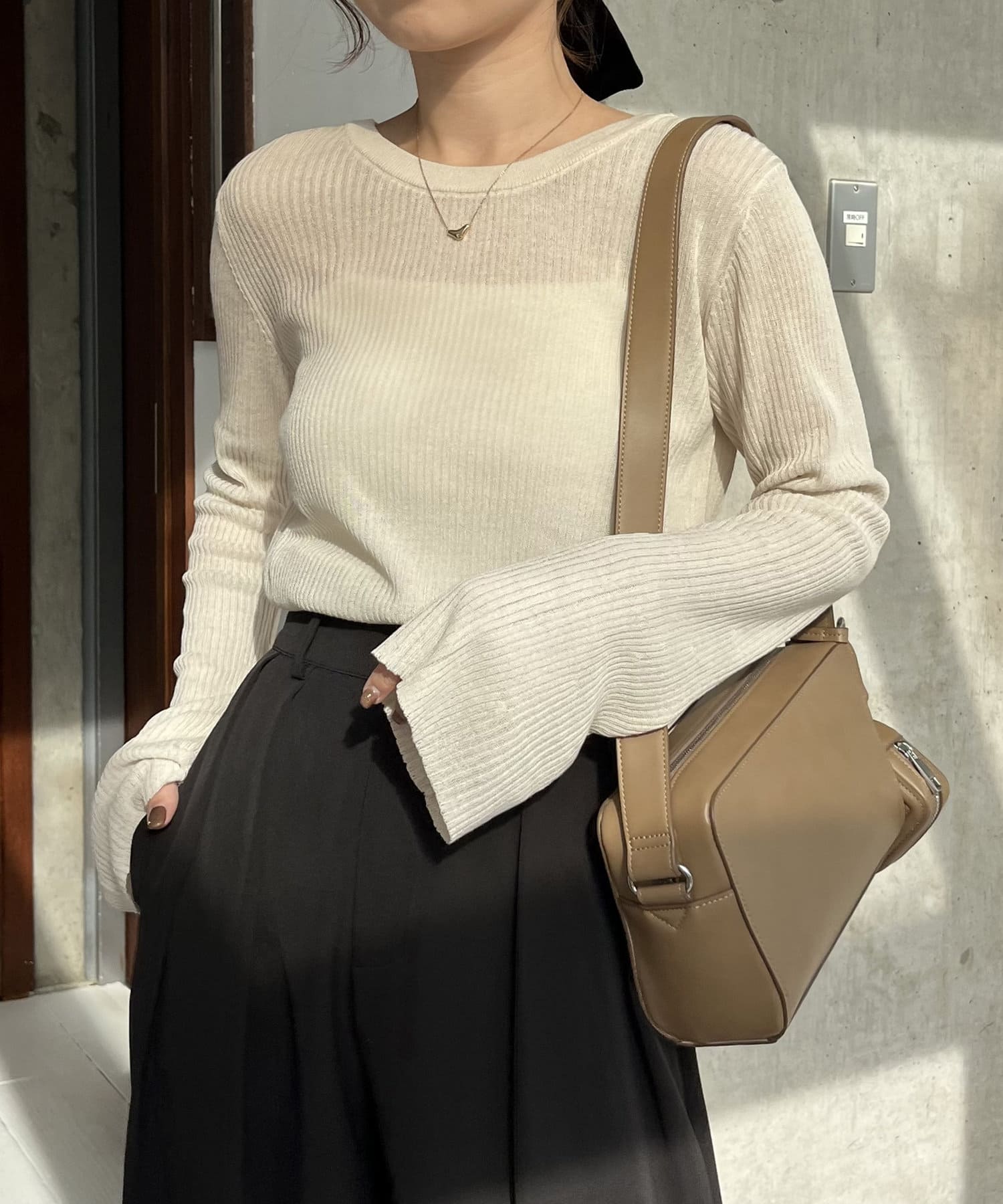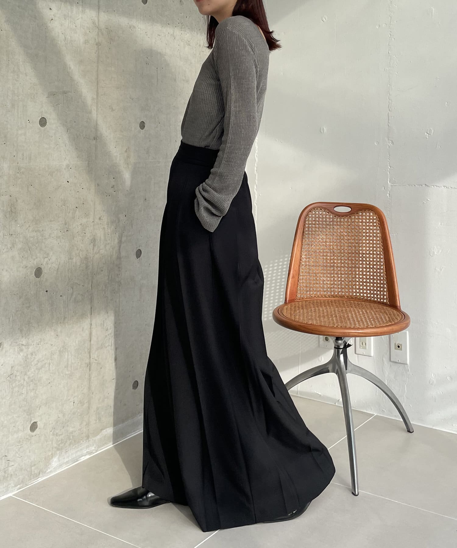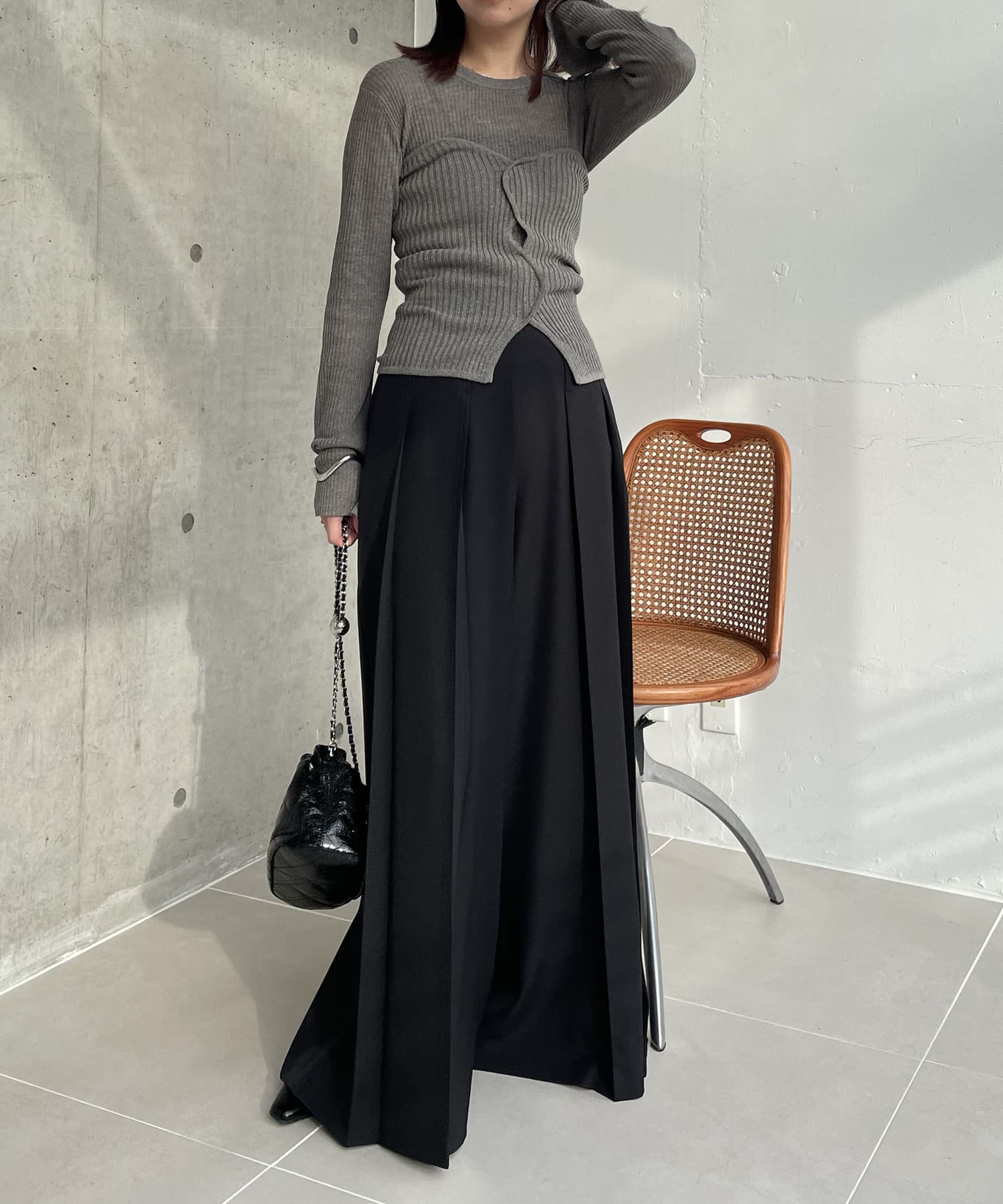 ・ワイドパンツに合わせてメリハリのあるスタイリングに