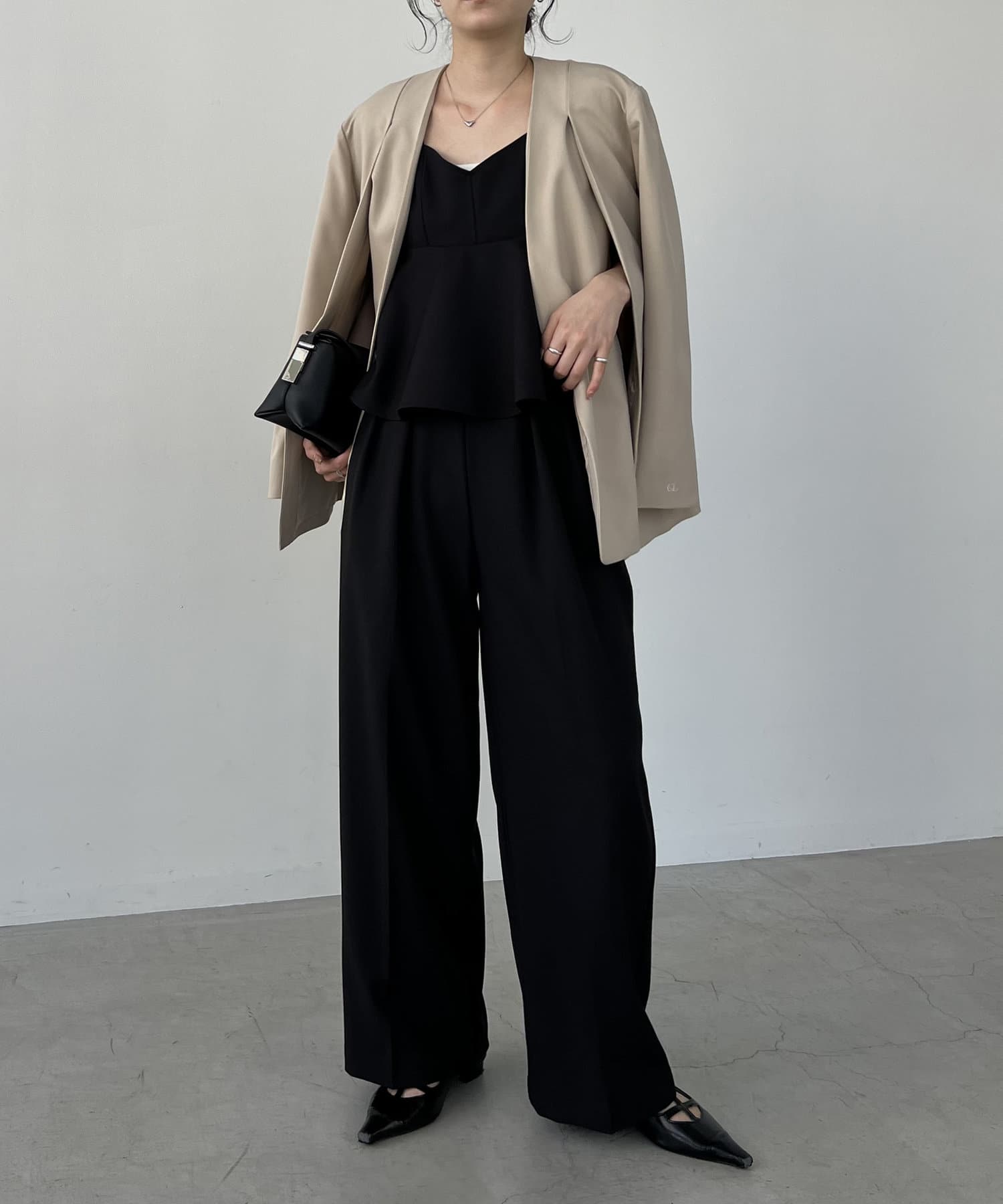 【ベージュ着用アイテム③】トップス:【C.L】ペプラムトップス パンツ:【C.L】マーベルトタックパンツ
