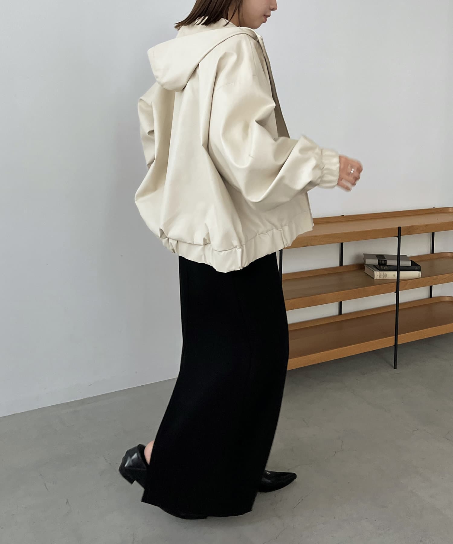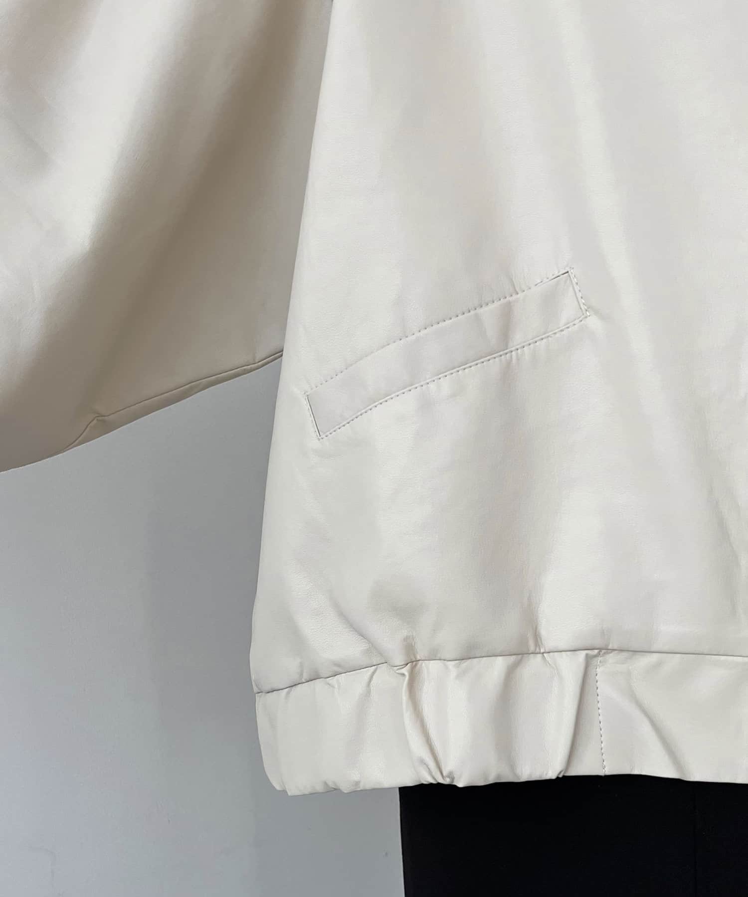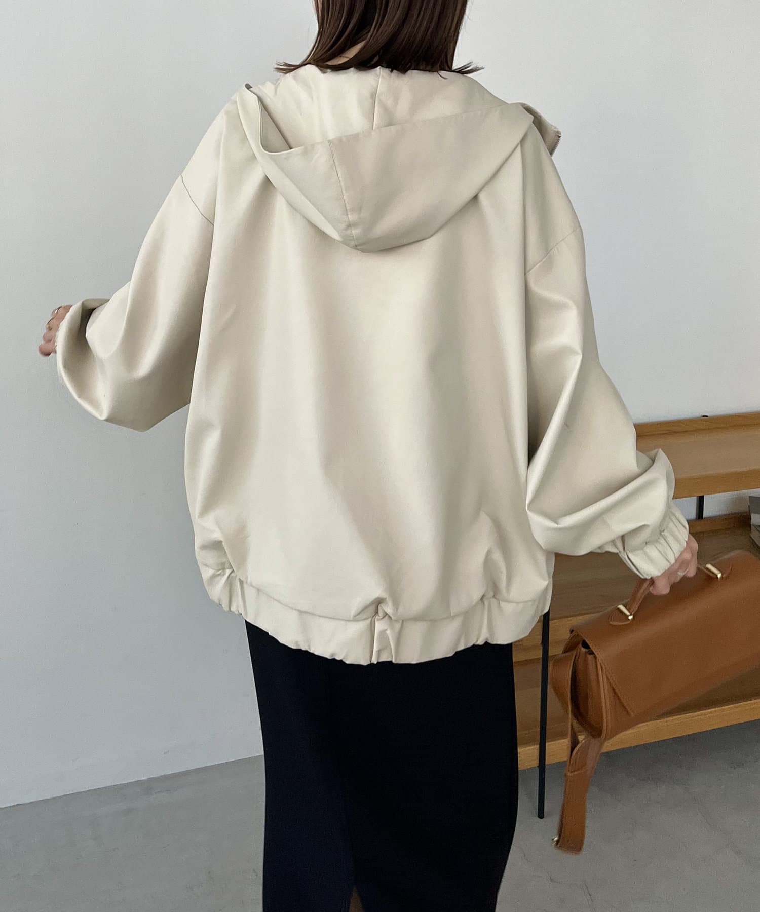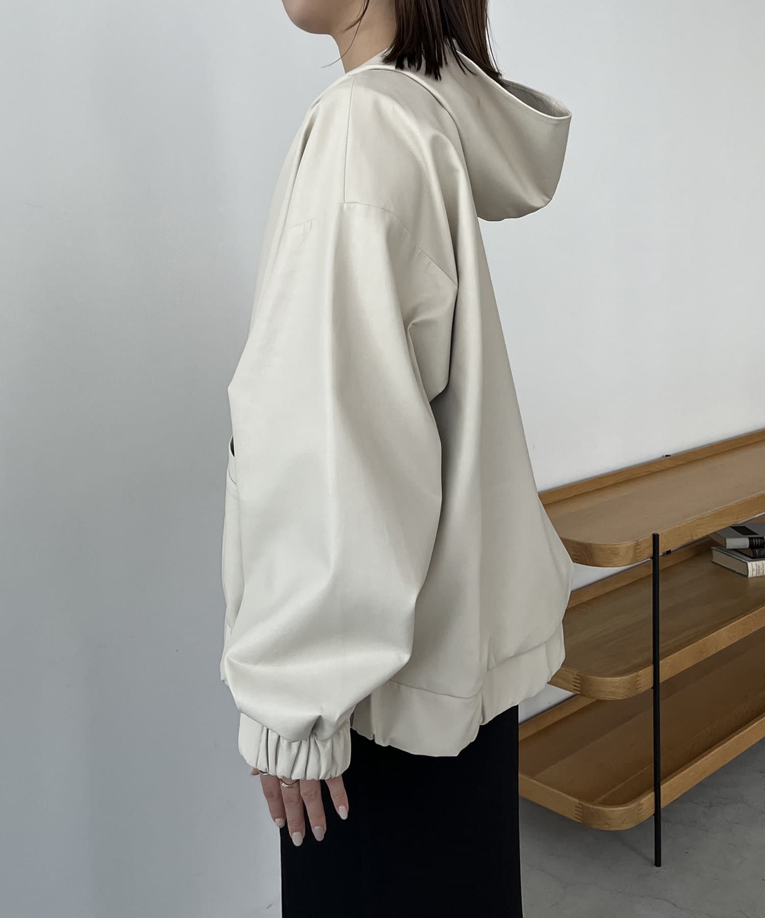 ・ラムレザーのような柔らかな質感の合皮を使用したフードジャケット