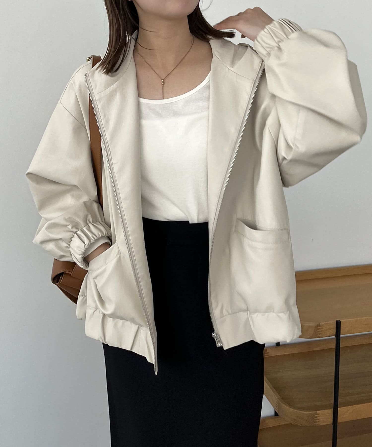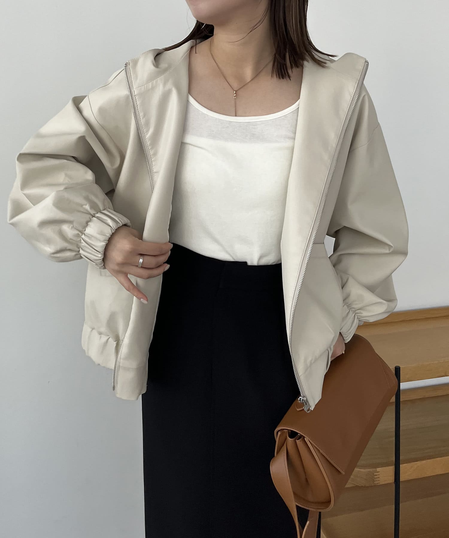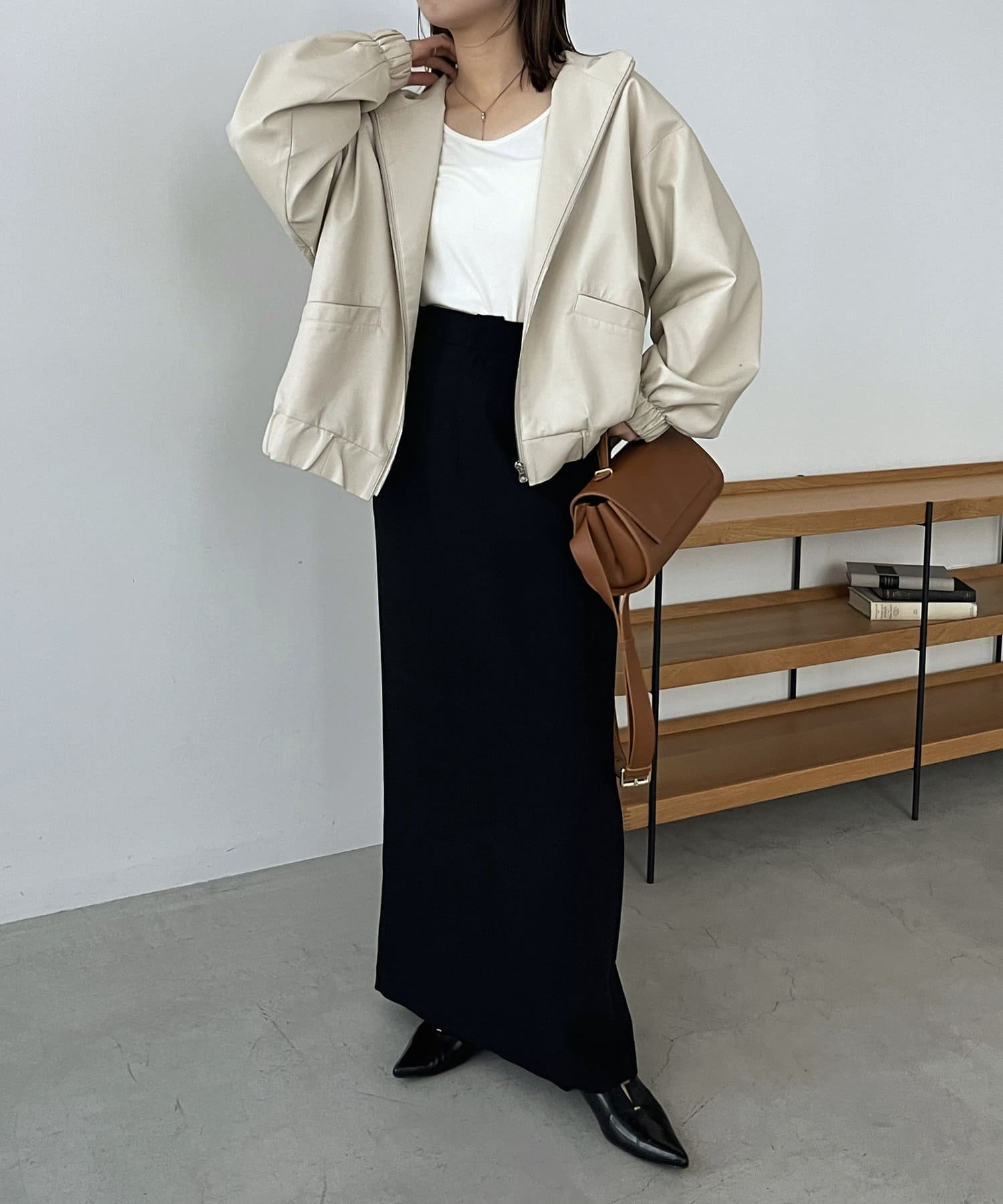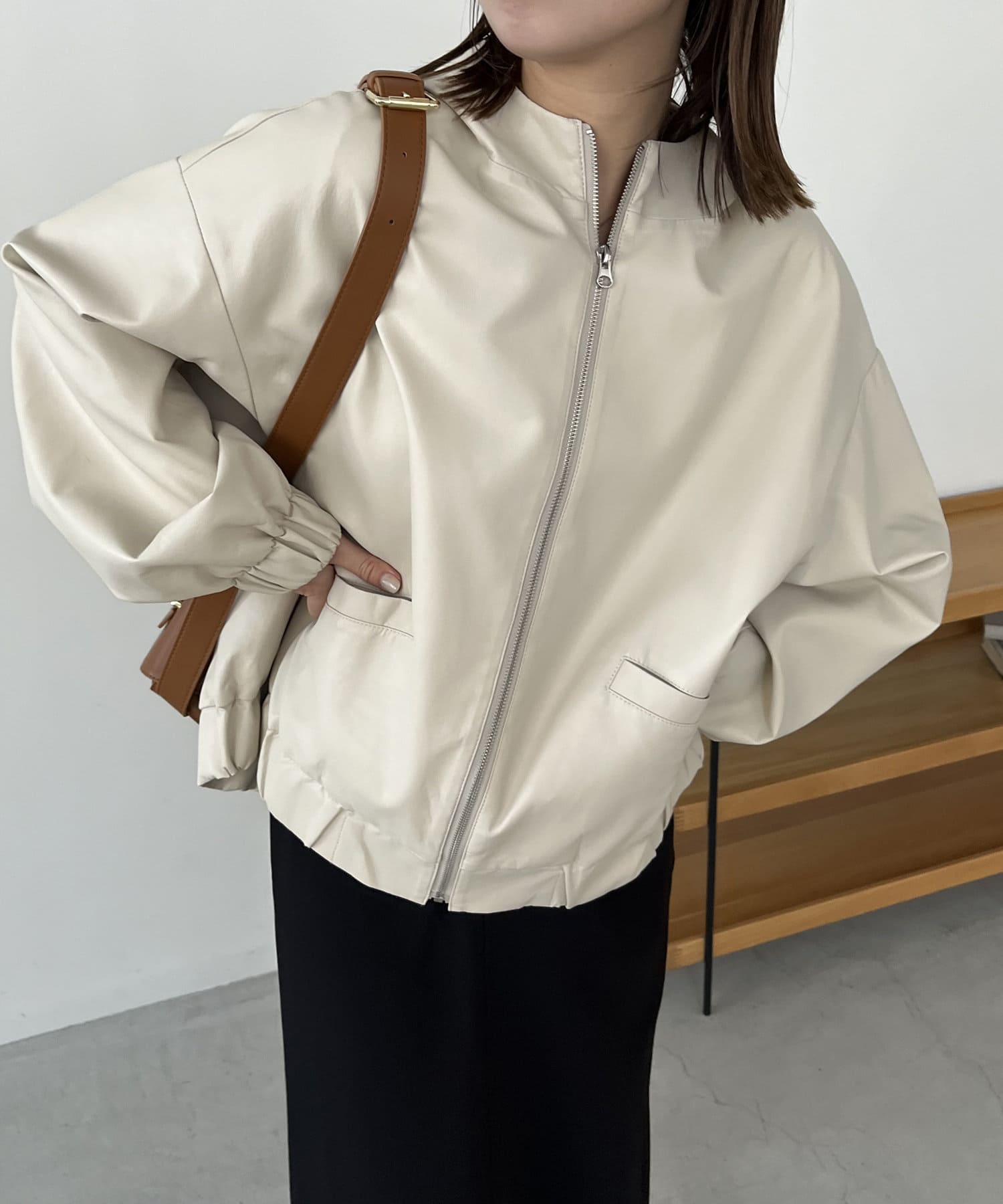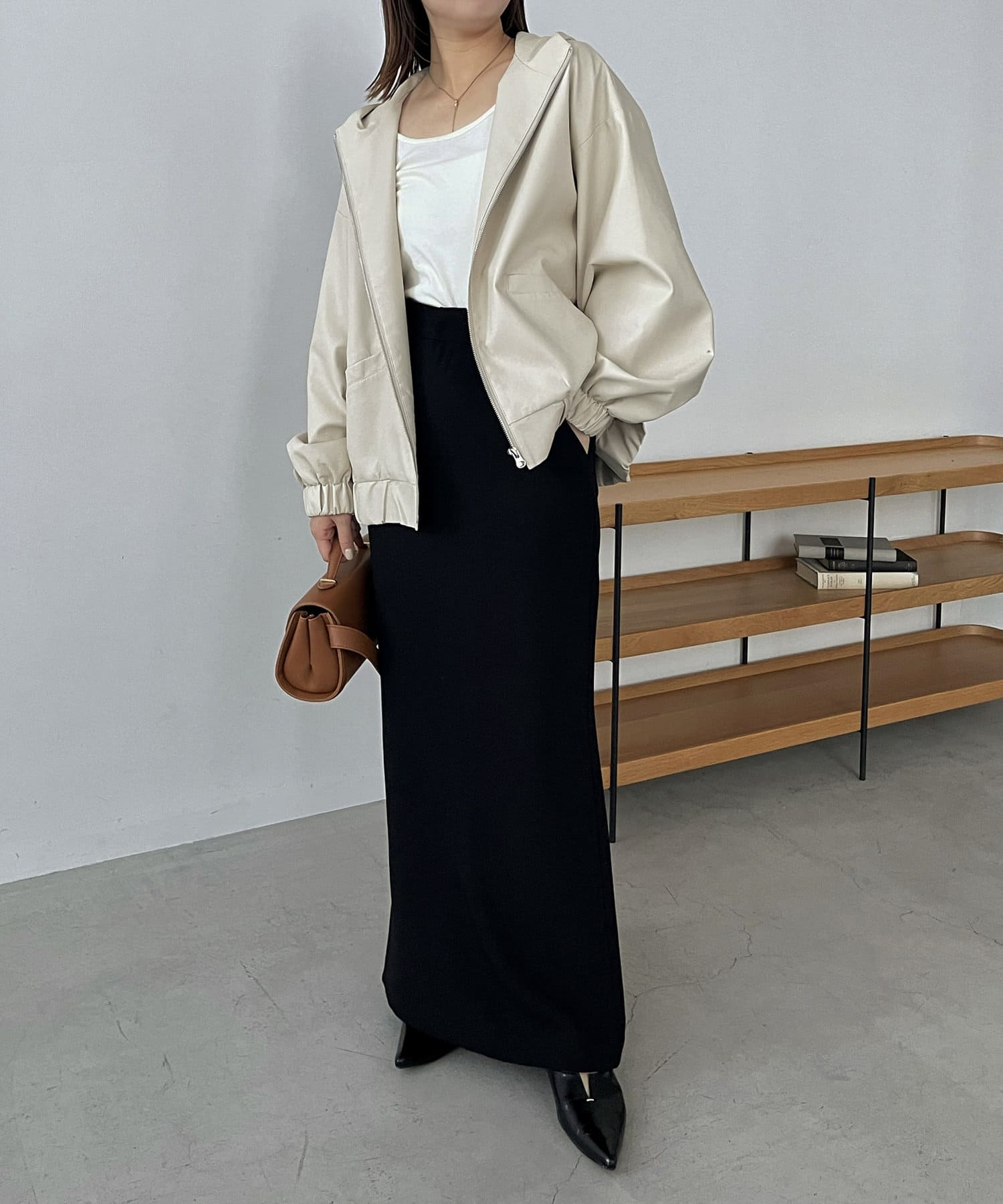 ・ハードになりがちな素材をカジュアルにかつ女性らしさもあるアイテムに