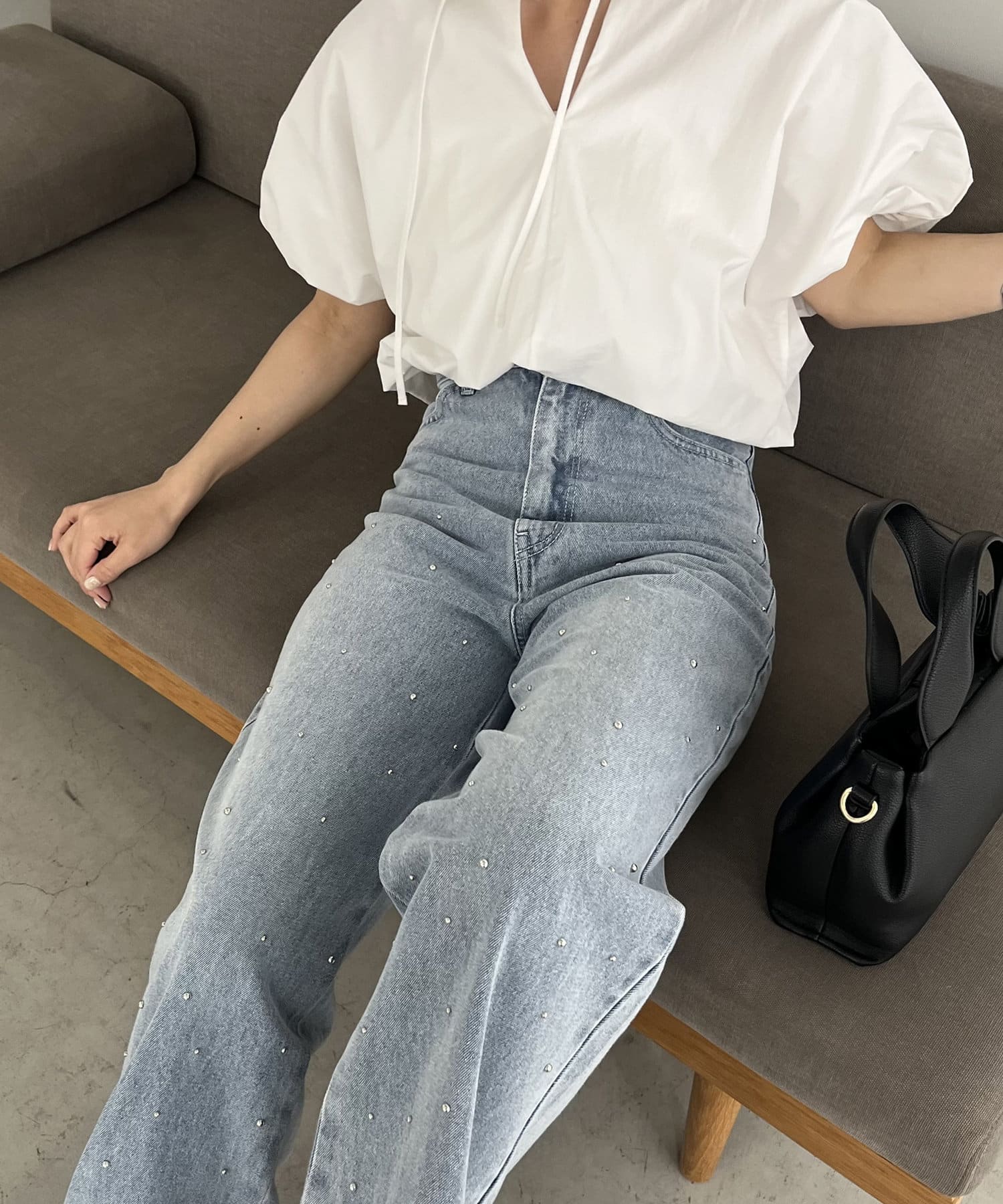 【ブルー着用アイテム①】バルーンリボンブラウス