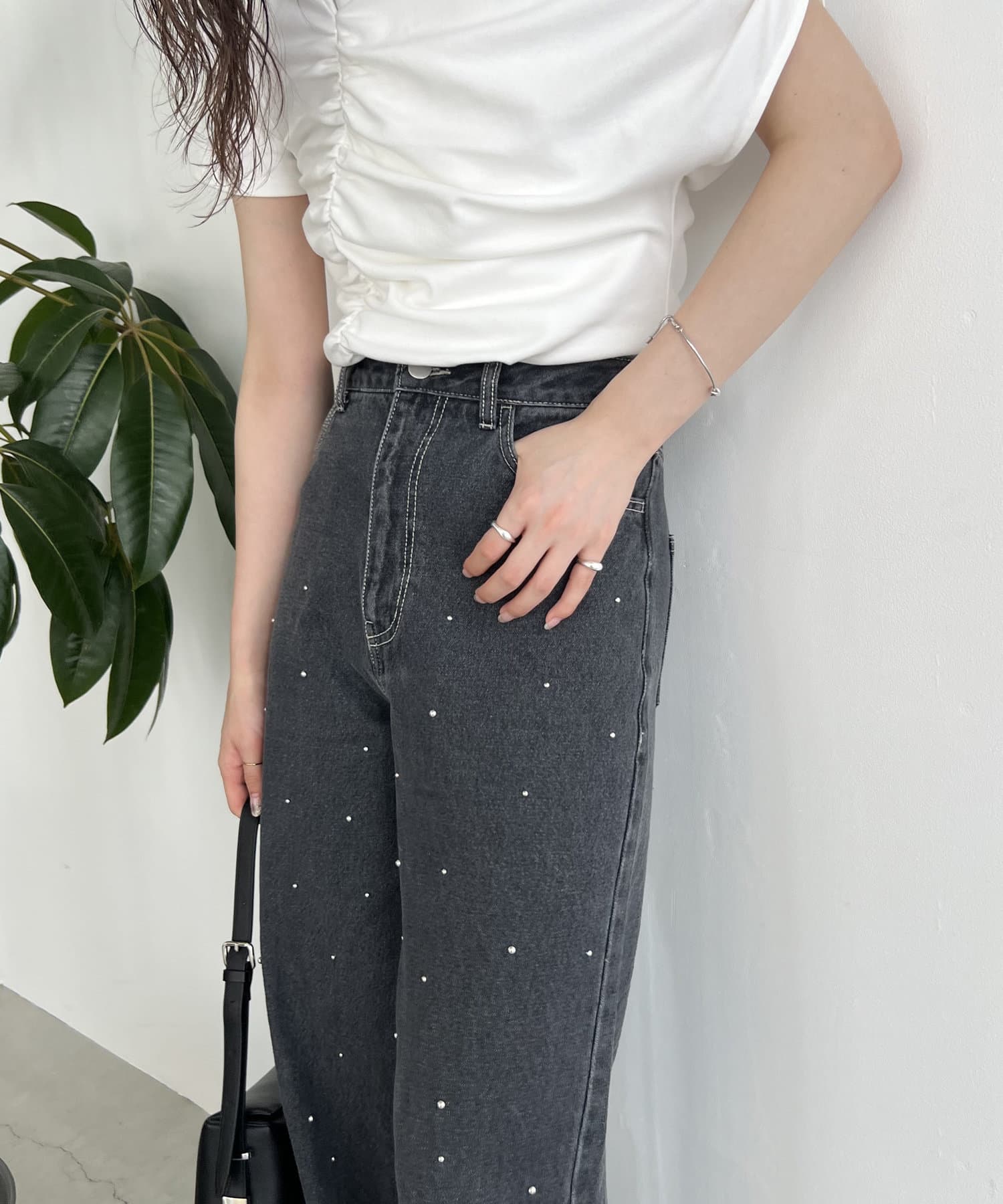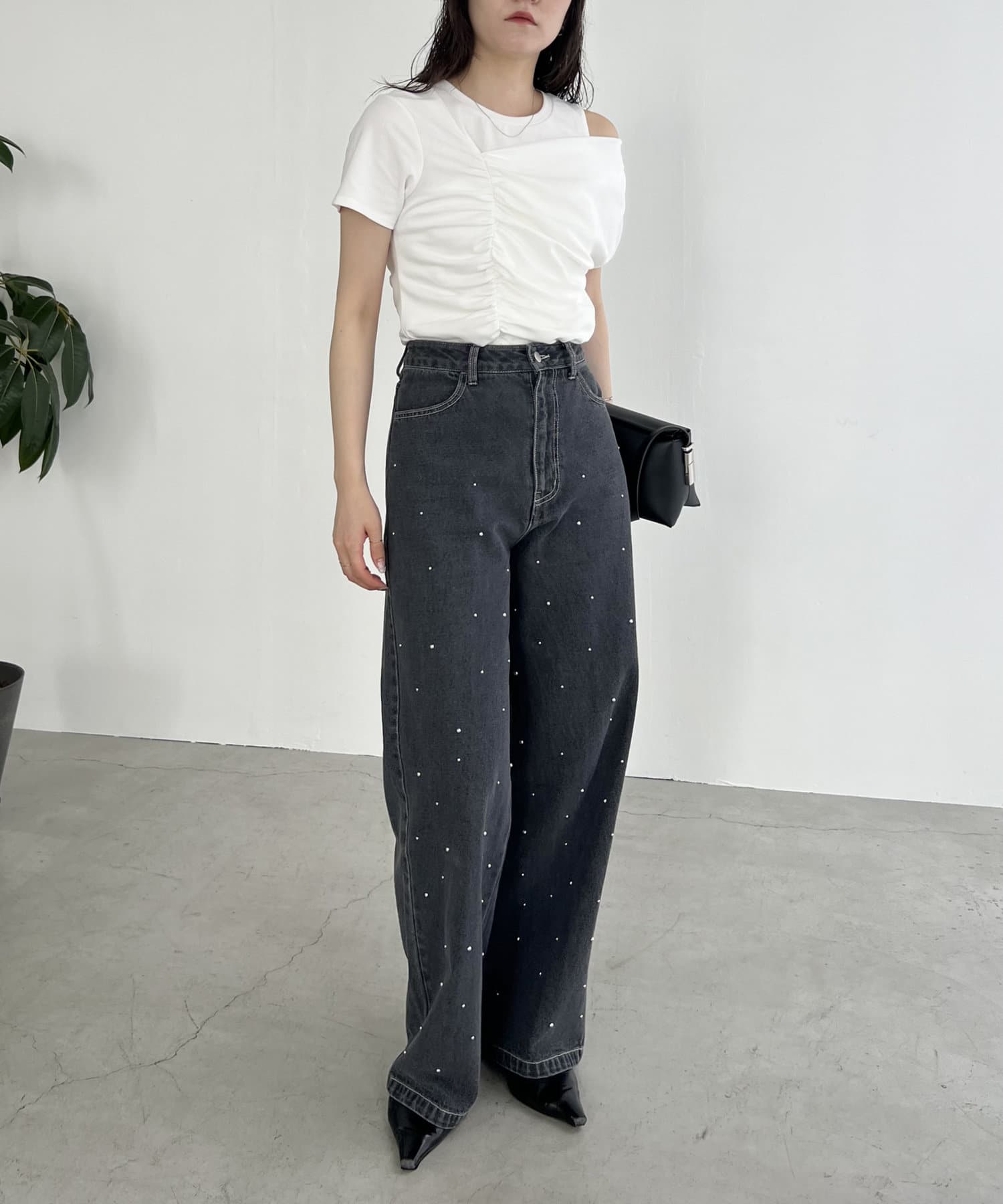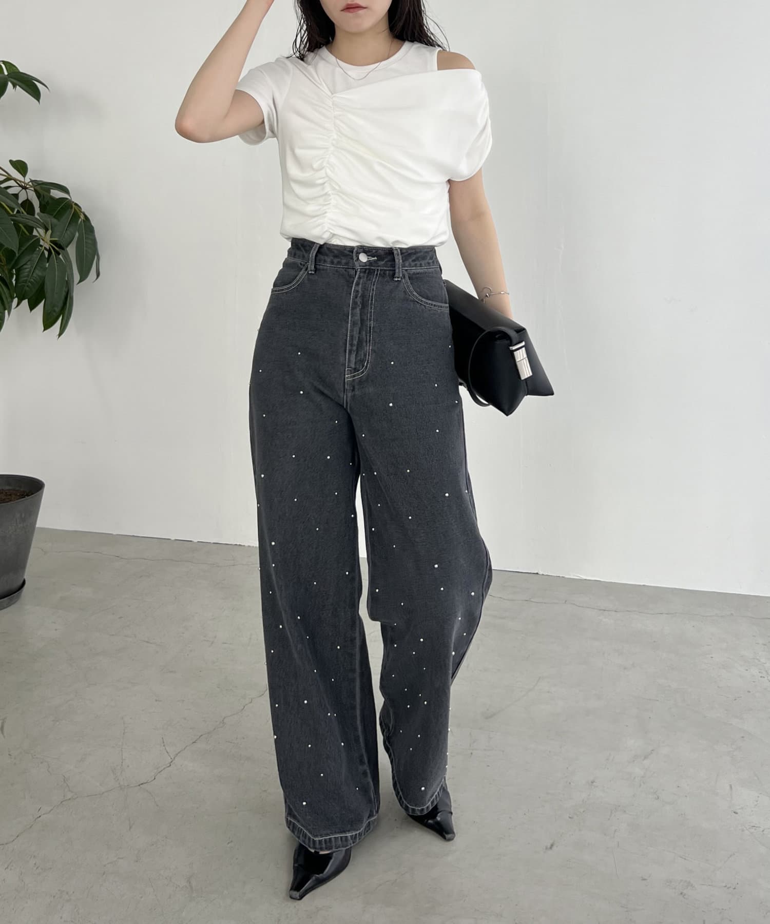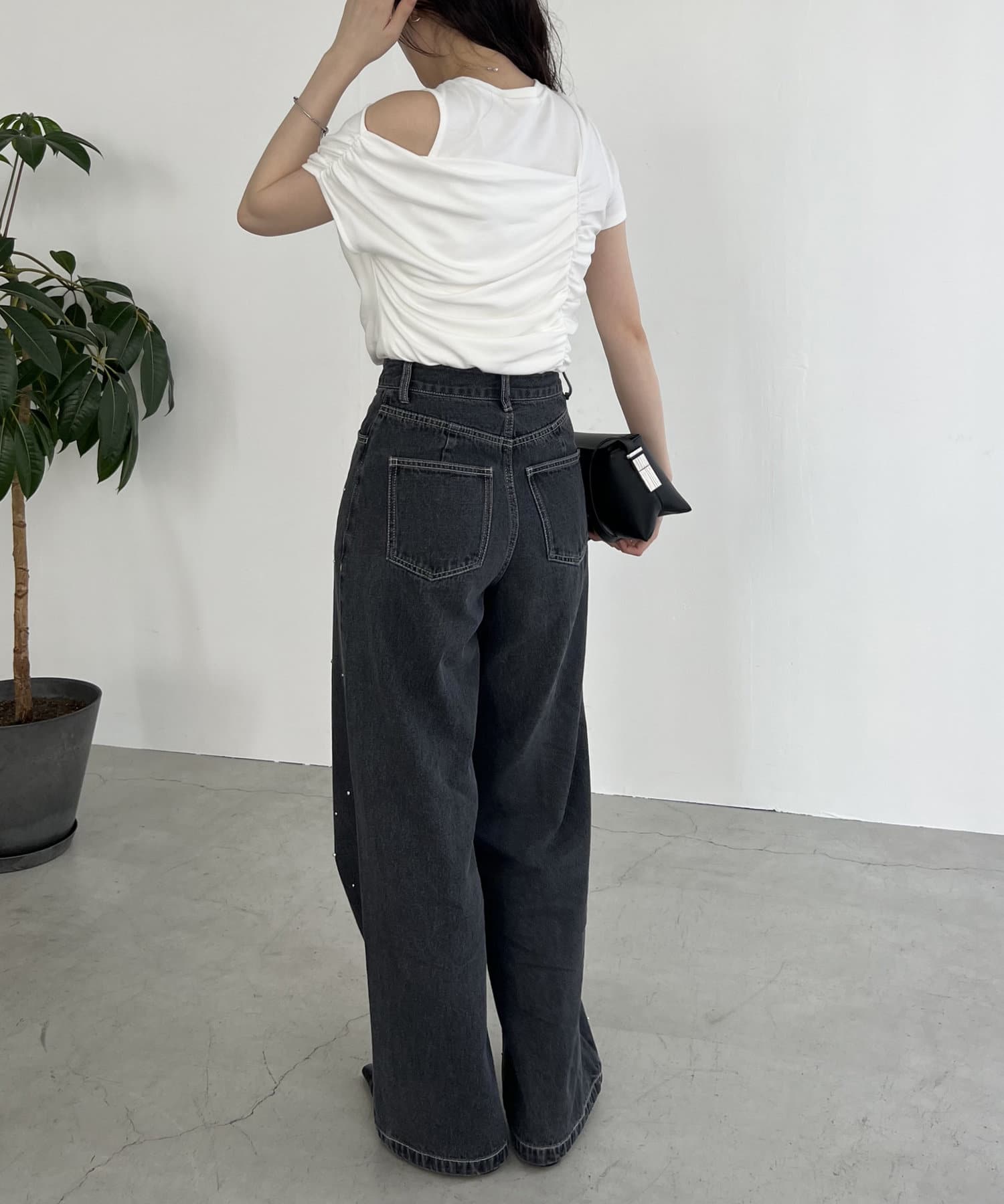 【ブラック着用アイテム①】アシメギャザーTシャツ