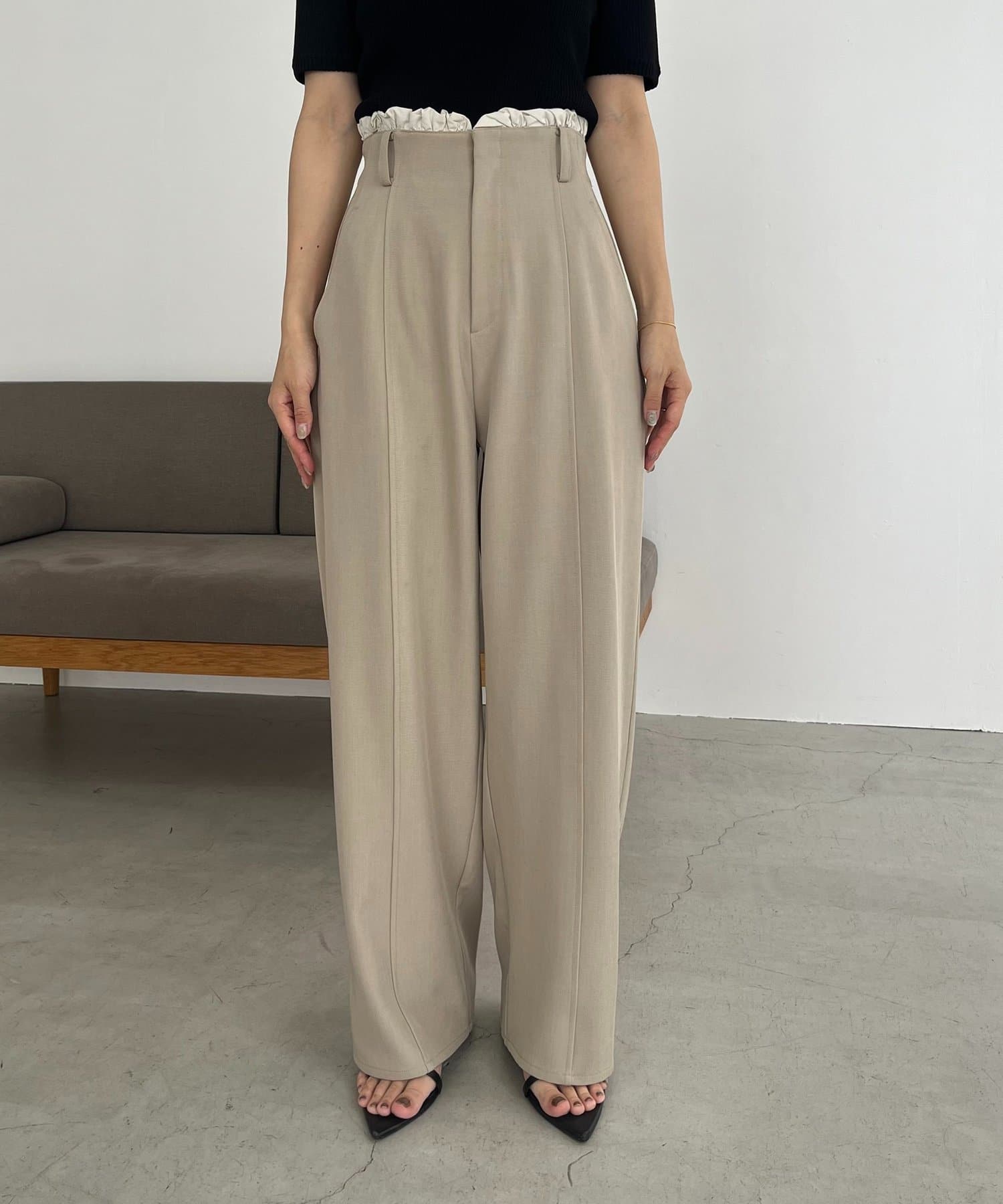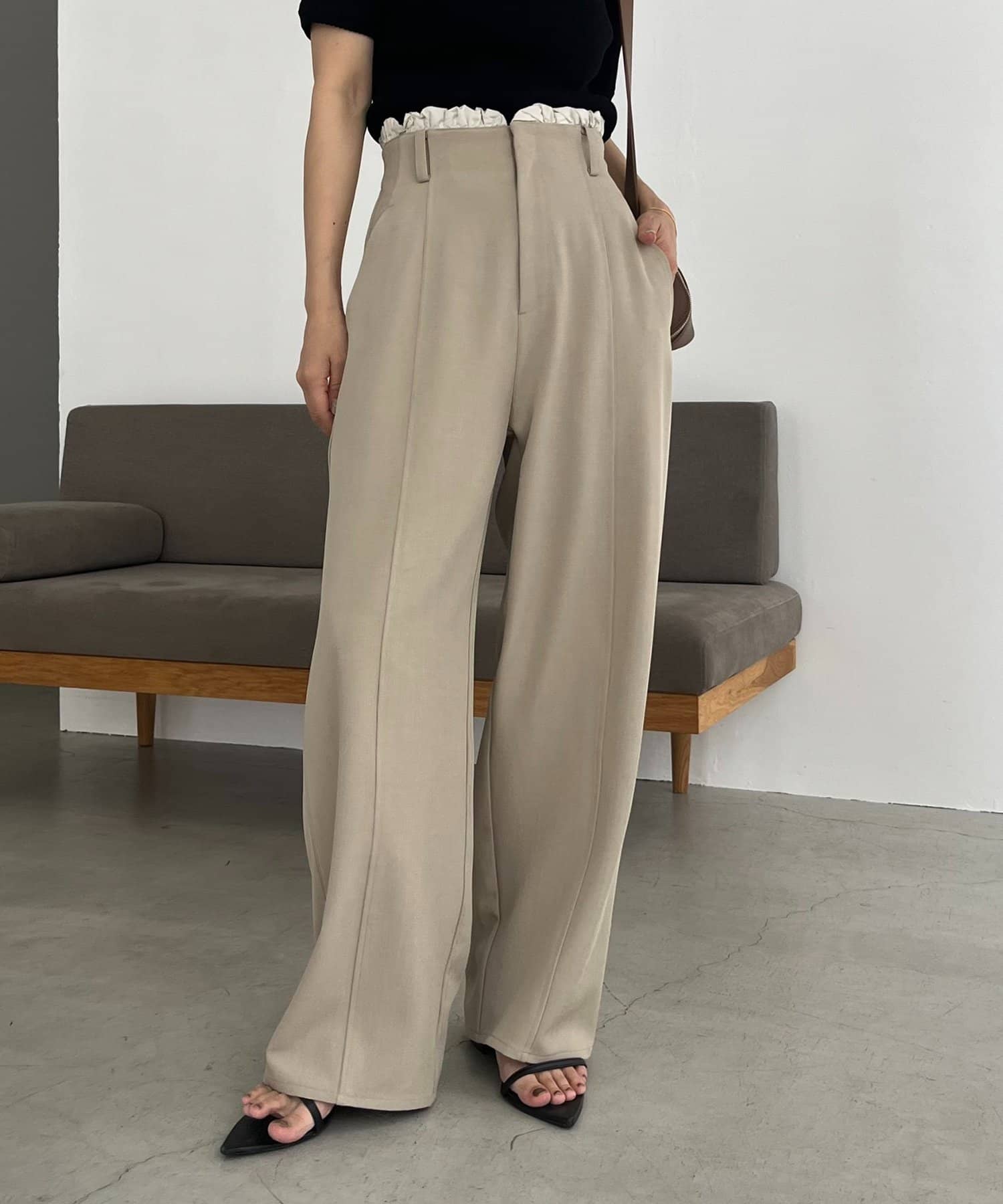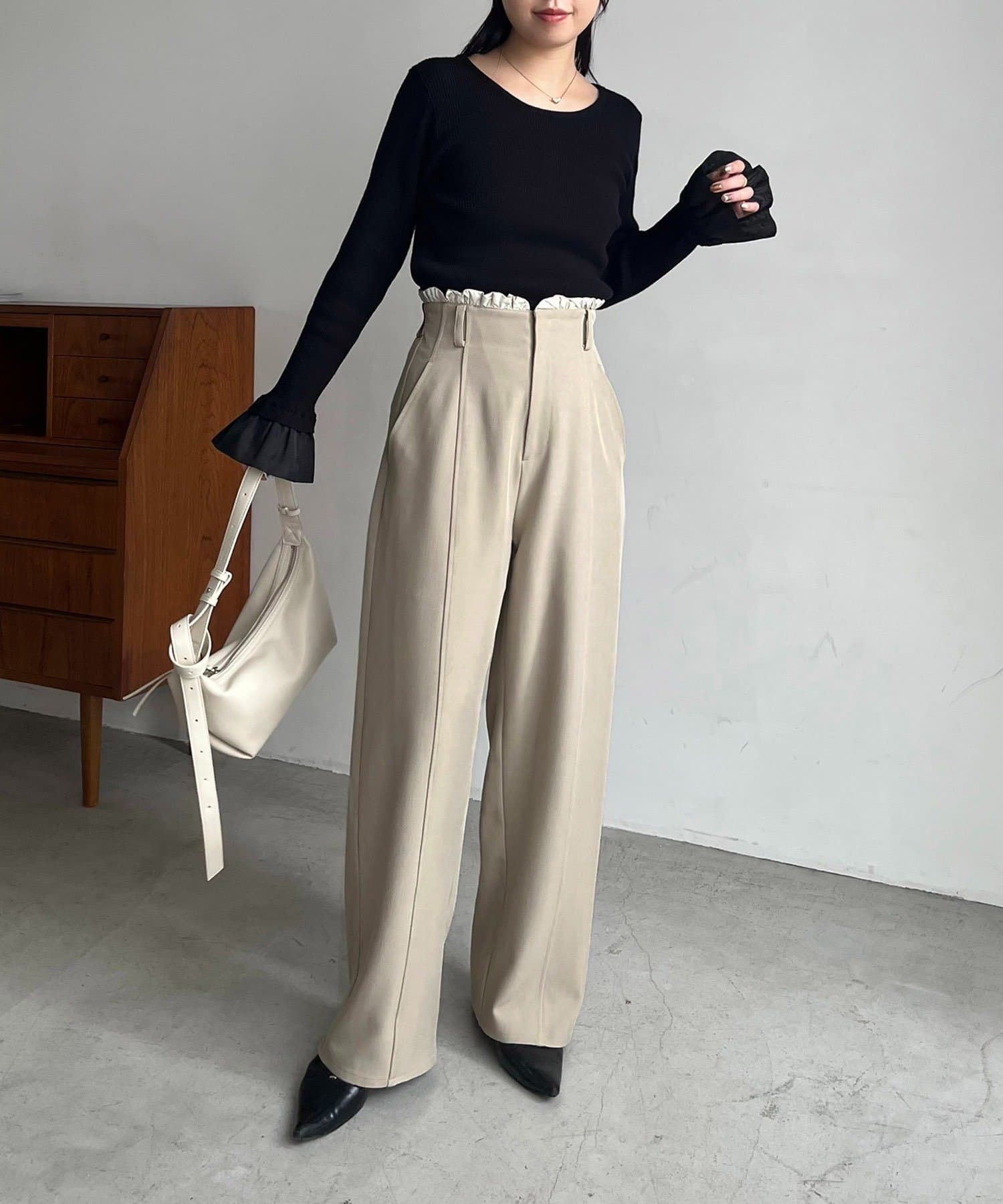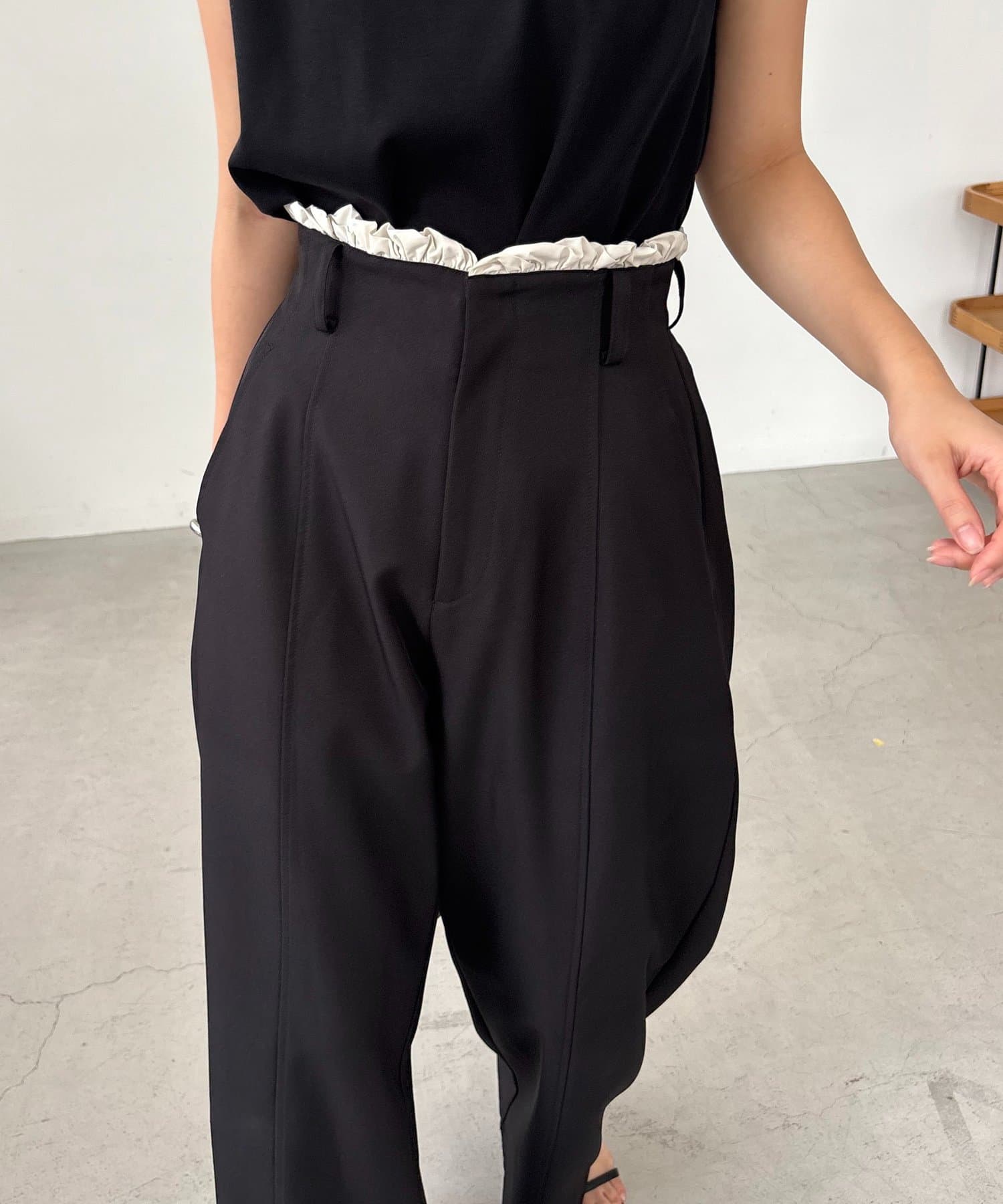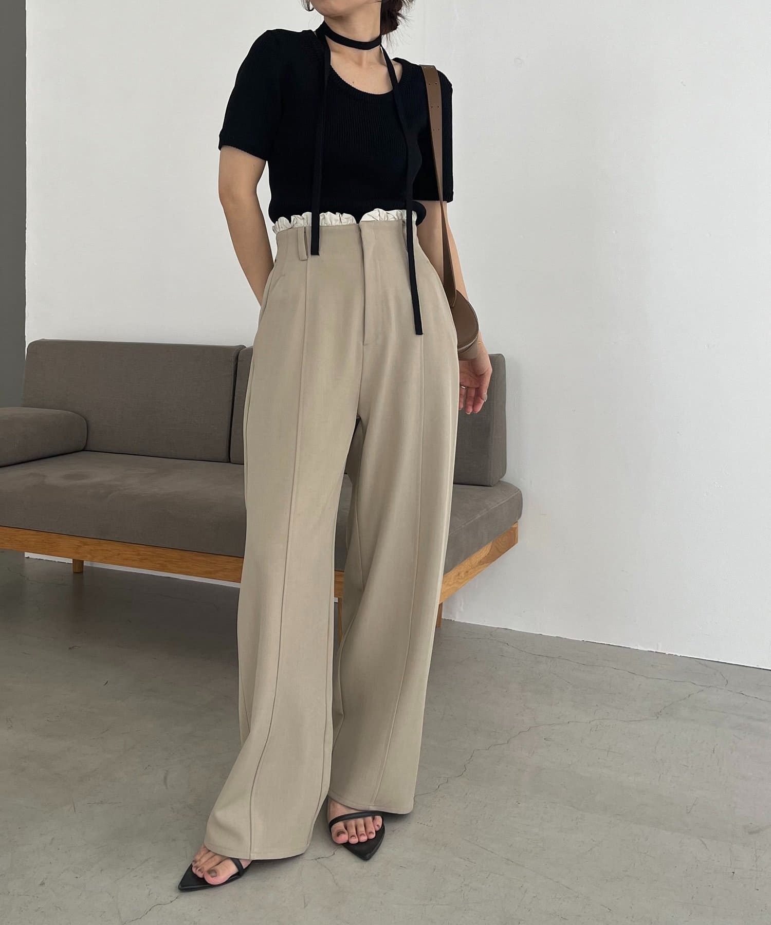 インしたときに配色のフリルがポイントになるストレートパンツ