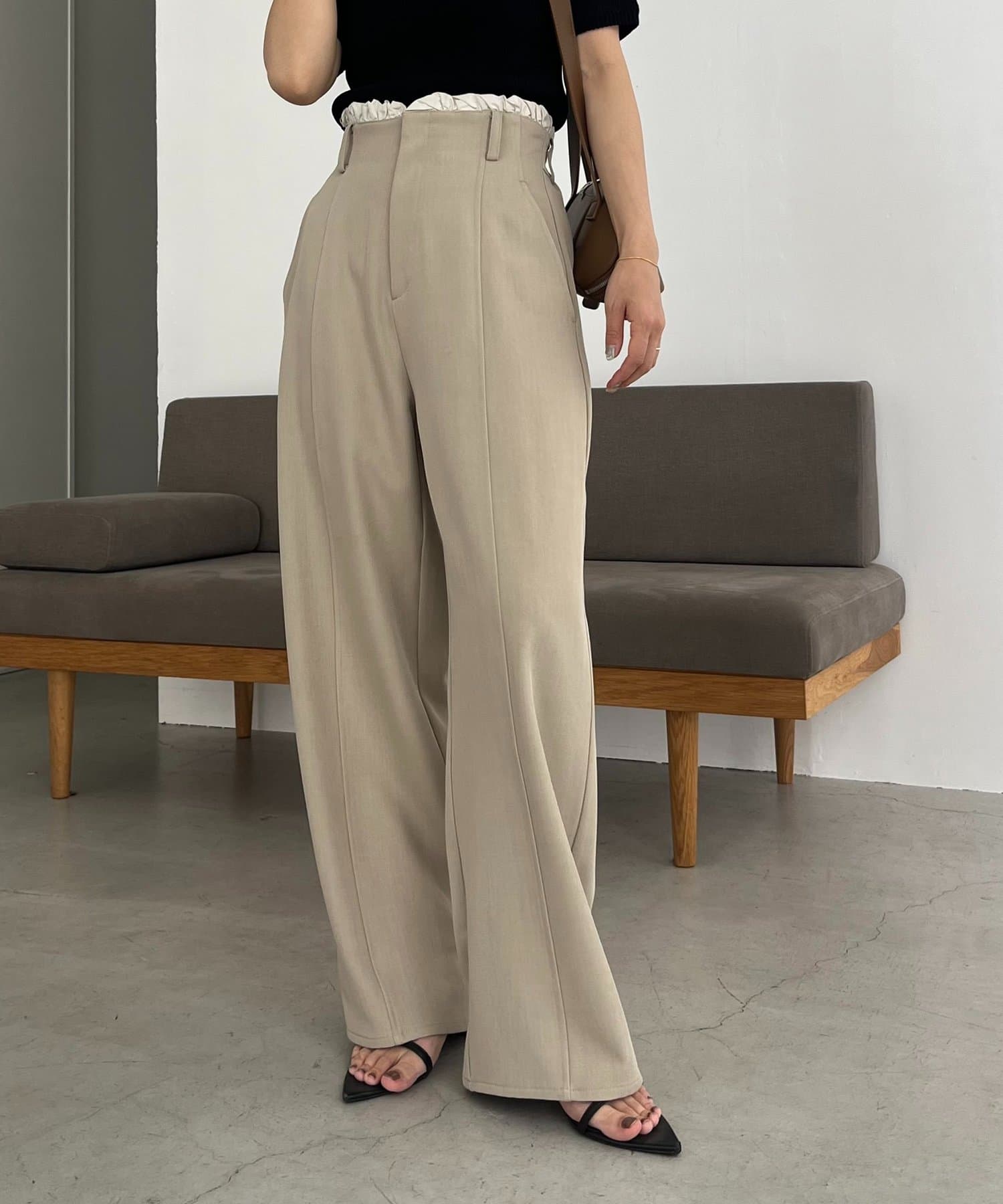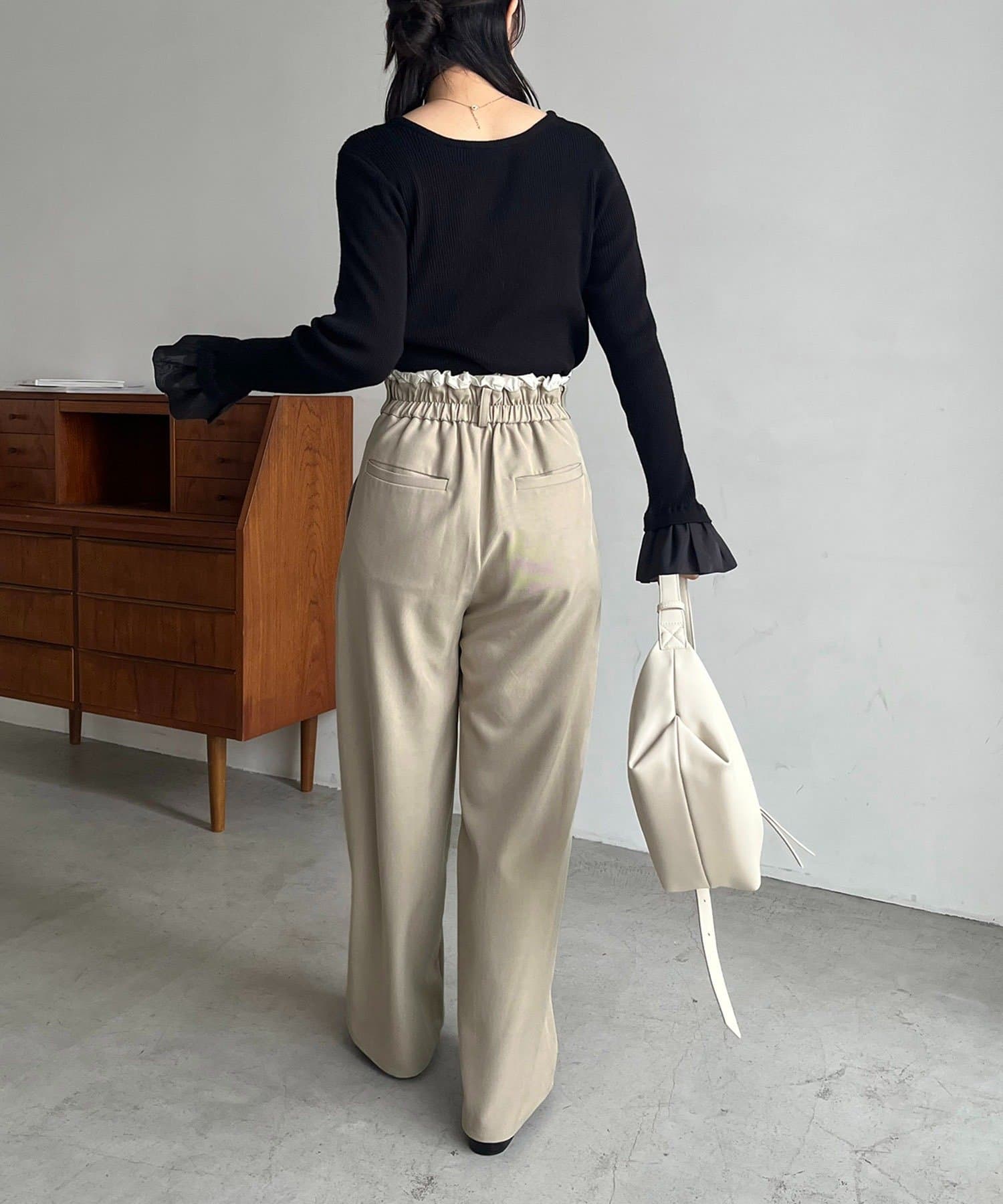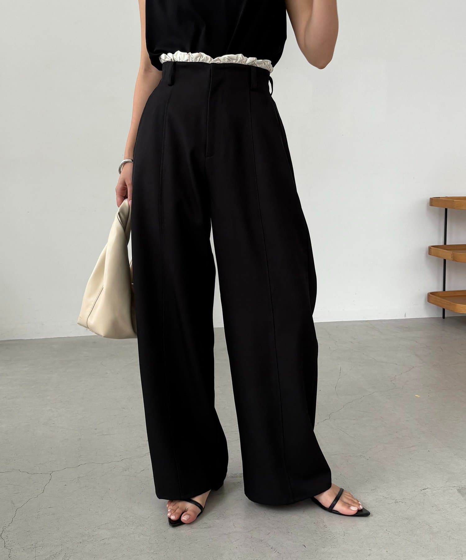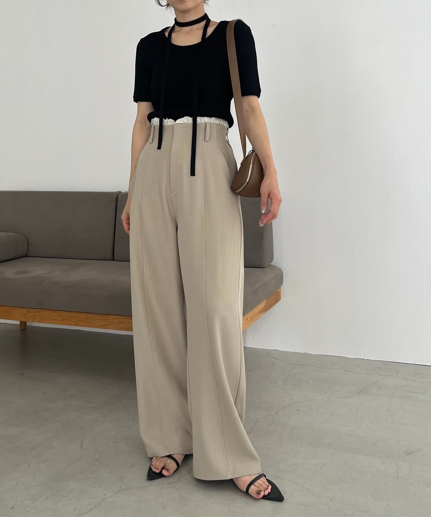 インしたときに配色のフリルがポイントになるストレートパンツ