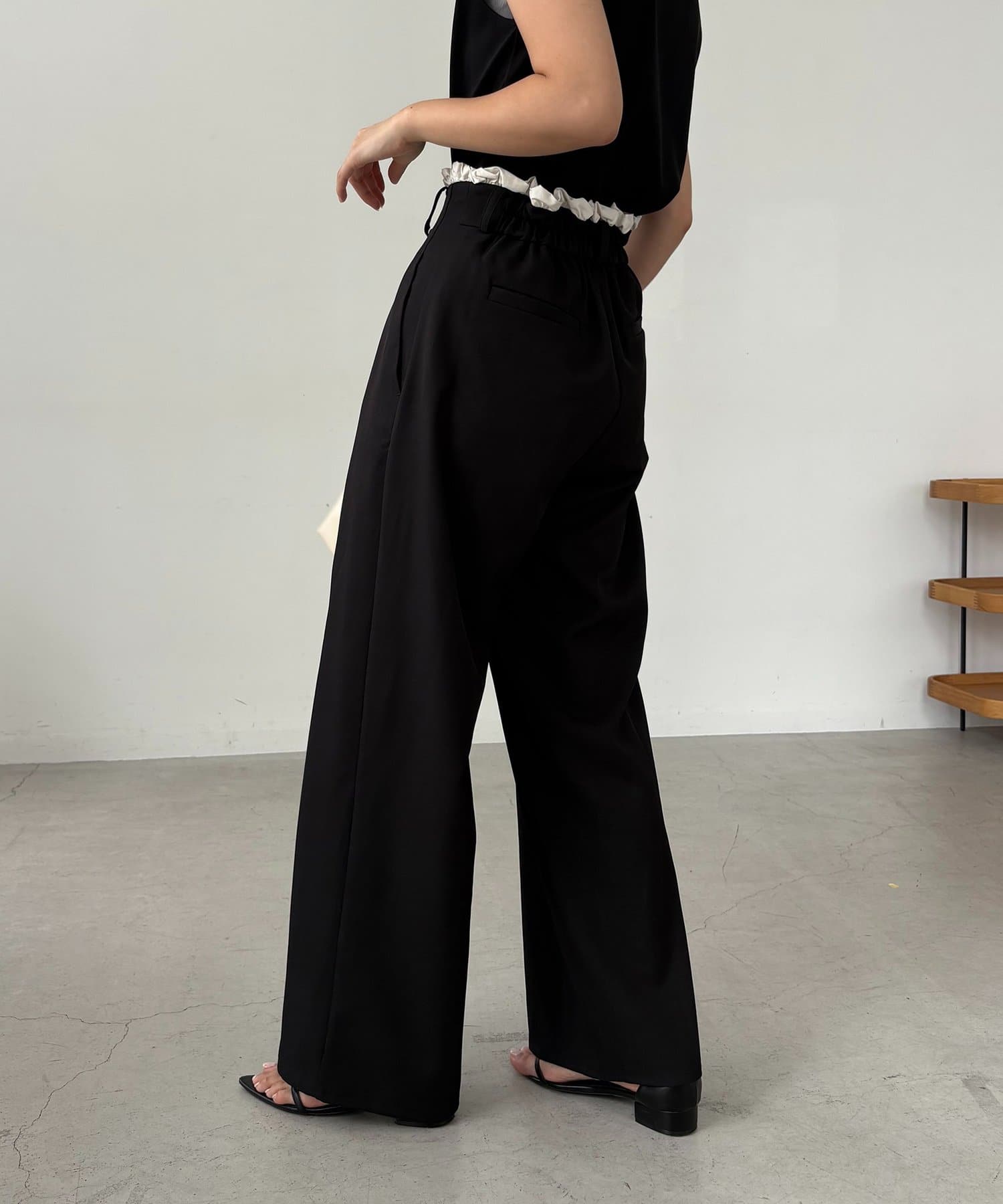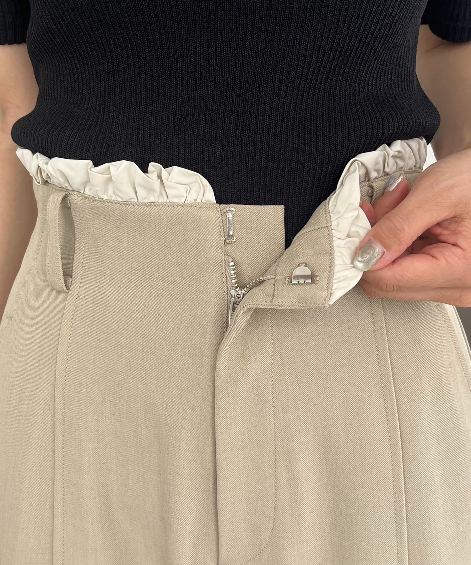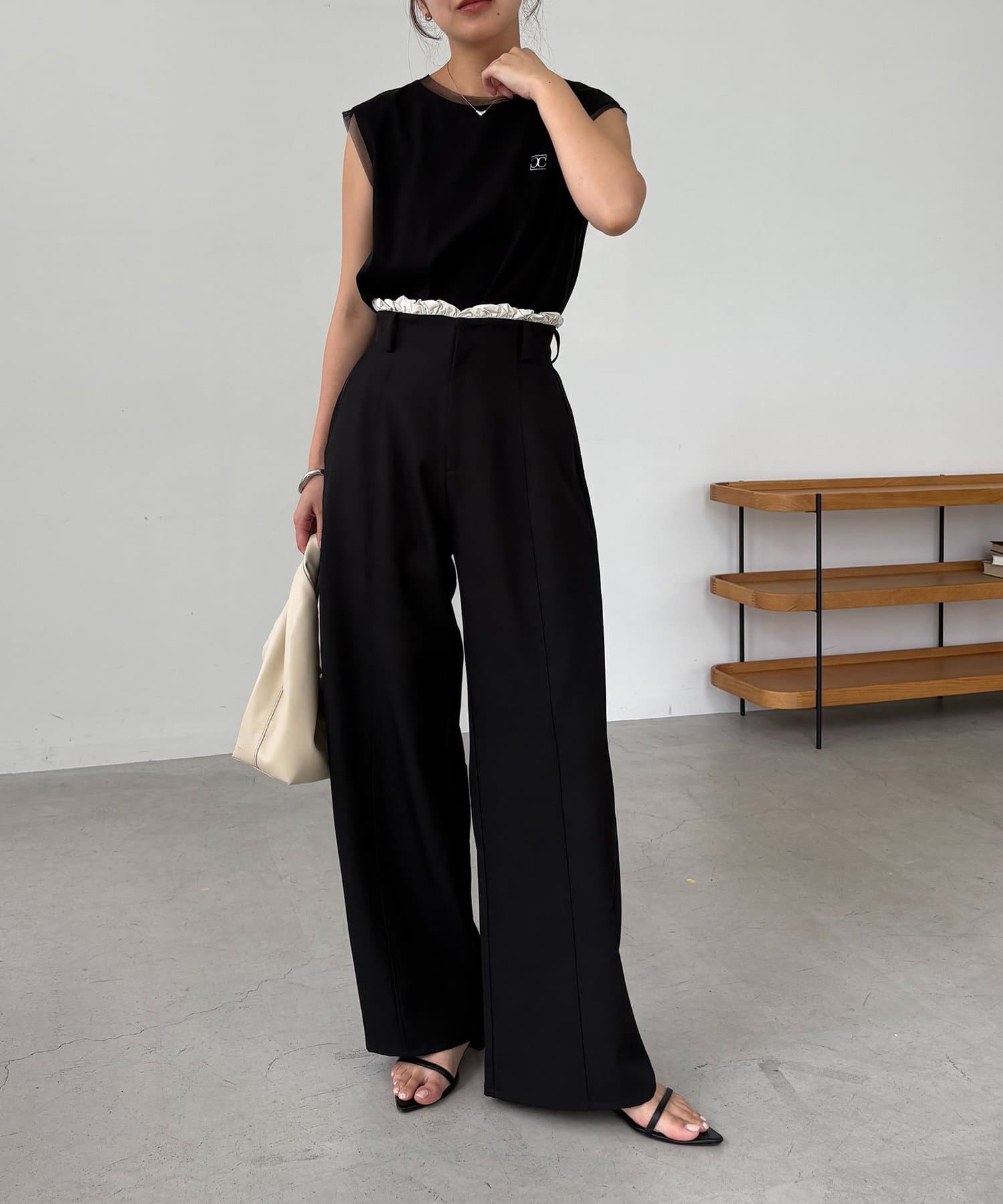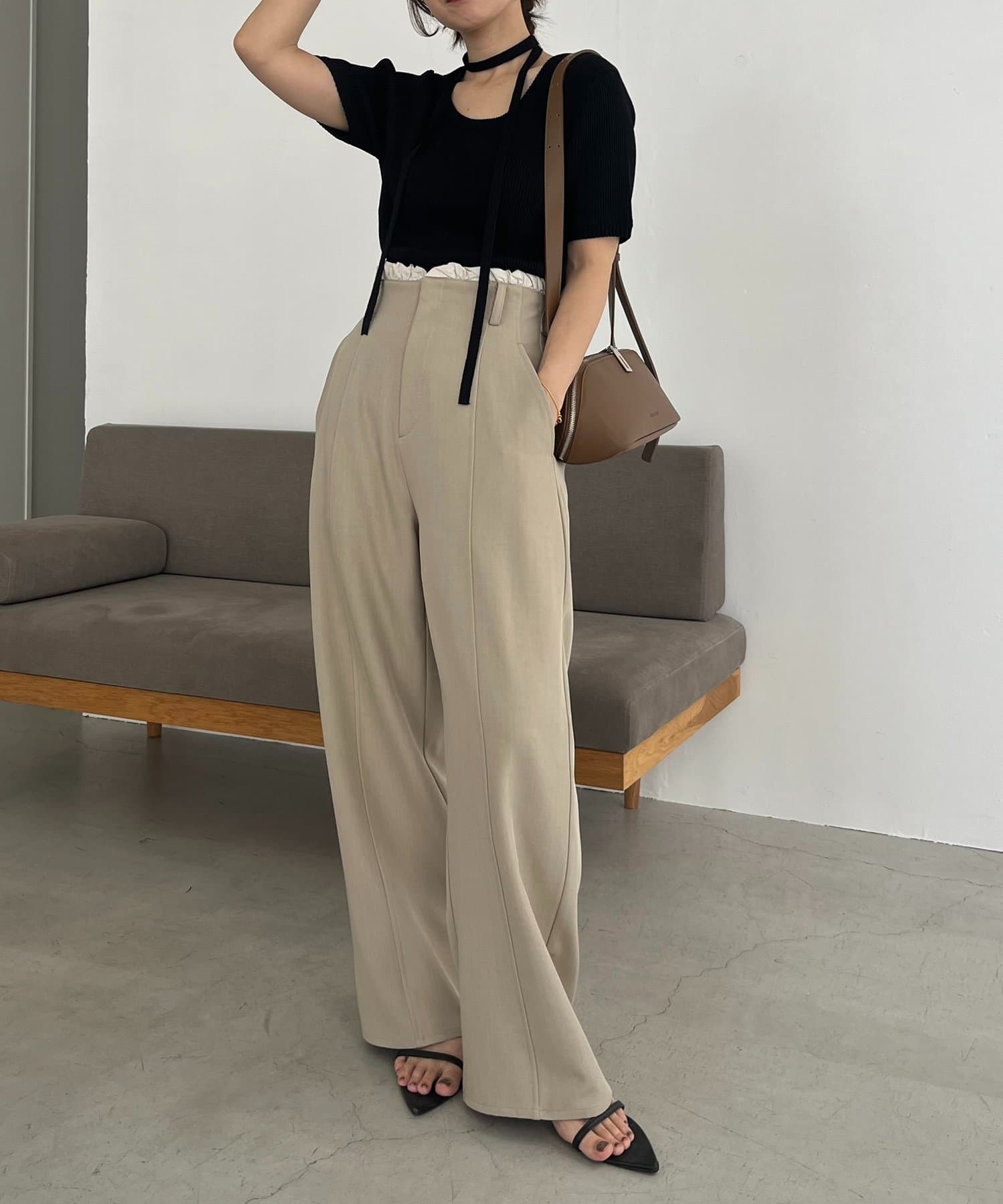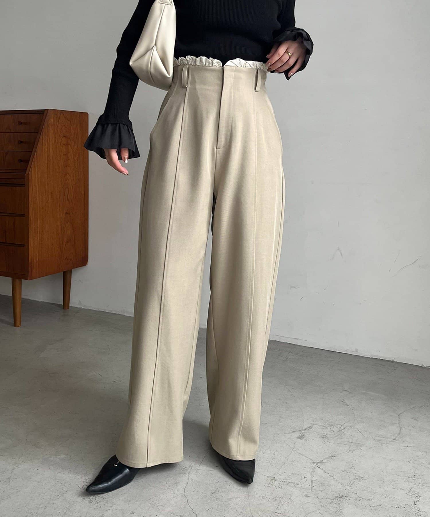 インしたときに配色のフリルがポイントになるストレートパンツ