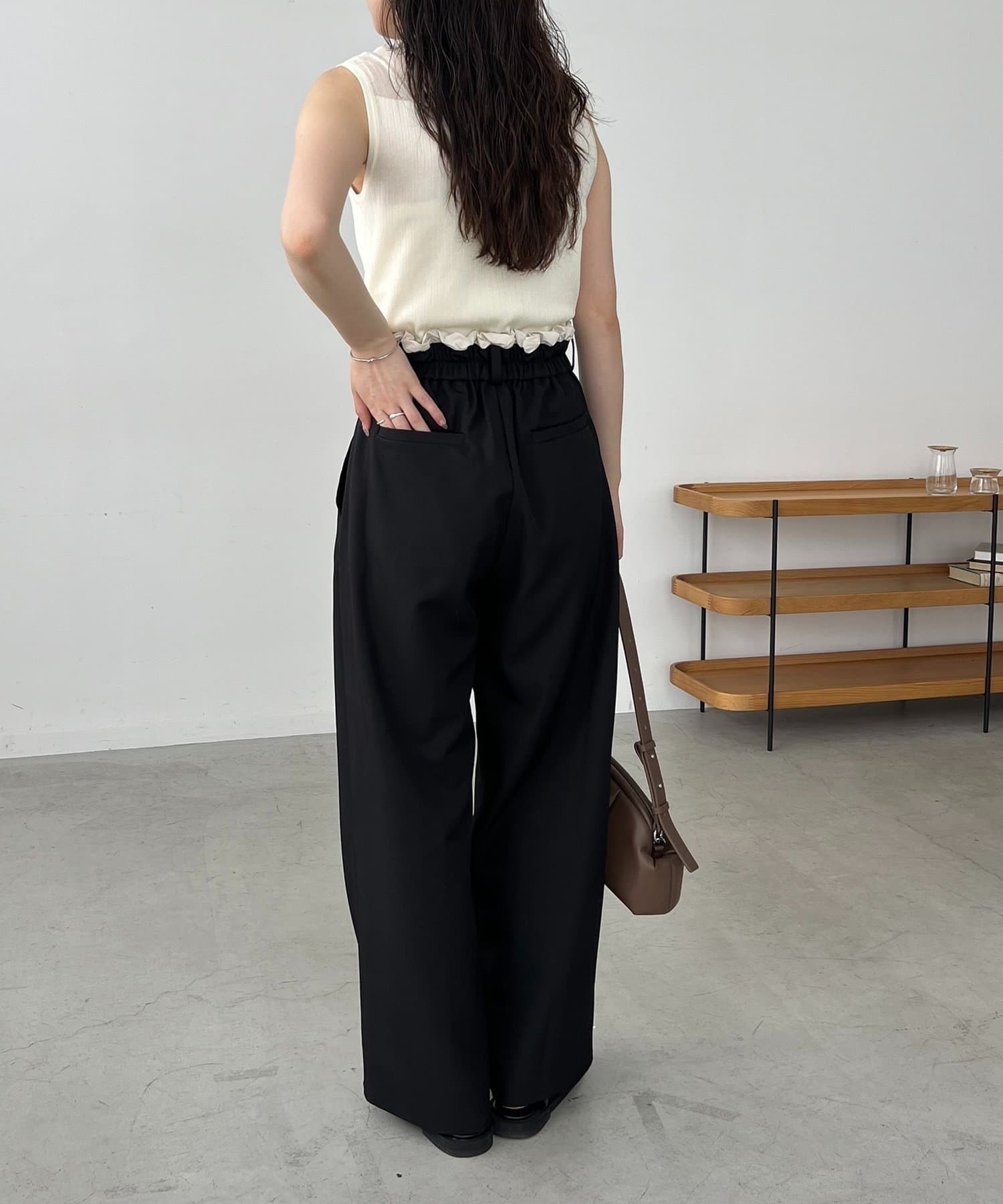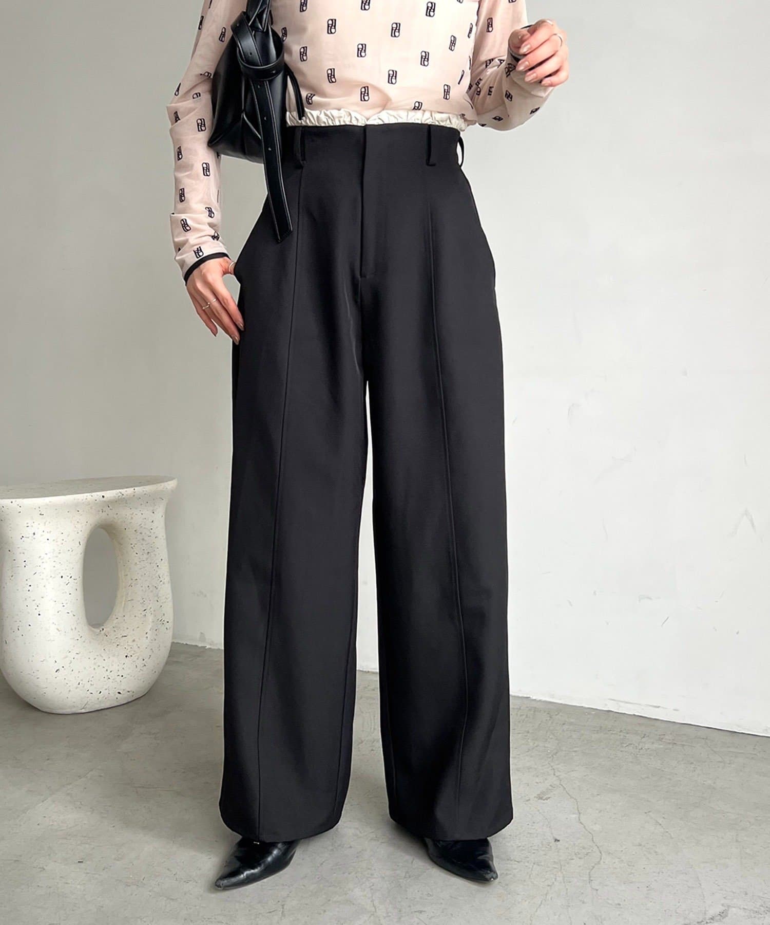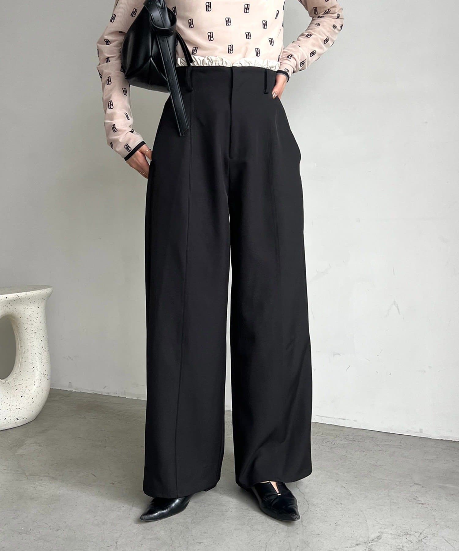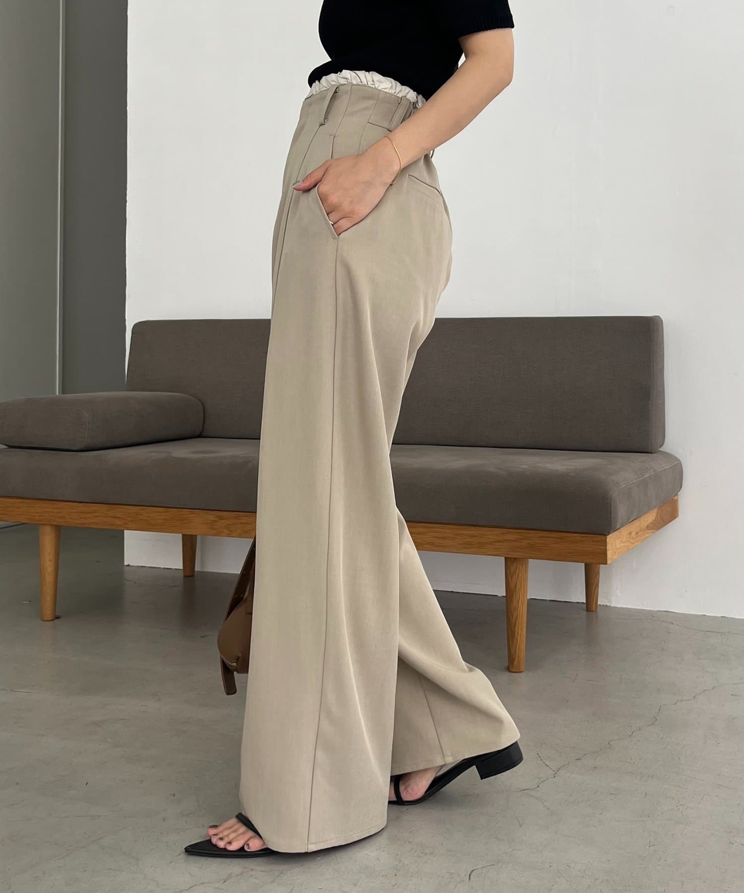 インしたときに配色のフリルがポイントになるストレートパンツ