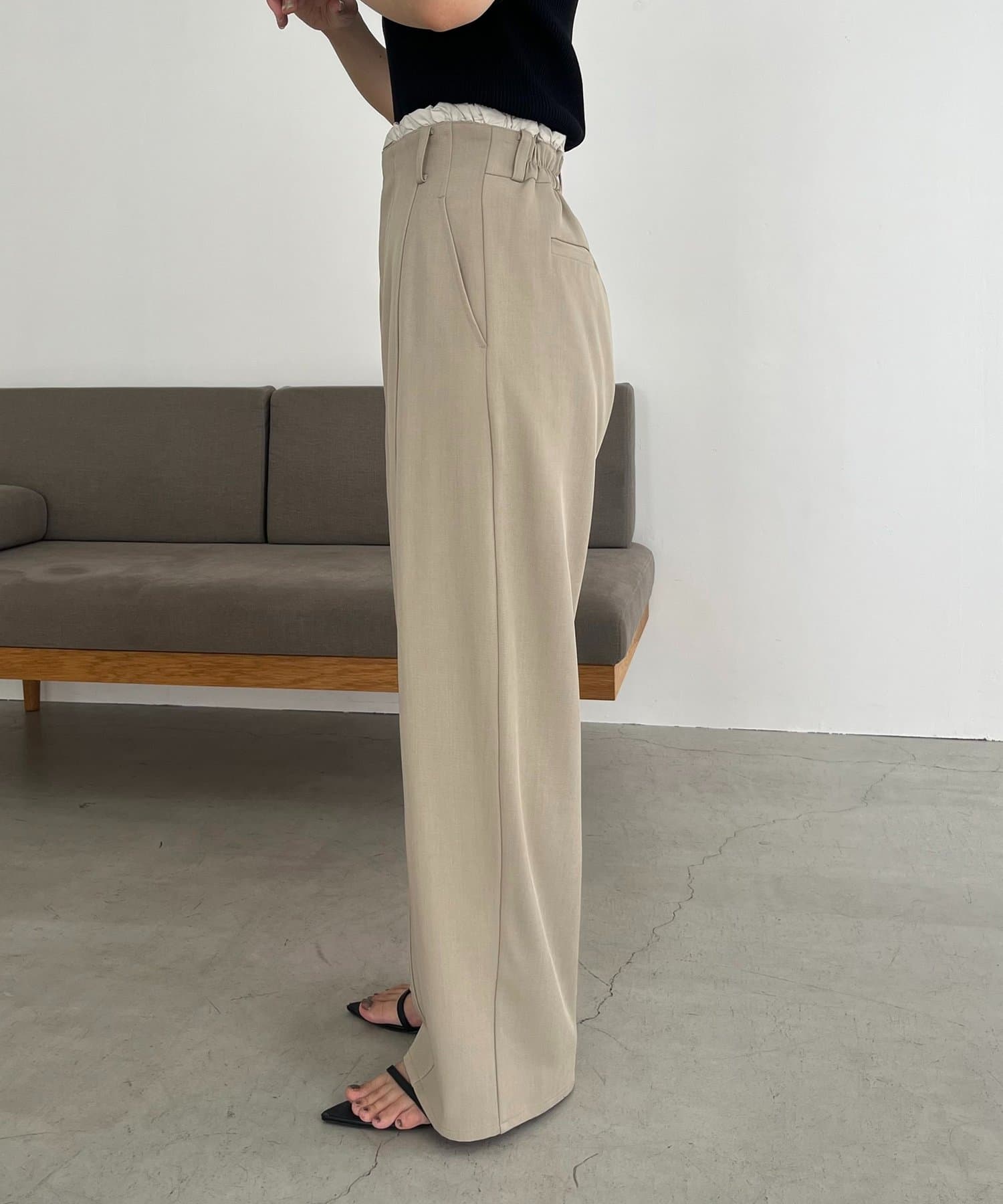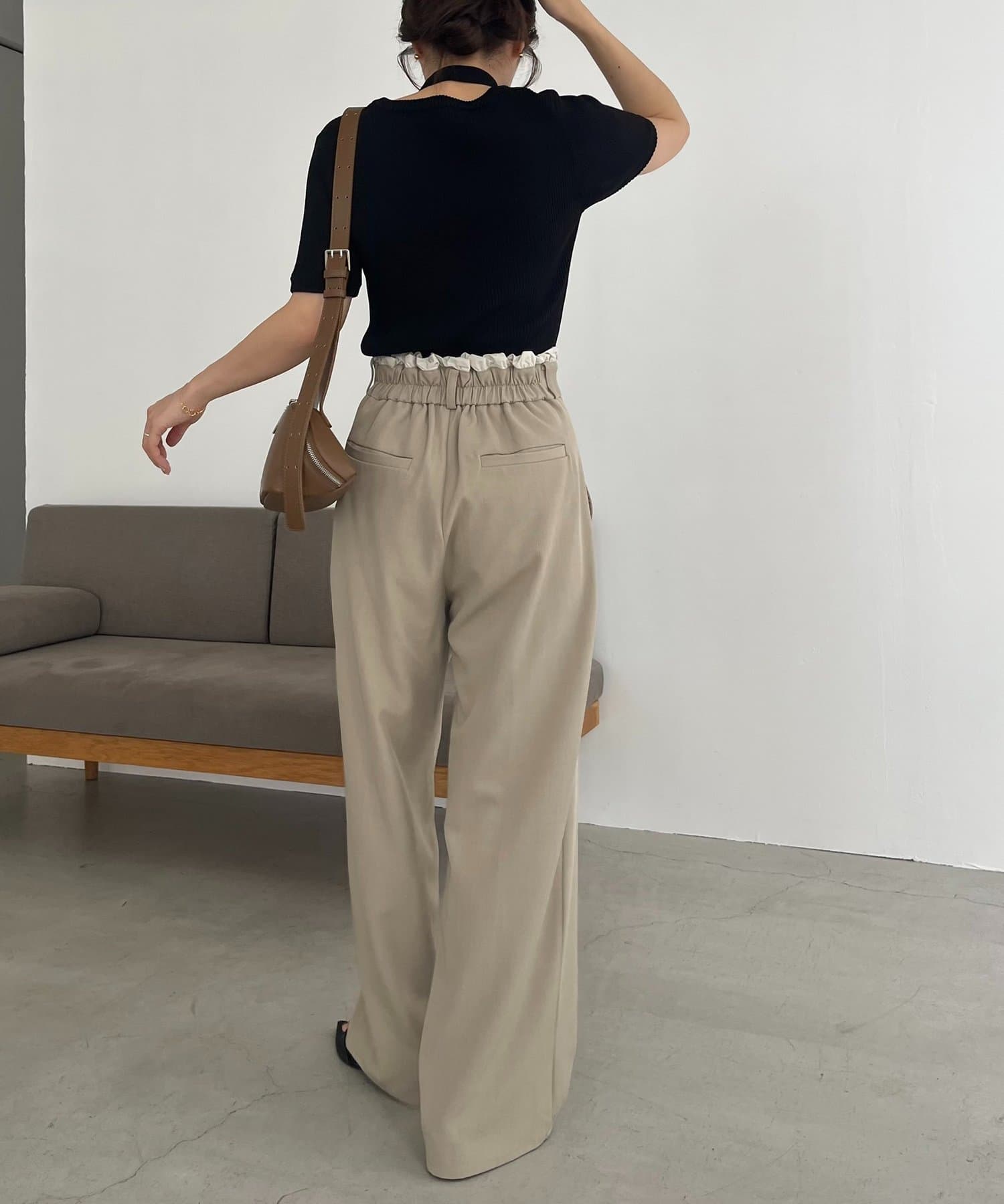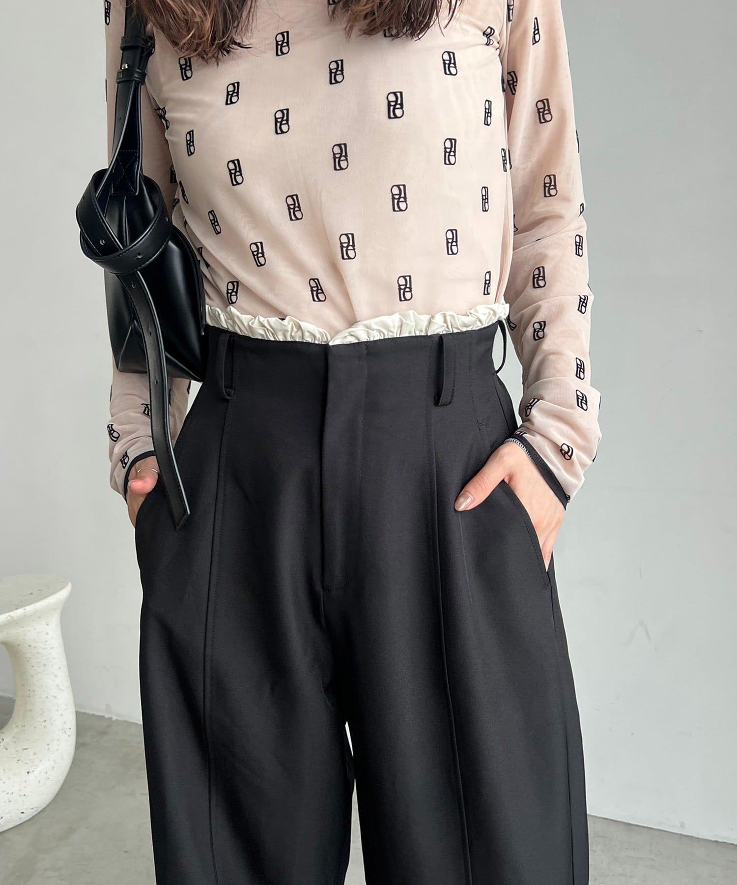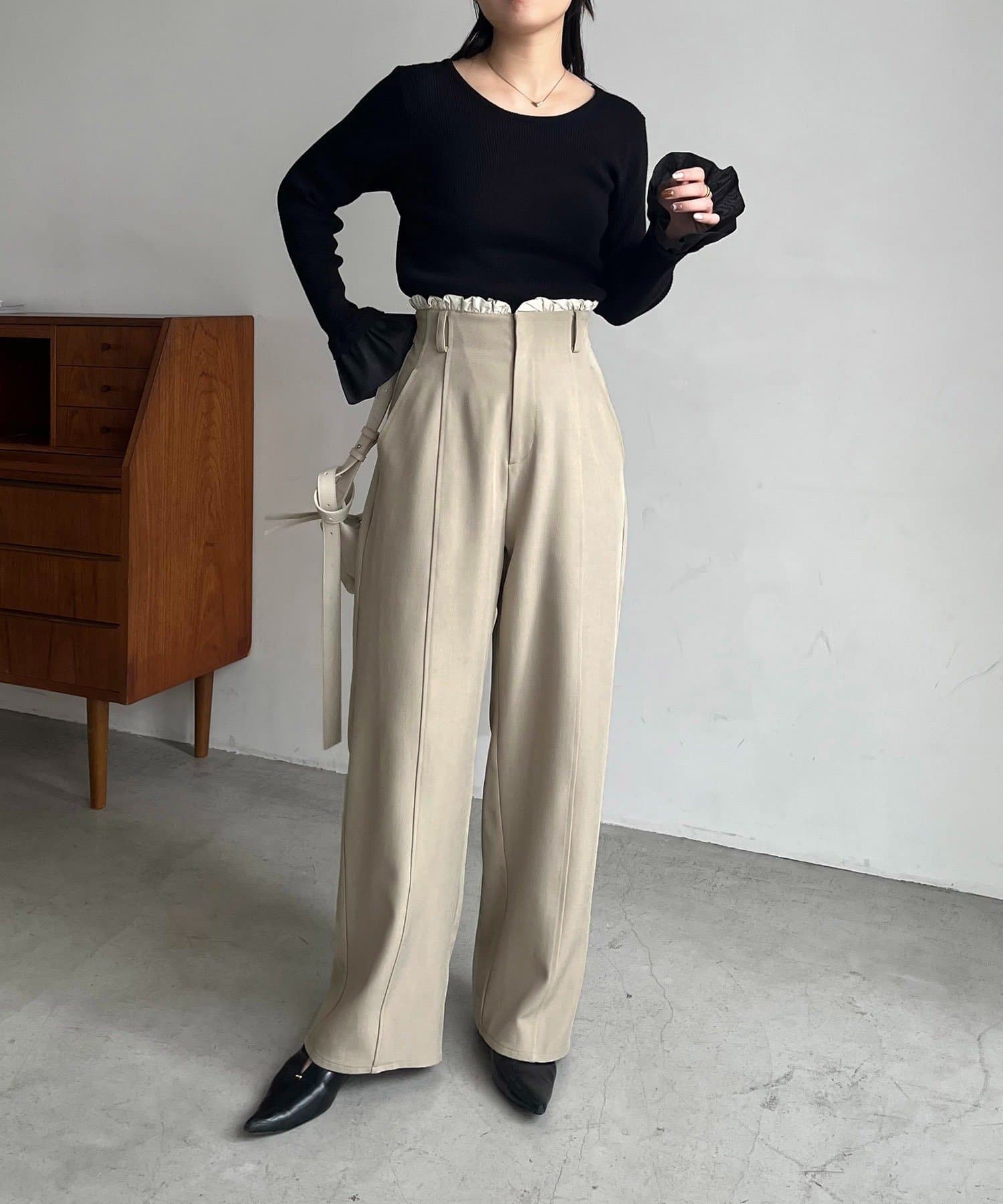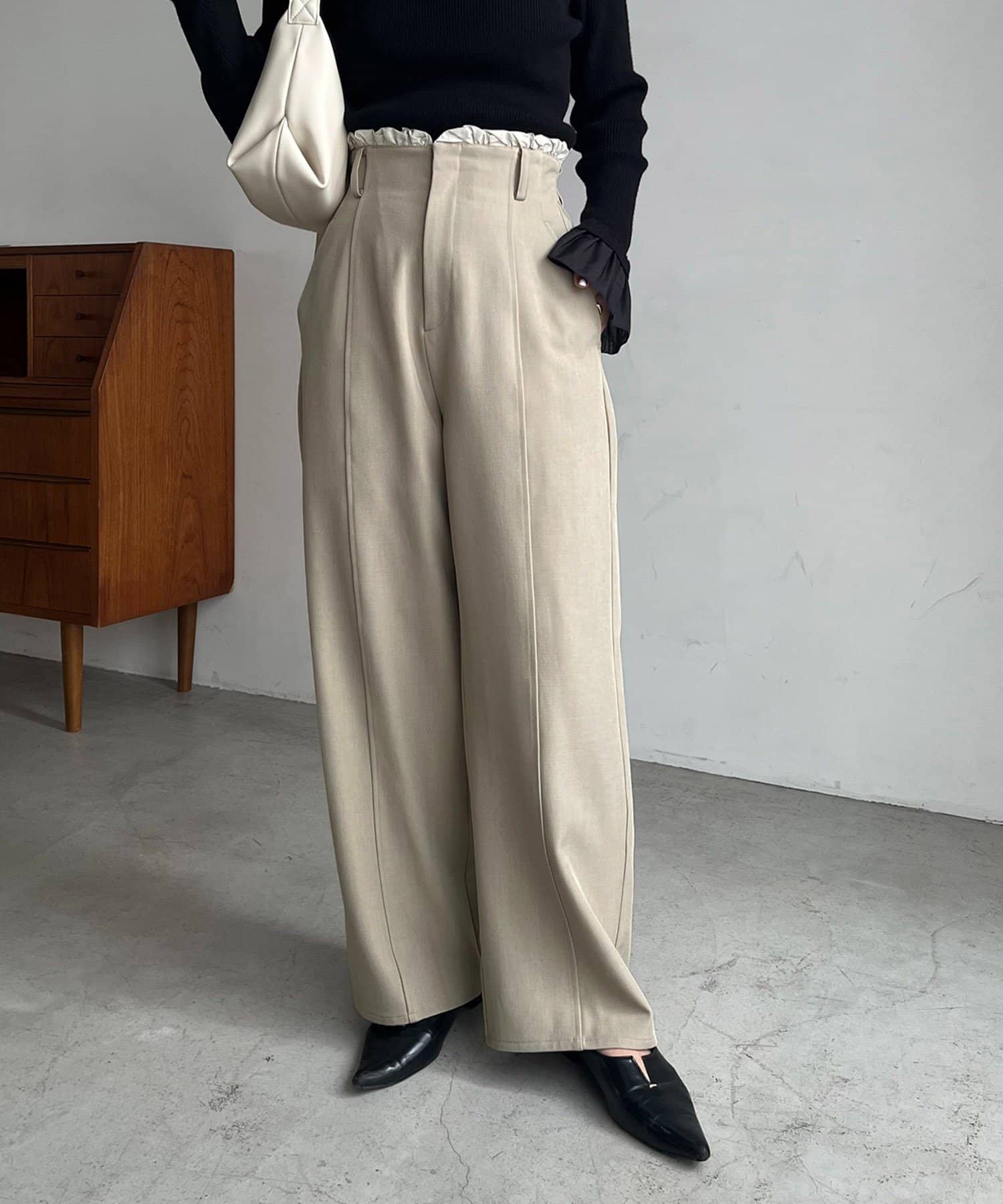 インしたときに配色のフリルがポイントになるストレートパンツ