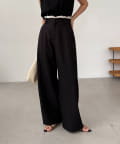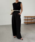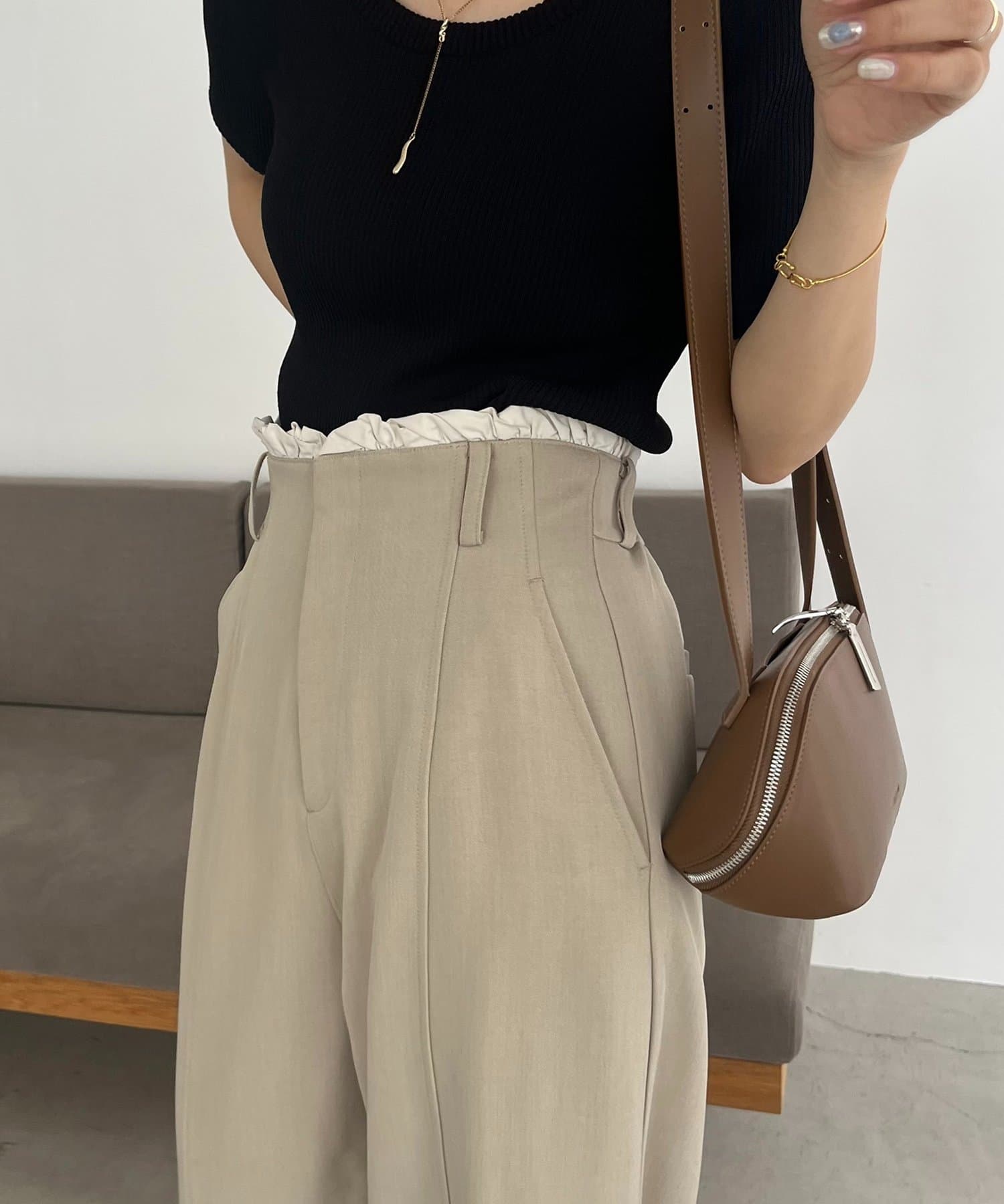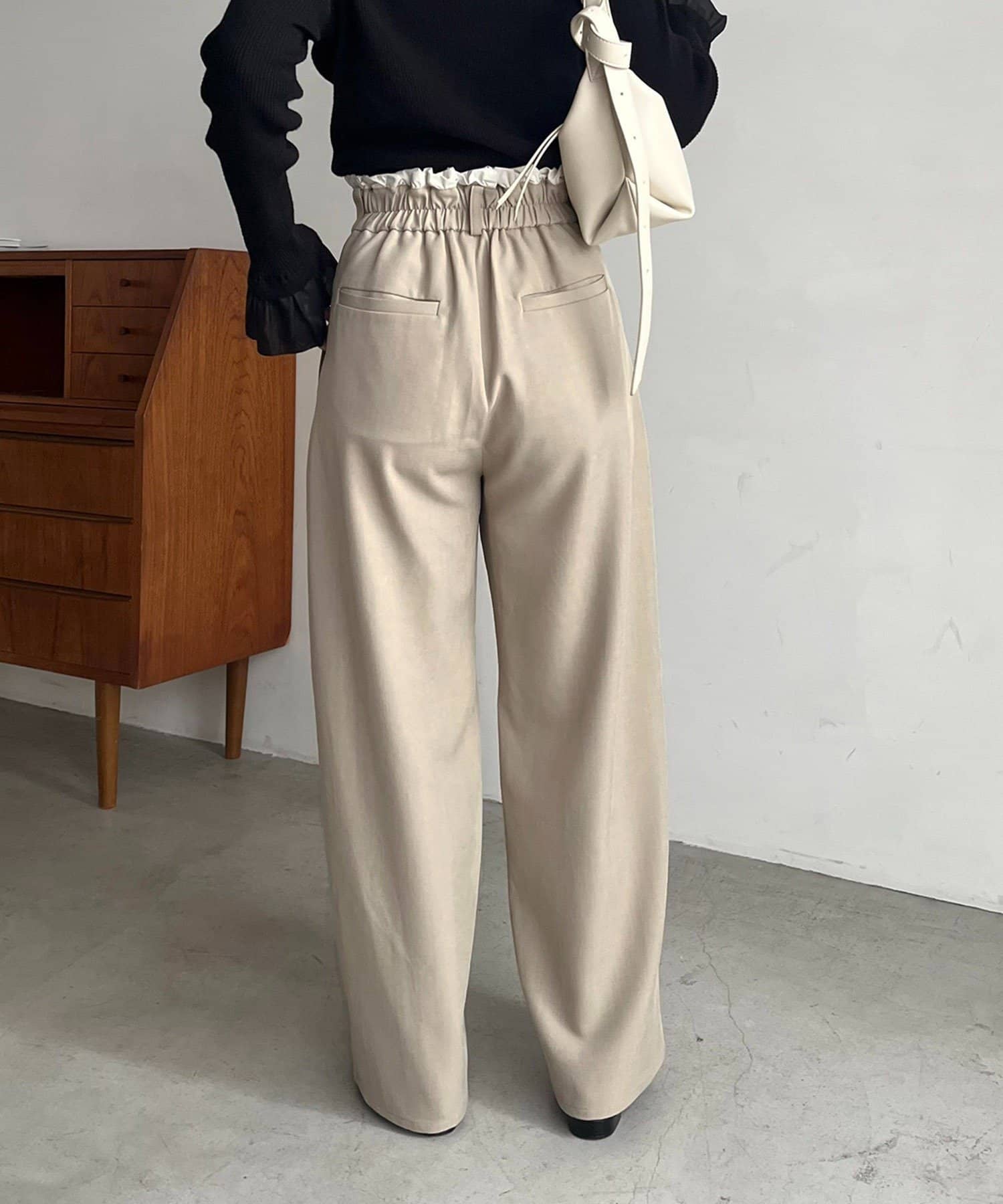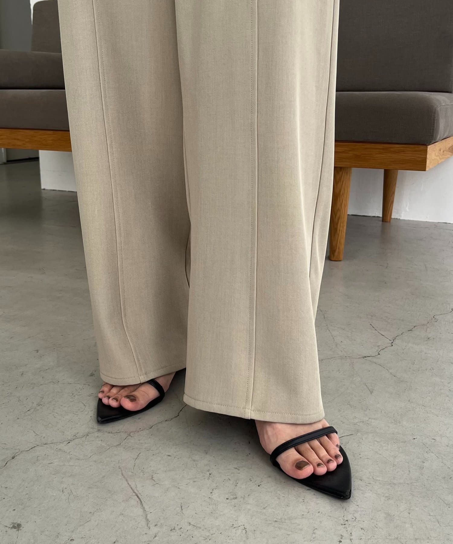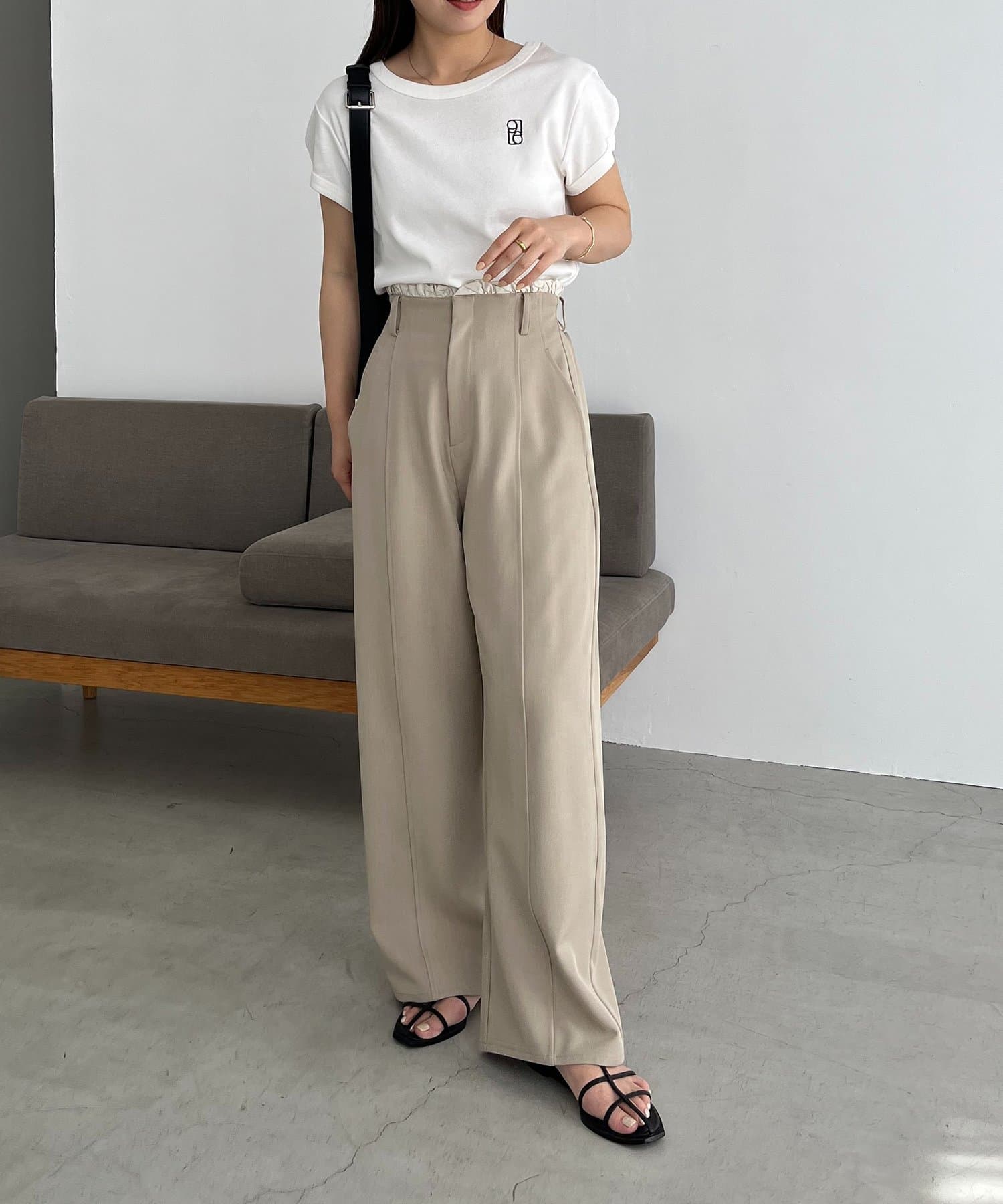 インしたときに配色のフリルがポイントになるストレートパンツ