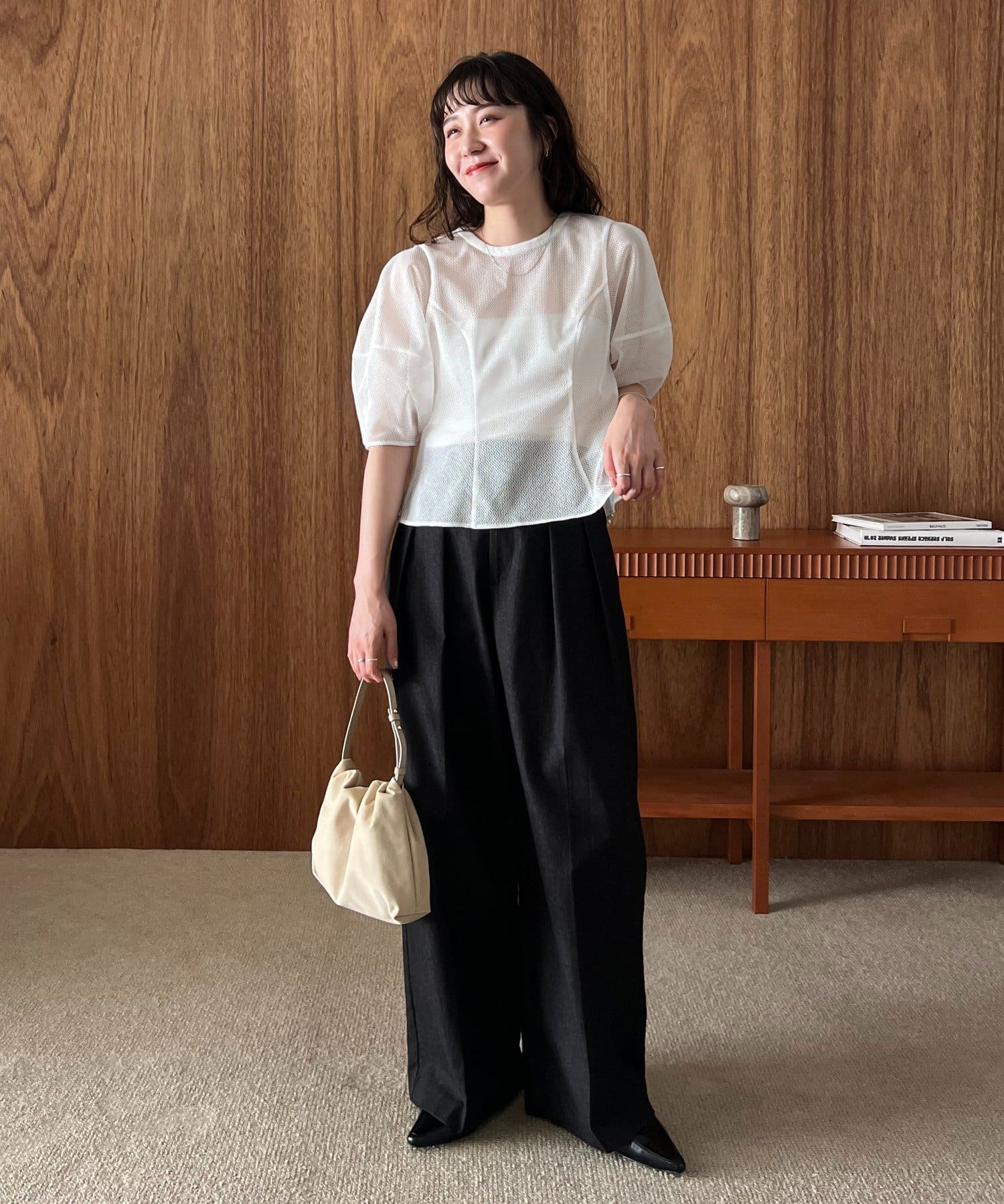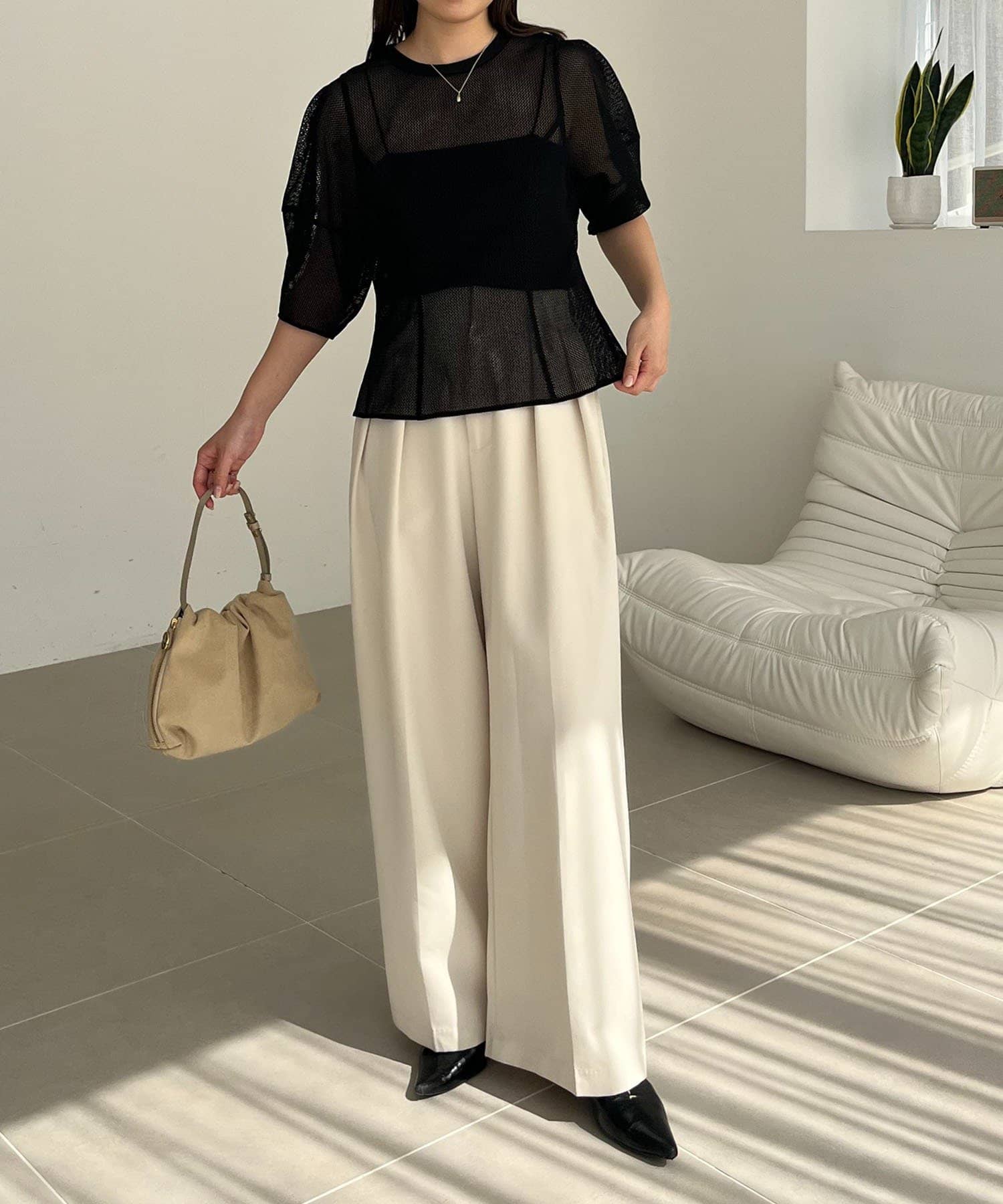 ・ワイドパンツ合わせだとインをしてメリハリをプラス