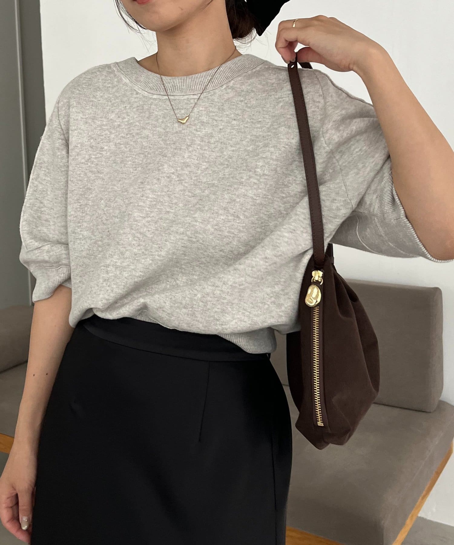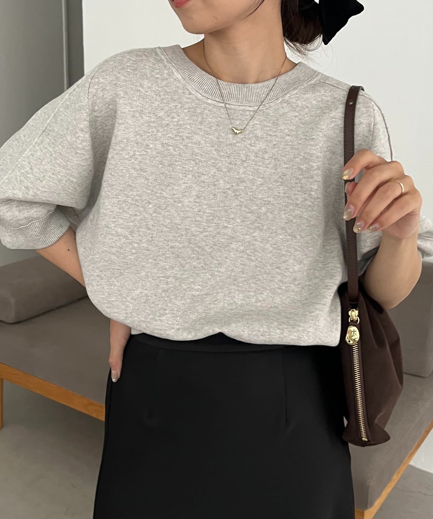 スウェットライク半袖ニット